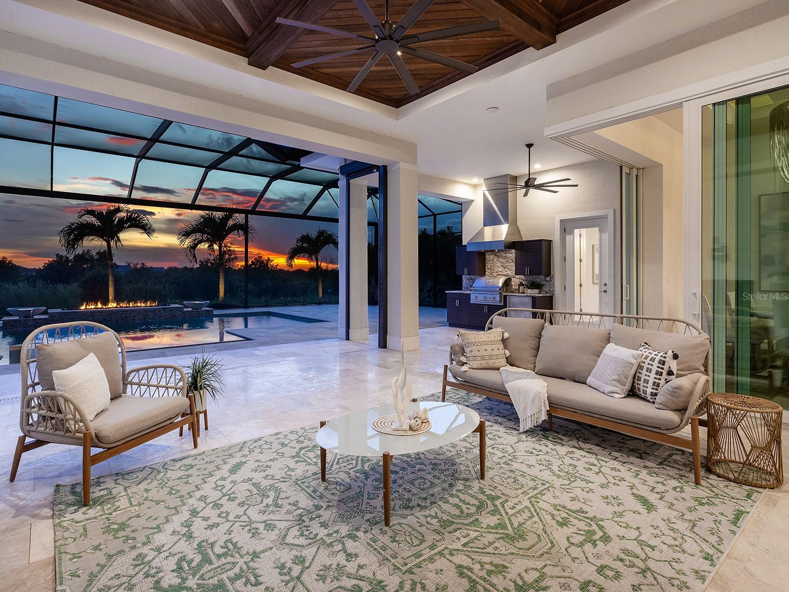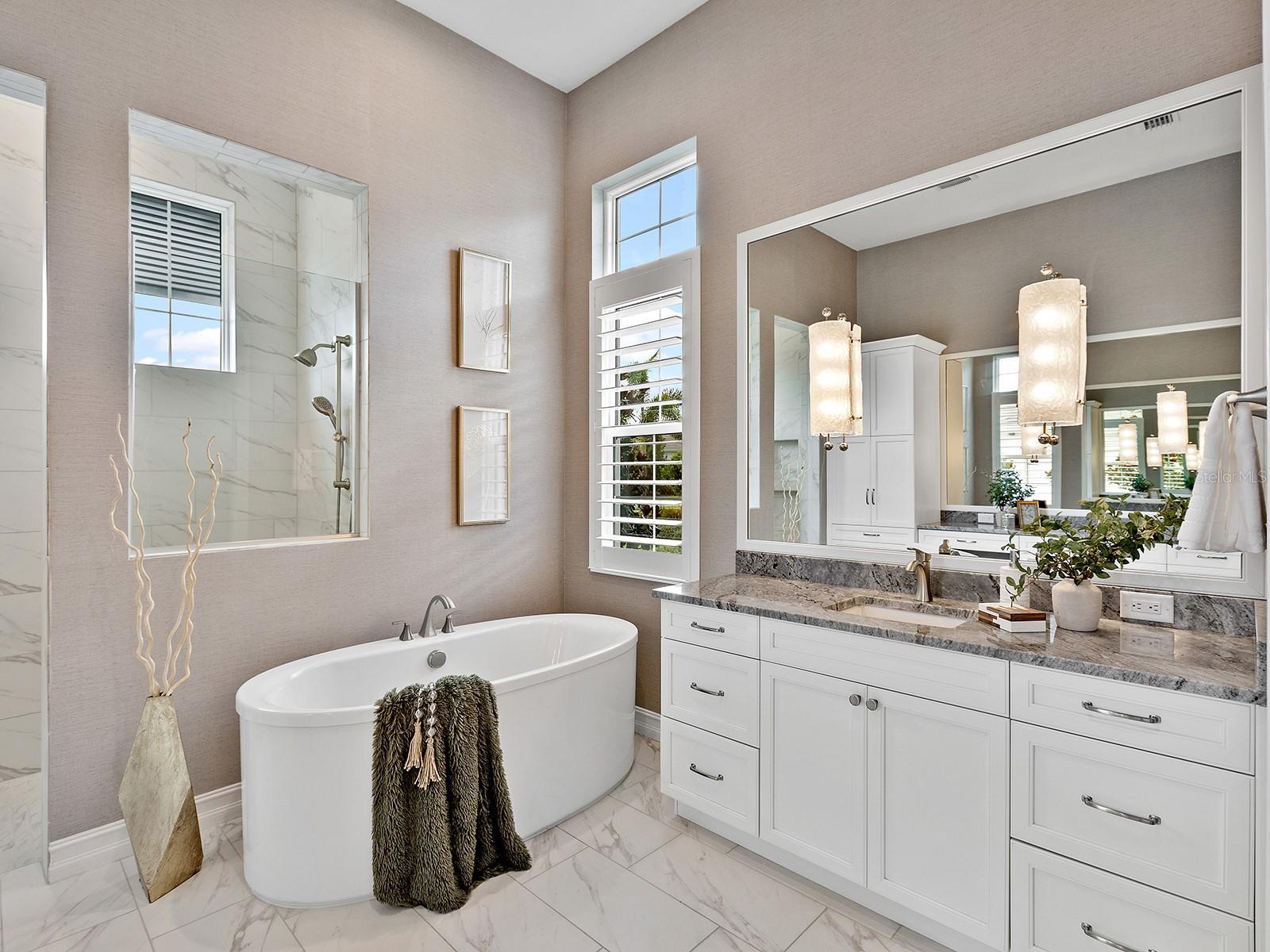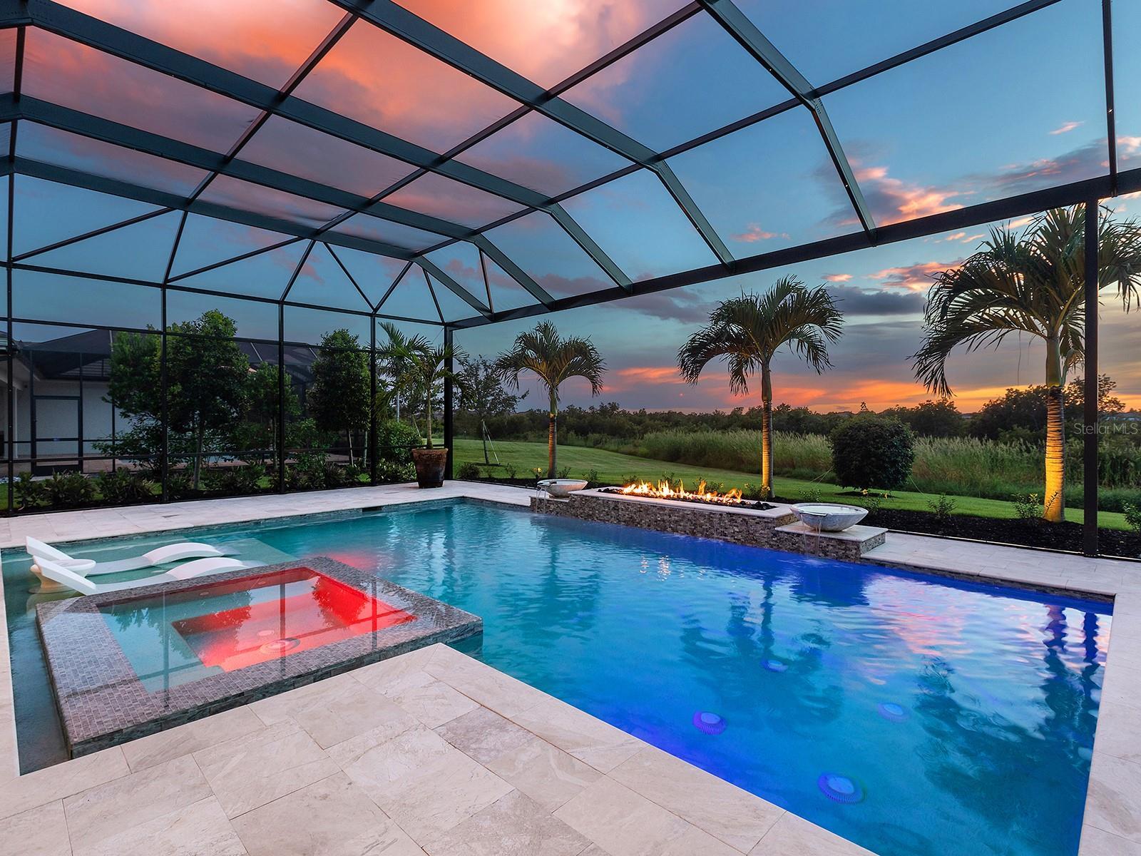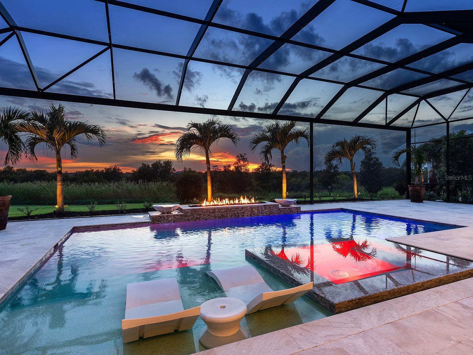 BUYER FINANCING FELL THROUGH - DON'T MISS THIS OPPORTUNITY! Prestigious living in The Lake Club of Lakewood Ranch in within reach! Nestled among towering palms and verdant landscaping is this completely, custom Madison II home built by Stock Luxury Homes in 2021. The lush Florida conservation wetland provides a beautiful backdrop for the western rear exposure with spectacular sunsets. This entire residence had every detail carefully hand-selected to evoke a luxurious and comforting residence including oak hardwood flooring, cove crown molding and custom ceilings, high-end designer light fixtures, plantation shutters, and top-of-the-line functional selections in every room. Superior details and a sense of security continue with high-end construction, impact doors and windows throughout, additional remote control hurricane screens on the lanai, 22kw whole-house generator, surge protector, and whole-house water filtration system. The central great room is the heart of the home with custom coffered ceiling, custom built-in display shelving and entertainment cabinetry, and a full wall of impact sliding glass doors to the lanai. Enjoy a modern open-concept floor plan that flows effortlessly throughout the living areas and out onto the marble paver lanai. With beautiful and private views of the preserve, the lanai offers a serene space to gather around the gas fireplace and under wood ceilings, take in the views from panoramic screen enclosure, or dine by the outdoor kitchen. The custom saltwater pool offers a sunken 360-edge spa, sunshelf, Nebula lights built into the screen enclosure to create a starlight effect above, and a built-in fire bar feature plus water bowls – you won’t find another lanai like this at any other home. The luxurious lifestyle continues indoors with the executive kitchen that is expertly outfitted with high-end appliances including Wolf gas cooktop, Miele dishwasher, Sub-Zero refrigerator, and dual Wolf wall ovens. The custom cabinetry offers complimentary two-tone colors, thick quartz counters with full-height backsplash, pots and pans drawers, additional integrated pantry tower, and a walk-in pantry with shelving. The adjacent dining room has custom ceilings, disappearing corner impact sliders, and a breathtaking designer chandelier. Work from home in the study equipped with dual built-in desks with glass tops, file drawers, and display shelving. The primary suite sparkles with designer wallpaper, custom ceilings, impact French doors to the lanai, and impressive dual walk-in closets with custom closet systems. The spa-like bathroom gives you a five-star experience with dual vanities, make-up space, linen closet storage tower, modern freestanding soaking tub, and walk-in shower with rain shower head. Guests will find similar comfort in two guest suites with their own private en-suite bathrooms. The spacious rear bonus room is ideal for gathering with a custom dry bar with quartz counters, mirrored backsplash, display cabinetry, and two Sub-Zero wine refrigerators. There is also a dedicated full pool bathroom with walk-in shower and exterior lanai access, plus a guest powder bathroom. A functional laundry room, mudroom-style garage entry, spacious 3-car garage and oversized driveway complete this impressive home. You’ll also enjoy a lower property tax bill than other homes because the debt portion of the CDD Lakewood Ranch Stewardship has been PAID OFF.