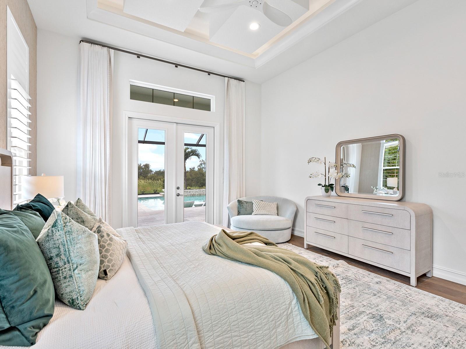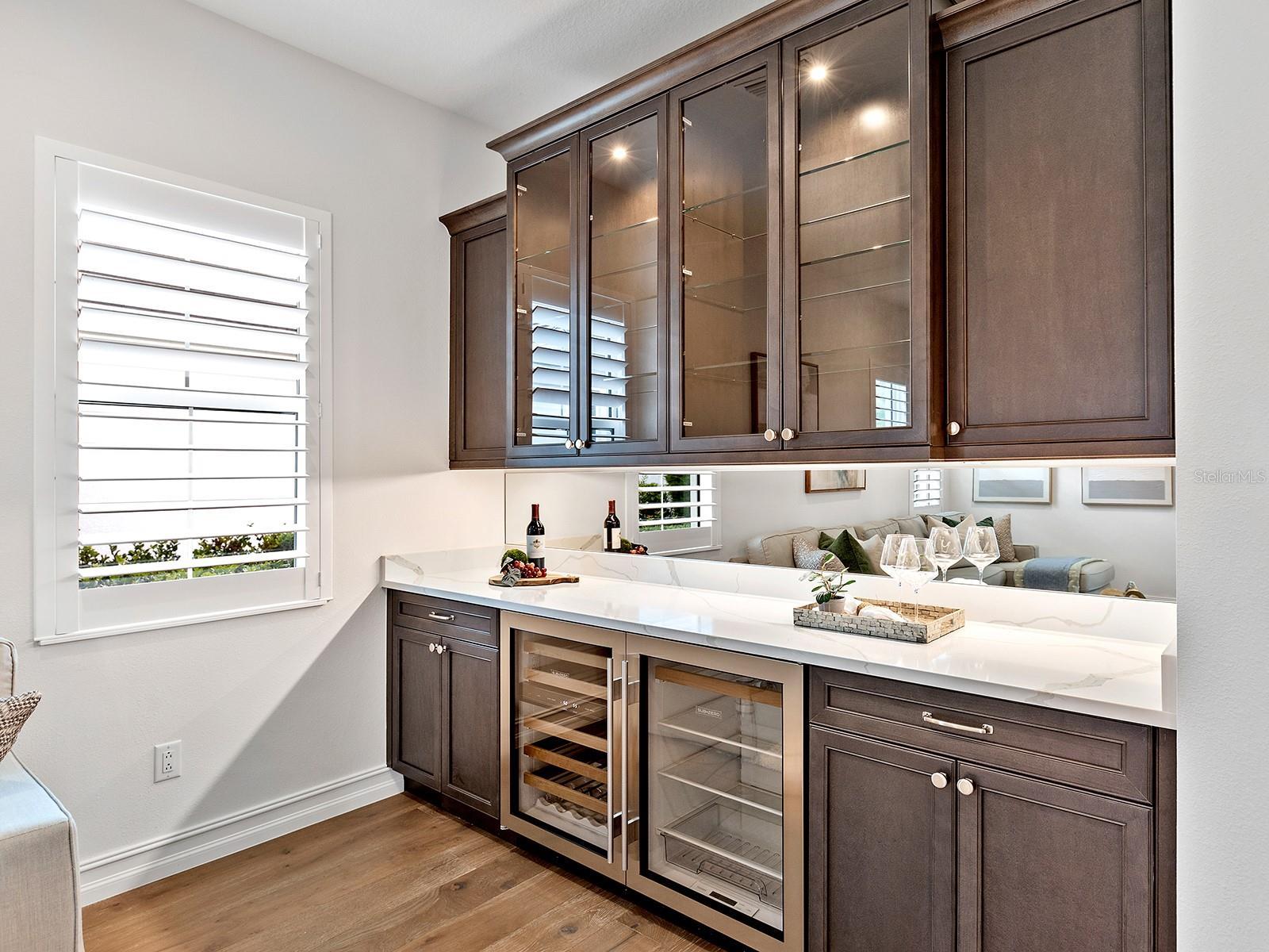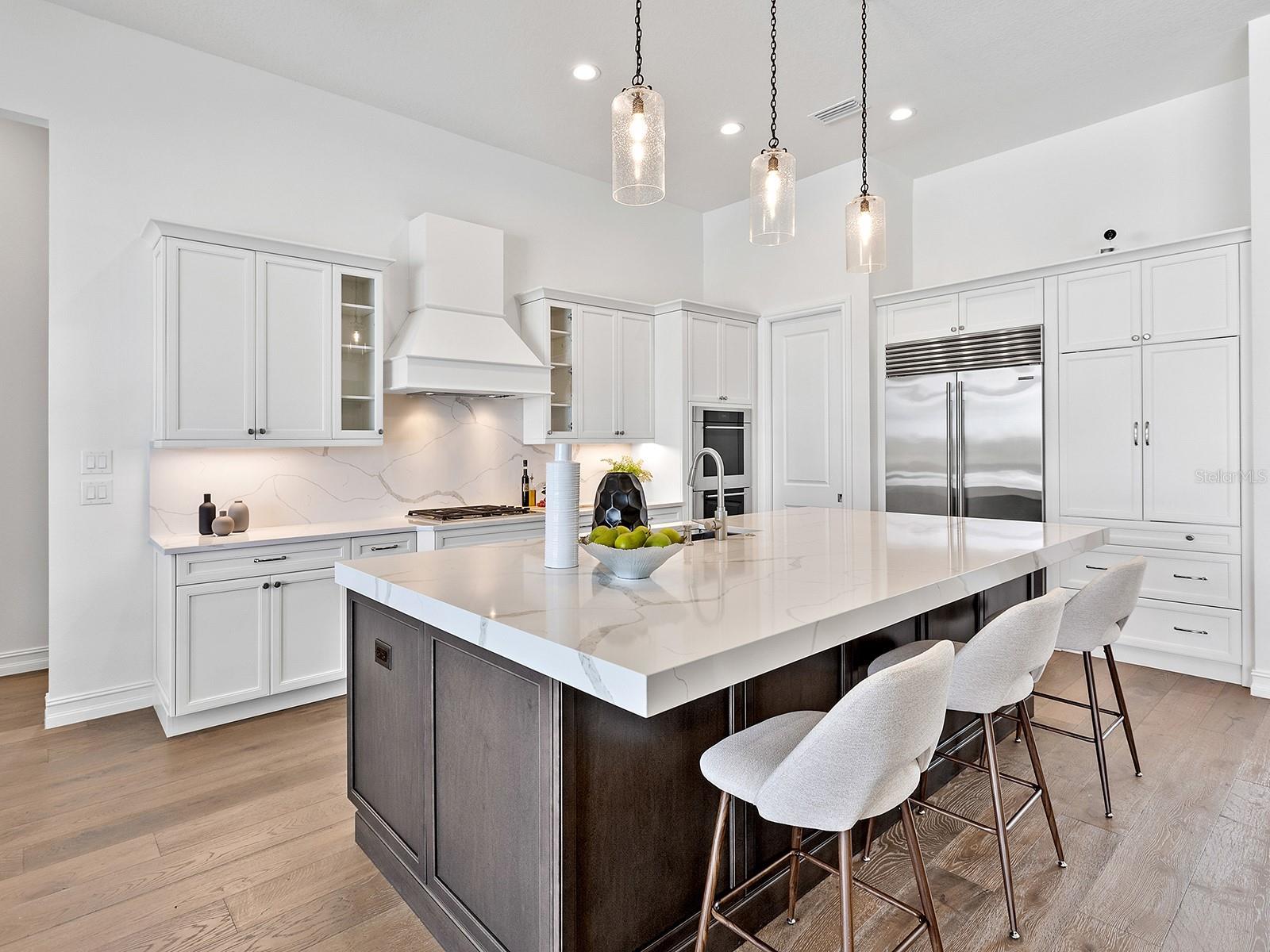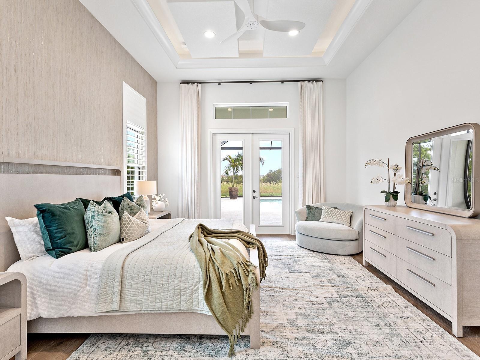 BUYER FINANCING FELL THROUGH - DON'T MISS THIS OPPORTUNITY! Prestigious living in The Lake Club of Lakewood Ranch in within reach! Nestled among towering palms and verdant landscaping is this completely, custom Madison II home built by Stock Luxury Homes in 2021. The lush Florida conservation wetland provides a beautiful backdrop for the western rear exposure with spectacular sunsets. This entire residence had every detail carefully hand-selected to evoke a luxurious and comforting residence including oak hardwood flooring, cove crown molding and custom ceilings, high-end designer light fixtures, plantation shutters, and top-of-the-line functional selections in every room. Superior details and a sense of security continue with high-end construction, impact doors and windows throughout, additional remote control hurricane screens on the lanai, 22kw whole-house generator, surge protector, and whole-house water filtration system. The central great room is the heart of the home with custom coffered ceiling, custom built-in display shelving and entertainment cabinetry, and a full wall of impact sliding glass doors to the lanai. Enjoy a modern open-concept floor plan that flows effortlessly throughout the living areas and out onto the marble paver lanai. With beautiful and private views of the preserve, the lanai offers a serene space to gather around the gas fireplace and under wood ceilings, take in the views from panoramic screen enclosure, or dine by the outdoor kitchen. The custom saltwater pool offers a sunken 360-edge spa, sunshelf, Nebula lights built into the screen enclosure to create a starlight effect above, and a built-in fire bar feature plus water bowls – you won’t find another lanai like this at any other home. The luxurious lifestyle continues indoors with the executive kitchen that is expertly outfitted with high-end appliances including Wolf gas cooktop, Miele dishwasher, Sub-Zero refrigerator, and dual Wolf wall ovens. The custom cabinetry offers complimentary two-tone colors, thick quartz counters with full-height backsplash, pots and pans drawers, additional integrated pantry tower, and a walk-in pantry with shelving. The adjacent dining room has custom ceilings, disappearing corner impact sliders, and a breathtaking designer chandelier. Work from home in the study equipped with dual built-in desks with glass tops, file drawers, and display shelving. The primary suite sparkles with designer wallpaper, custom ceilings, impact French doors to the lanai, and impressive dual walk-in closets with custom closet systems. The spa-like bathroom gives you a five-star experience with dual vanities, make-up space, linen closet storage tower, modern freestanding soaking tub, and walk-in shower with rain shower head. Guests will find similar comfort in two guest suites with their own private en-suite bathrooms. The spacious rear bonus room is ideal for gathering with a custom dry bar with quartz counters, mirrored backsplash, display cabinetry, and two Sub-Zero wine refrigerators. There is also a dedicated full pool bathroom with walk-in shower and exterior lanai access, plus a guest powder bathroom. A functional laundry room, mudroom-style garage entry, spacious 3-car garage and oversized driveway complete this impressive home. You’ll also enjoy a lower property tax bill than other homes because the debt portion of the CDD Lakewood Ranch Stewardship has been PAID OFF.
