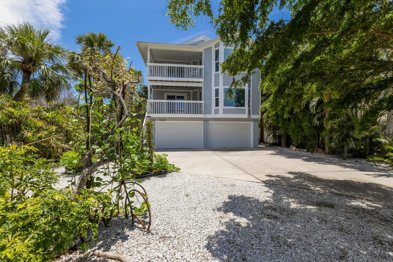 One or more photo(s) has been virtually staged. Perfectly positioned just steps from the sparkling turquoise waters of Tampa Bay and the white sandy beaches, this elevated island home offers breathtaking views of the iconic Skyway Bridge and a front-row seat to the beauty of Anna Maria's coastal charm. Inside, the home showcases a flexible layout with two bedrooms and two and a half baths, along with a with a bonus/office which can easily be converted to a third bedroom. The top level is perfect for entertaining, with the kitchen, living and dining areas designed with an open concept layout to maximize the stunning water views and natural light. The newly remodeled kitchen features elegant granite countertops that enhance the open and welcoming layout. Sweeping water views and palm tree lined vistas create a true island oasis from so many vantage points throughout the home. There is a covered deck off the living area to create even more open living space as well as rear decks off both levels. There is room for a pool in the front corner of the property too. An outdoor shower is already in place. Storm resistant construction includes a new metal roof, Hardie board siding, and impact and turtle friendly windows. AZEK stairs and decking with PVC railings add peace of mind, low maintenance and long term value. Surrounded by lush, mature landscaping, the property provides a sense of privacy and tranquility, featuring a custom designed, automatic gated driveway. There is a spacious enclosed , three car garage with hurricane rated garage doors. Whether you are relaxing on the balcony or taking in the gentle coastal breeze, this home captures the essence of laid back luxury in one of Anna Maria’s most desirable locations. With short term vacation rentals permitted, it presents excellent income potential while also offering the comfort and charm to serve as your forever home. Don’t miss out on this perfect slice of island life!