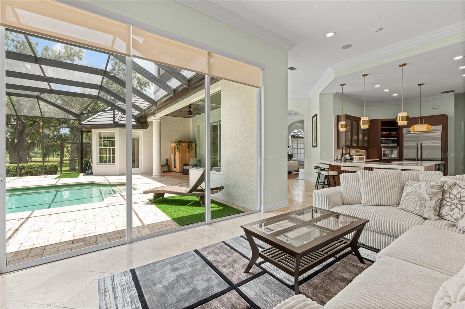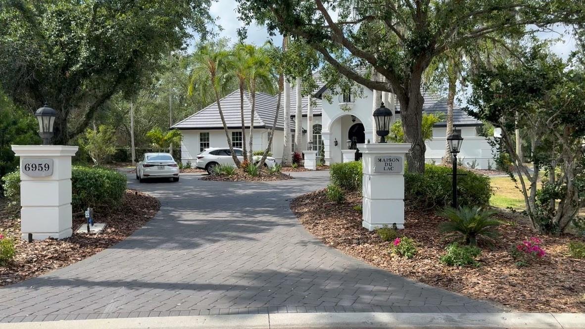 Time to come see why this home is the BEST home in Lakewood Ranch! Just reduced $200,000.00! Maison du Lac is an exquisite and timeless-designed residence nestled in the premier community of Lakewood Ranch Country Club. This location offers not only spacious and private lot but also the enchanting backdrop of a serene lake, complemented with a stunning saltwater pool & hot tub —perfect for relaxation and entertaining. As it is among the first communities in Lakewood Ranch - the HOA is with Town Hall and only $160/month. And the electricity is inside the hospital grid and has never gone out! Many upgrades - including a new tile roof and super systems make for easy living. As you approach the home, you are greeted by a long tear-drop driveway framed by elegant columns bearing the name "Maison du Lac." This leads you into a circular driveway that provides easy access to the impressive entryway and around to the three-car garage. Upon entering, you are welcomed by a grand foyer that opens into the expansive Great Room, where natural light floods in, showcasing views of the pool and picturesque pond. To your right, the inviting piano room adds a touch of sophistication, while to your left, the formal dining room awaits—ideal for hosting gatherings. The heart of the home is the Chef's Kitchen, equipped with top-of-the-line Thermador appliances, a reverse osmosis water system, a built-in coffee maker, and a convenient pot filler over the gas range. The kitchen also features a large eat-in breakfast area and a dedicated kitchen office for culinary enthusiasts. The family room is designed for entertainment, boasting an impressive 85" screen TV and adjacent bonus room, perfect for movie nights or game days. This wing of the home includes two additional bedrooms and a full bathroom, ensuring ample space for family and guests. Retreat to the luxurious Master Suite, which offers direct access to the pool and lake, creating a tranquil oasis. This suite features his and hers walk-in closets, as well as a lavish bathroom complete with both a soaking tub and a spacious shower, along with separate toilet rooms for convenience. But the allure of Maison du Lac doesn't end here. Ascend to the upper level, where you'll find a captivating balcony that provides sweeping views of the surrounding landscape. This level also includes a game table, a full bath, and a bar area—perfect for entertaining or unwinding in style. Live like royalty in this magnificent home, where every detail has been thoughtfully designed for luxury and comfort. Welcome to your dream home at Maison du Lac!