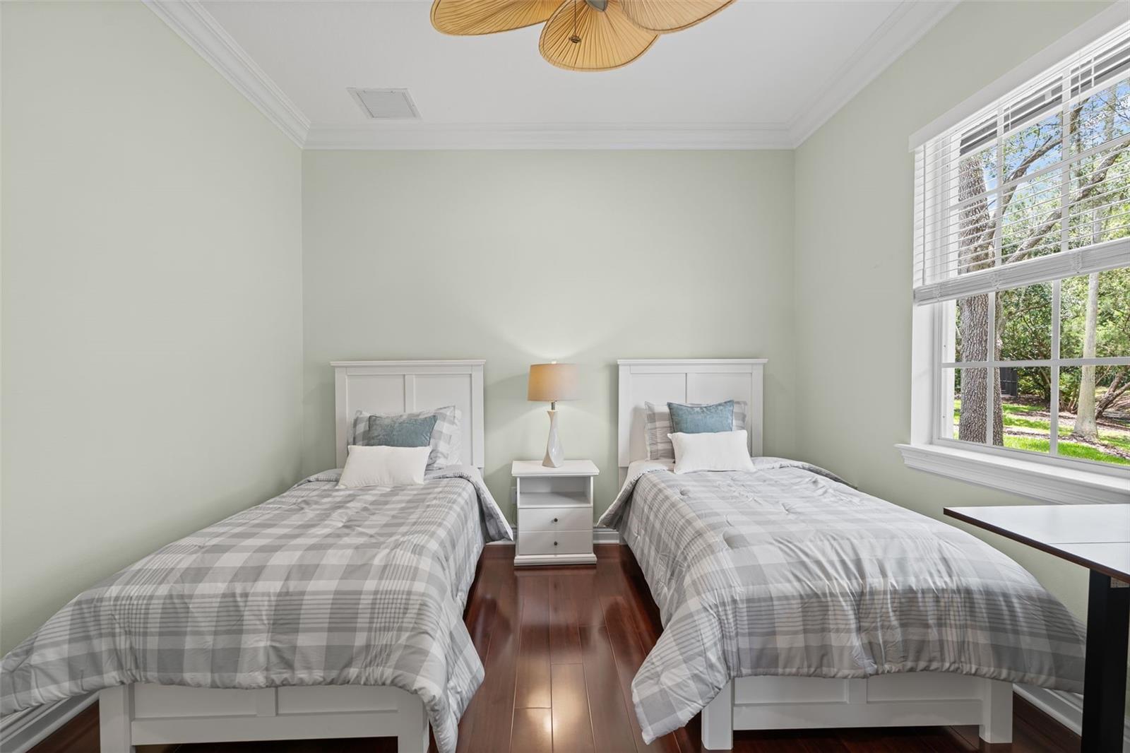 - Crown Molding, Dry Bar, Eat-in Kitchen, High Ceilings, Kitchen/Family Room Combo, Primary Bedroom Main Floor, Solid Surface Counters, Solid Wood Cabinets, Thermostat, Tray Ceiling(s), Walk-In Closet(s), Window Treatments
