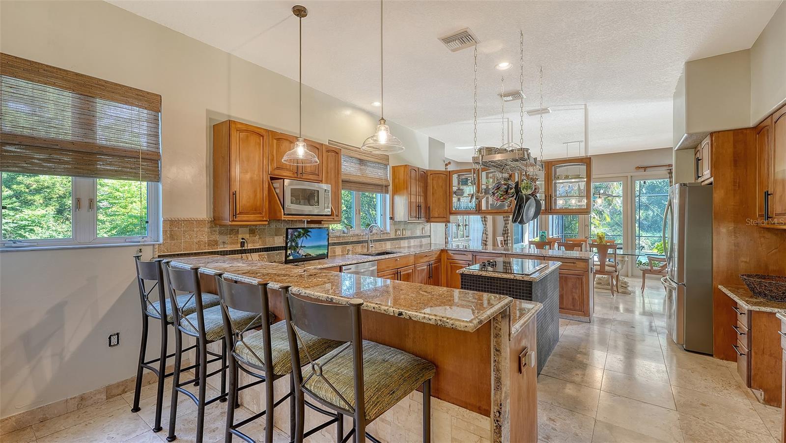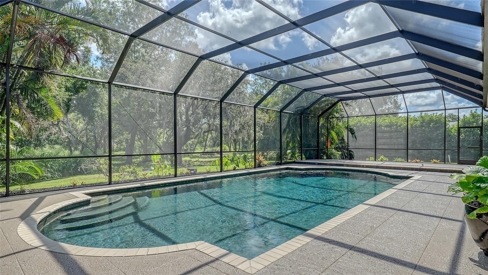 Under contract-accepting backup offers. Unique, first time on the market home with private lot – 1.34 acres. Located in River Club (no CDD), this home is just waiting for its next owner to make it theirs. Home was custom built with over 4,0000 sq ft, 4 bedrooms, 3 ½ half baths, large great room, office, dining room, bonus room, storage room, 3 car garage and large lanai with pool. The upstairs master bedroom retreat has two walk-in closets with built-ins and private deck that was stained and rescreened in 2023. Large Master bathroom with lime stone flooring and two new sinks. Also, upstairs is a bonus room with Brizan Hickory Engineered Hardwood flooring and large storage room. Downstairs there are three other bedrooms. Bedroom two and three has a Jack-n-Jill bathroom, Bedroom four has an en-suite bathroom. All three bedrooms downstairs have new ceiling fans. Kitchen offers travertine flooring, Newer Stainless-Steel appliances, granite counter tops, double oven, and island with range. Great room has Brizan Hickory Engineered Hardwood flooring, wood burning fireplace, and wet bar with newer refrigerator. Laundry room comes with LG washer/dryer, sink and plenty of cabinets and closet. House also offers central vacuum, on demand whole house hot water, propane/gasoline generator with auto start included, outside electrical outlet for generator and large lanai with salt water pool that was rescreened in 2023. Ages: water heater 2020, one 3-ton 15 seer AC 6/2024, two 2-ton 14 seer ACs 12/2019, and roof 4/2019.