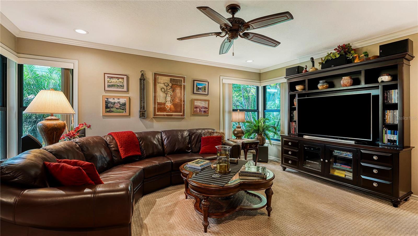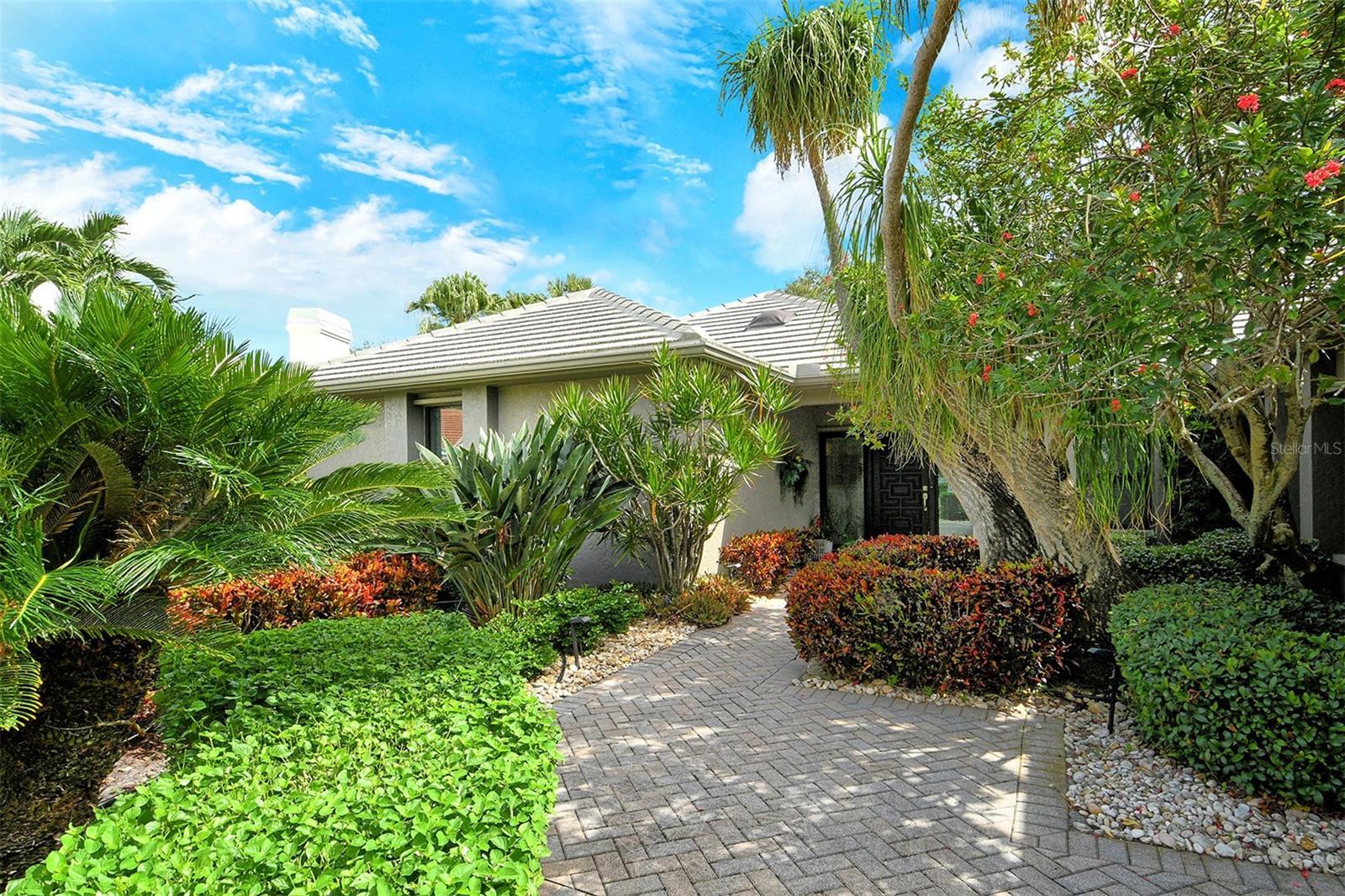 Located in Sarasota’s coveted and 24-hour guard-gated West of Trail community, The Landings, this beautifully reimagined 3-bedroom, 3-bath residence with a bonus room offers refined coastal living and peace of mind through extensive, high-quality updates. Situated on a lushly landscaped lot with mature trees and privacy and not in a flood zone, this 2,921 sf home blends timeless architecture with thoughtful modern improvements, all just minutes from Siesta Key’s world-famous beaches and Downtown Sarasota. Hurricane-impact windows and sliders, and the Miami-Dade rated roof and updated PVC plumbing offer structural integrity and long-term value. Design upgrades include porcelain tile flooring and beautiful custom wood cabinetry and built-ins. The fully updated kitchen features premium stainless appliances, Silestone counters, stylish cabinetry, a picture frame window overlooking the beautiful garden, a convenient pass thru window to the lanai, and custom walk-in pantry. The adjacent dining room is perfect for entertaining and the formal living room with its high ceiling is anchored by a woodburning fireplace with tiled hearth and built-ins. The split-bedroom floor plan offers privacy and functionality, with all 3 bedrooms, (one currently outfitted as a convenient home office with solid wood built-ins) boasting custom walk-in closets and lovely bathrooms. A spacious bonus room is light and bright and includes a redesigned alcove with floor-to-ceiling custom built-ins to house books, media, or art. Every inch of this home reflects quality, style, and enduring craftsmanship. The interior of the home flows seamlessly to the elegant and serene exterior where you will enjoy the professionally redesigned landscape with exquisite plantings, brick paver driveway, meandering walking path, elevated relaxation area, peaceful fountain, and custom exterior lighting. The spectacular pool area underwent a major renovation in 2020 which included resurfacing with Pebble Tec (lifetime warranty), installation of a new heater and pump, and the addition of a stylish new Italian tile surround. The lanai was rescreened in 2023 and the deck was upgraded with a high-performance Pro Tech surface for durability and beauty. Located behind the gates of The Landings, residents enjoy tree-canopied streets, a nature trail leading to Roberts Bay, and optional membership to the Landings Racquet Club, offering tennis, pickleball, a heated pool, fitness center, and clubhouse. With proximity to A-rated schools, Southside Village, Sarasota Memorial Hospital, and the cultural amenities of downtown Sarasota, this property is a rare opportunity to own a truly move-in-ready home in one of Sarasota’s most sought-after communities.