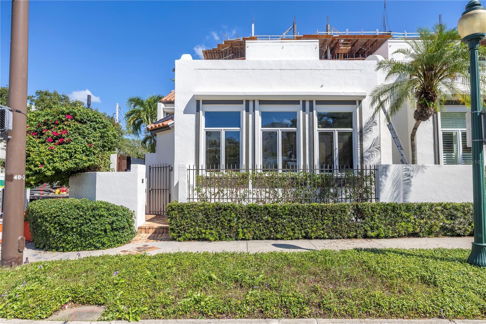 Downtown Sarasota Villa with Rooftop Terrace! Exterior renovations are now complete! A rare offering in the heart of downtown Sarasota, this private villa in the coveted Library Mews community seamlessly blends timeless charm with modern convenience—just steps from the city’s finest dining, shopping, arts, and culture. Tucked behind a gated brick courtyard, this two-story residence offers the feel of a hidden retreat while placing you moments from it all. Step inside to soaring ceilings, rich wood floors, and sun-filled living spaces designed for both comfort and connection. The beautifully updated kitchen features crisp white cabinetry, quartz countertops, stainless steel appliances, and an island with bar seating—perfect for casual meals or entertaining. The main level also includes a spacious living room, formal dining area, a flexible bonus room ideal for a home office or den, and a convenient powder bath. Every space is thoughtfully designed to maximize light, function, and flow. Upstairs, two en-suite bedrooms offer peaceful separation and privacy. The primary suite boasts vaulted ceilings, generous closet space, and tranquil treetop views, while the second suite is equally well-appointed—perfect for guests or additional family. Crowning the villa is an expansive private rooftop terrace, offering partial bay views and sweeping downtown vistas—a true rarity in this location. Whether enjoying a quiet sunrise or hosting friends under the stars, this outdoor space elevates everyday living. Additional highlights include a private one-car garage with gated access, interior laundry, and low-maintenance living with a boutique community feel. From the Sarasota Opera House and Selby Library to Whole Foods, Marina Jack, and the Bayfront—everything you love about downtown Sarasota is right outside your door. This is more than a villa—it’s a lifestyle. Don’t miss your opportunity - book your showing today!