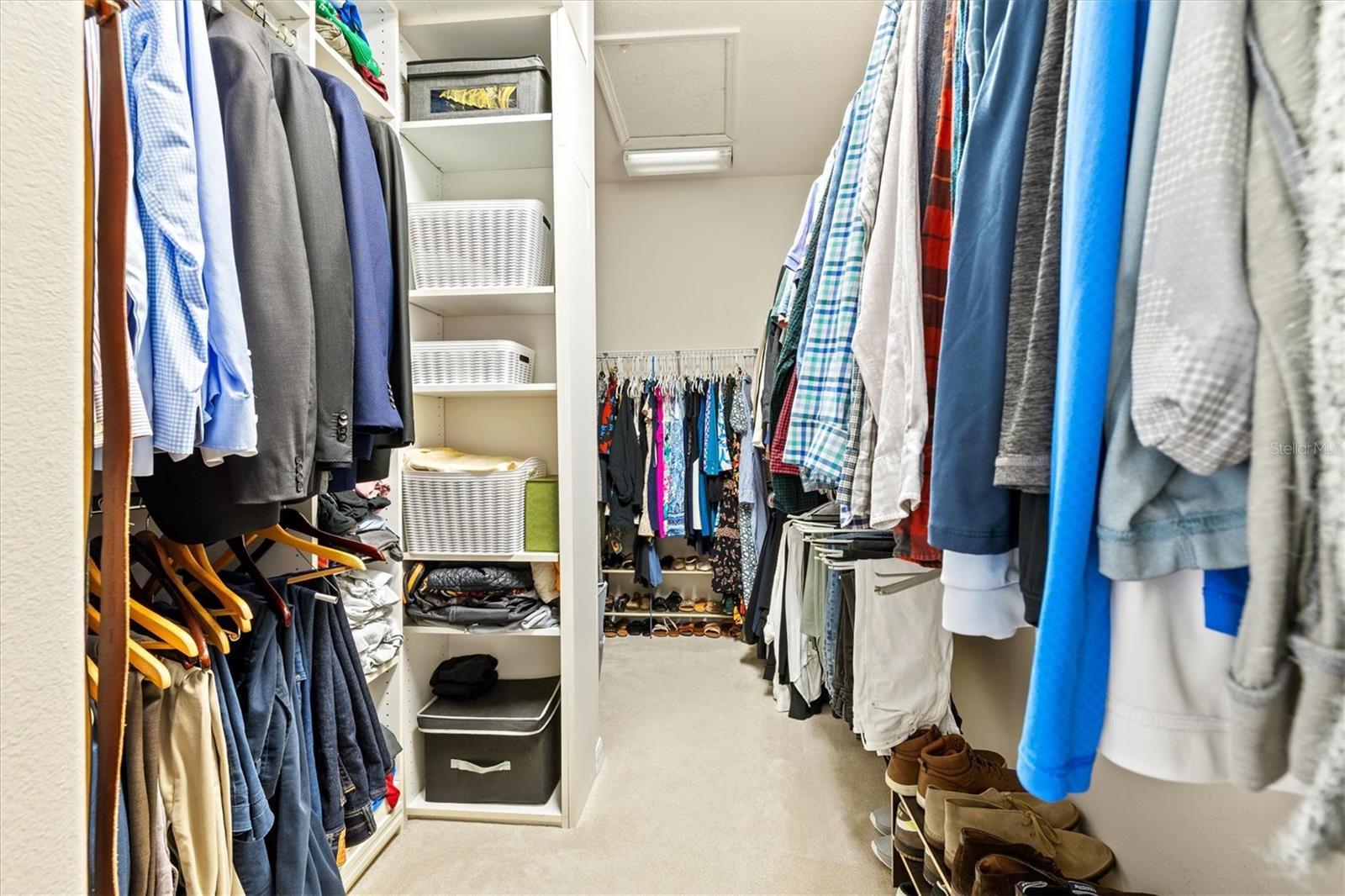 - Ceiling Fans(s), Crown Molding, Eat-in Kitchen, High Ceilings, Living Room/Dining Room Combo, Open Floorplan, Primary Bedroom Main Floor, Solid Surface Counters, Solid Wood Cabinets, Stone Counters, Thermostat, Tray Ceiling(s), Walk-In Closet(s), Window Treatments
