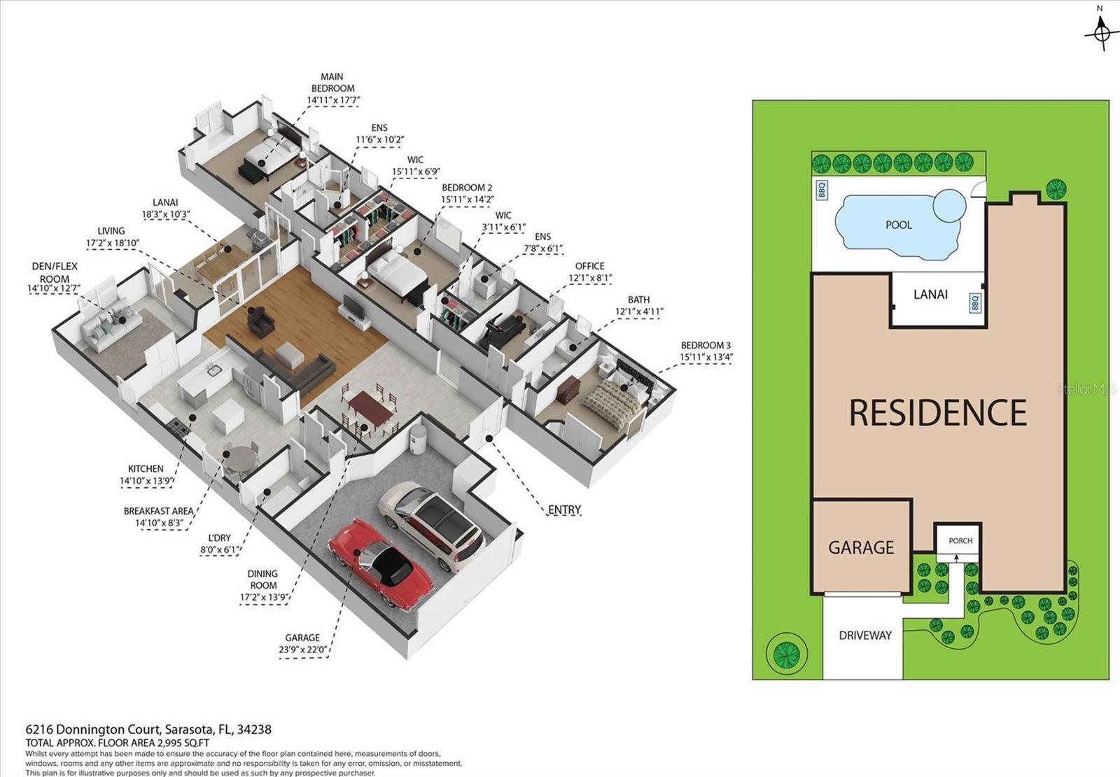 The Best Value in Palmer Ranch just got even better! A BRAND NEW 2026 TILE ROOF IS ON THE WAY... Come explore this beautifully updated 4 bedroom 3 bathroom pool home with long lake views in the sought after Hamptons community of Palmer Ranch. This is the largest active floor plan in the community with over 2600 sq ft under air and nearly 3500 under roof. This South facing home is light and bright and should check all of your boxes. A flexible floor plan allows for 3 or 4 bedrooms PLUS an office or den. High ceilings in the living spaces make the house feel open and airy with views of the pool and lake from the tastefully updated dining and living rooms. The master suite is generously sized and offers direct pool access, lake views, a large en suite bathroom with his and her sinks and an oversized walk-in closet. Two of the other three bedrooms are large enough to accommodate King size beds, one of which has it's own en suite bathroom. The smaller 4th bedroom potentially works better as a nursery, office, or workout room. The eat-in chef's kitchen has been newly remodeled with white shaker cabinets and matte black hardware, picket style backsplash and black granite counters that are perfectly on trend. A separate laundry room off the kitchen features a brand new washer and dryer and a handy utility sink. The oversized garage is large enough for two cars plus bikes and storage. Step outside to the screen enclosed lanai offering outside dining under covered roof and an in-ground pool and spa with fountain feature. Other recent upgrades include New dishwasher (July 2025), New AC (December of 2023) and New hot water heater (November of 2023). The lot location is unique, sitting at the Southern tip of a wildlife rich community pond allowing for both views and privacy. The Hamptons is conveniently situated just 2 minutes from the Legacy Bike Trail, 10 minutes from the South entrance of Siesta Key, only 15 minutes to Lakewood Ranch and a short 20 minute drive to downtown Sarasota. With A-rated schools and established residential communities and shopping plazas all around, this a can't miss for quality of life and long term investment. Don't miss your chance to get everything you want at a price that cannot be beat! Schedule your private showing today.