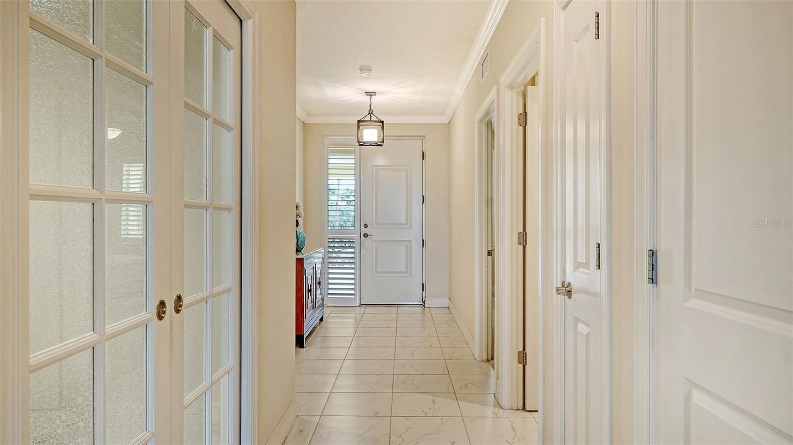 WHAT A VIEW and the pictures don't do it justice!! SELLER IS OFFERING to prepay three (3) months of HOA dues on behalf of the buyer at closing. FULLY FURNISHED/TURNKEY UNIT!!! Prepare to be captivated by jaw-dropping sunsets from your oversized, private, screened-in balcony, offering unobstructed vistas across Little Sarasota Bay to the peaceful barrier island of Casey Key. Welcome to Edgewater at Hidden Bay — a gated, 12-acre resort-style community perfectly positioned between the charm of historic Venice and the cultural vibrancy of downtown Sarasota. This impeccably maintained three-bedroom, two-bathroom plus den residence offers panoramic water views and an easy, elegant coastal lifestyle. Step inside to a bright, open-concept layout with a spacious living and dining area — perfect for entertaining or relaxing while soaking in the scenery. The gourmet kitchen is a chef’s dream, featuring stainless steel KitchenAid appliances, granite countertops, 42” real wood cabinetry, counter-height seating, and abundant storage. Coffered ceilings and 5-inch baseboards add refined architectural detail throughout. The expansive primary suite is a tranquil retreat with direct access to the balcony, dual walk-in closets, and a spa-inspired bathroom boasting dual vanities and a glass-enclosed shower. A split bedroom layout offers optimal privacy, while the full-size laundry room includes built-in cabinets and a sink for added convenience. Additional highlights include Kohler plumbing fixtures, hurricane-impact windows and doors, and an abundance of natural light throughout. Offered furnished, this home is move-in ready. Edgewater at Hidden Bay delivers exceptional amenities: a heated resort-style pool and spa, clubhouse with catering kitchen and library, fitness center, tennis and pickleball courts, kayak launch and storage, scenic boardwalk through lush mangroves, and a private fishing pier (currently being rebuilt). Enjoy unmatched access to award-winning beaches (just 6.5 miles to both Siesta Key and Nokomis Beach), Bay Street Park, Legacy Trail, Oscar Scherer State Park, shopping, dining, marinas, golf, and premier medical facilities. This is more than a home — it’s a lifestyle. Schedule your private showing today and discover the very best in waterfront living.