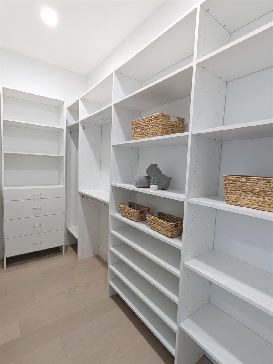- Built-in Features, Ceiling Fans(s), Eat-in Kitchen, High Ceilings, Living Room/Dining Room Combo, Open Floorplan, Primary Bedroom Main Floor, Smart Home, Solid Wood Cabinets, Split Bedroom, Stone Counters, Thermostat, Walk-In Closet(s)