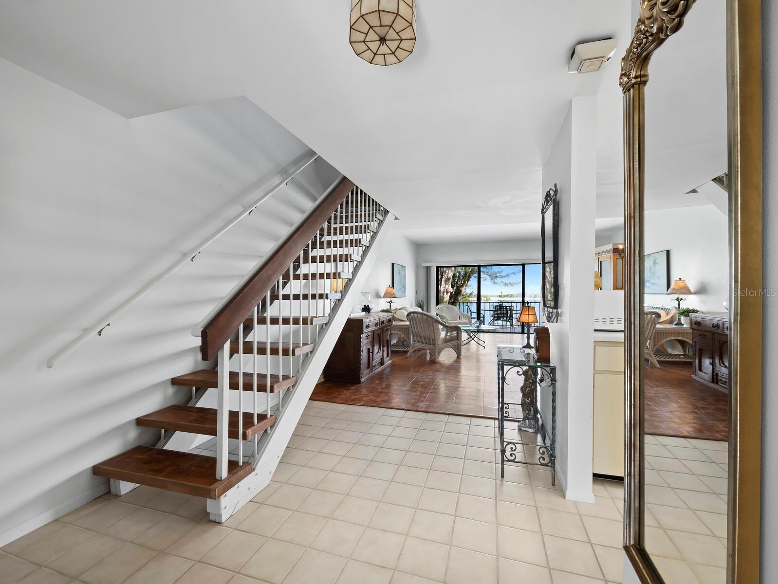 This rare offering is all about the one-of-a-kind BREATHTAKING VIEWS overlooking multiple waterways across Greer island, towards the Intracoastal and out to the gorgeous Gulf of Mexico sunsets! Situated on the quiet north end of Longboat Key in a small, waterfront, boutique midrise building containing only 9 residences: this is island living at its best! It features two bedrooms and 2 and a half baths plus a bonus ground floor air conditioned room and a workshop. Take the steps up to your first living level and enjoy a galley kitchen open to the large great room with sliders to one of 2 outdoor balconies above the ground level, poolside covered porch. On this level is also a half bath. Take the steps up to the second level and the views become even more astounding through the sliders from the Primary ensuite bedroom! Here you will also find the 2nd bedroom and the second bath. Besides the sparkling waterside pool, this small and friendly community has 3 small docks available that allow for easy water access with your kayak, paddleboard or small boat. And don’t forget it has its own clay tennis court as well. One of the nicest and widest beaches on Longboat Key is located just down the street and it wraps all the way around Greer island where you can stand and admire your condo across the waterway from your walk! Multiple restaurants and shopping destinations are within a bike ride or short walk away and the cultural epicenter of downtown Sarasota and Bradenton are just off island when you choose to leave. This may well be the laid-back island life style you are searching for.