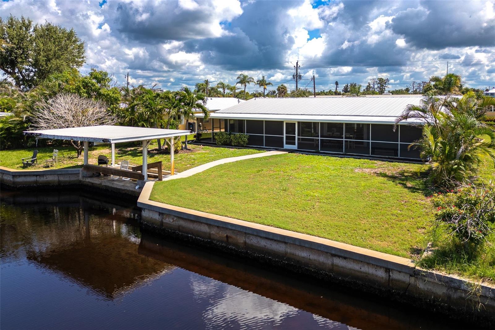 WELCOME TO YOUR FLORIDA COASTAL ESCAPE WHERE RELAXED LIVING MEETS UNBEATABLE WATERFRONT ACCESS! Located just THREE LOTS from LEMON BAY in the quiet enclave of POINT OF PINES, this beautifully renovated home offers DIRECT, BRIDGE-FREE ACCESS TO THE INTRACOASTAL AND GULF OF MEXICO via Stump Pass in under 15 minutes. Step through the front door and take in SWEEPING CANAL VIEWS through a wall of sliders that span the full width of the GREAT ROOM. The expansive 60-FOOT SCREENED LANAI is the perfect place to sip your morning coffee or unwind at sunset while watching DOLPHINS and MANATEES swim by. With 80 FEET OF CONCRETE SEAWALL and a COVERED BOATHOUSE, you'll enjoy easy boating and the potential to ADD YOUR DREAM POOL between the lanai and the water’s edge. Inside, the home was FULLY REMODELED and designed for COMFORT AND ENTERTAINING. It features THREE PRIVATE ENSUITE BEDROOMS, including two with DIRECT LANAI ACCESS, an OPEN-CONCEPT LIVING AREA, and a spacious layout ideal for hosting guests. Major updates include IMPACT-RESISTANT WINDOWS AND DOORS and a STANDING SEAM METAL ROOF. This prime location is just TWO MILES from ENGLEWOOD BEACH and minutes to a wide variety of RESTAURANTS, GOLF COURSES, SHOPPING, and MARINAS. Whether you're seeking a SEASONAL GETAWAY or a FULL-TIME RESIDENCE, this home CHECKS ALL THE BOXES for GULF COAST LIVING. SCHEDULE YOUR PRIVATE SHOWING TODAY and experience THE BEST OF FLORIDA’S GULF COAST.
