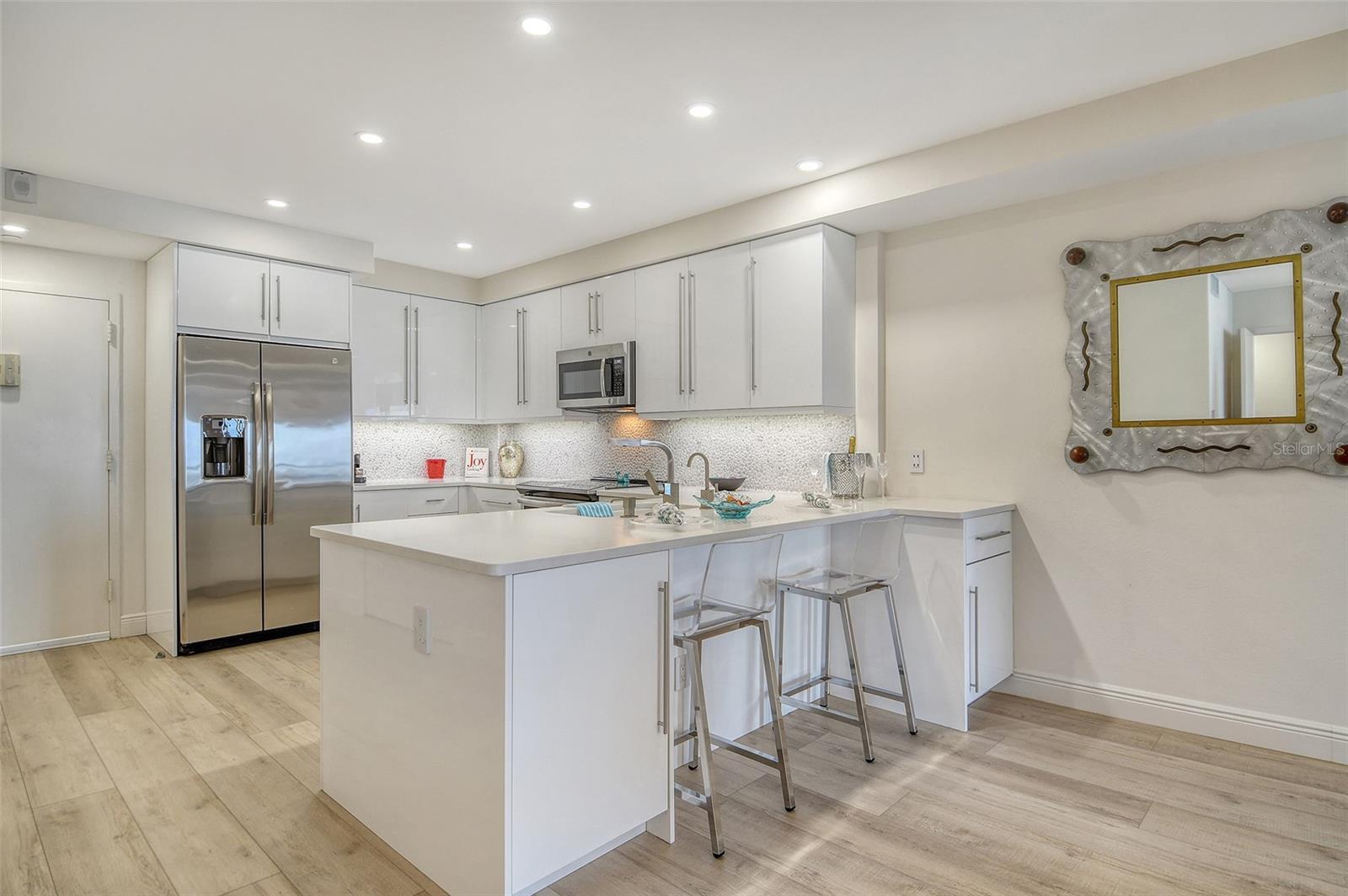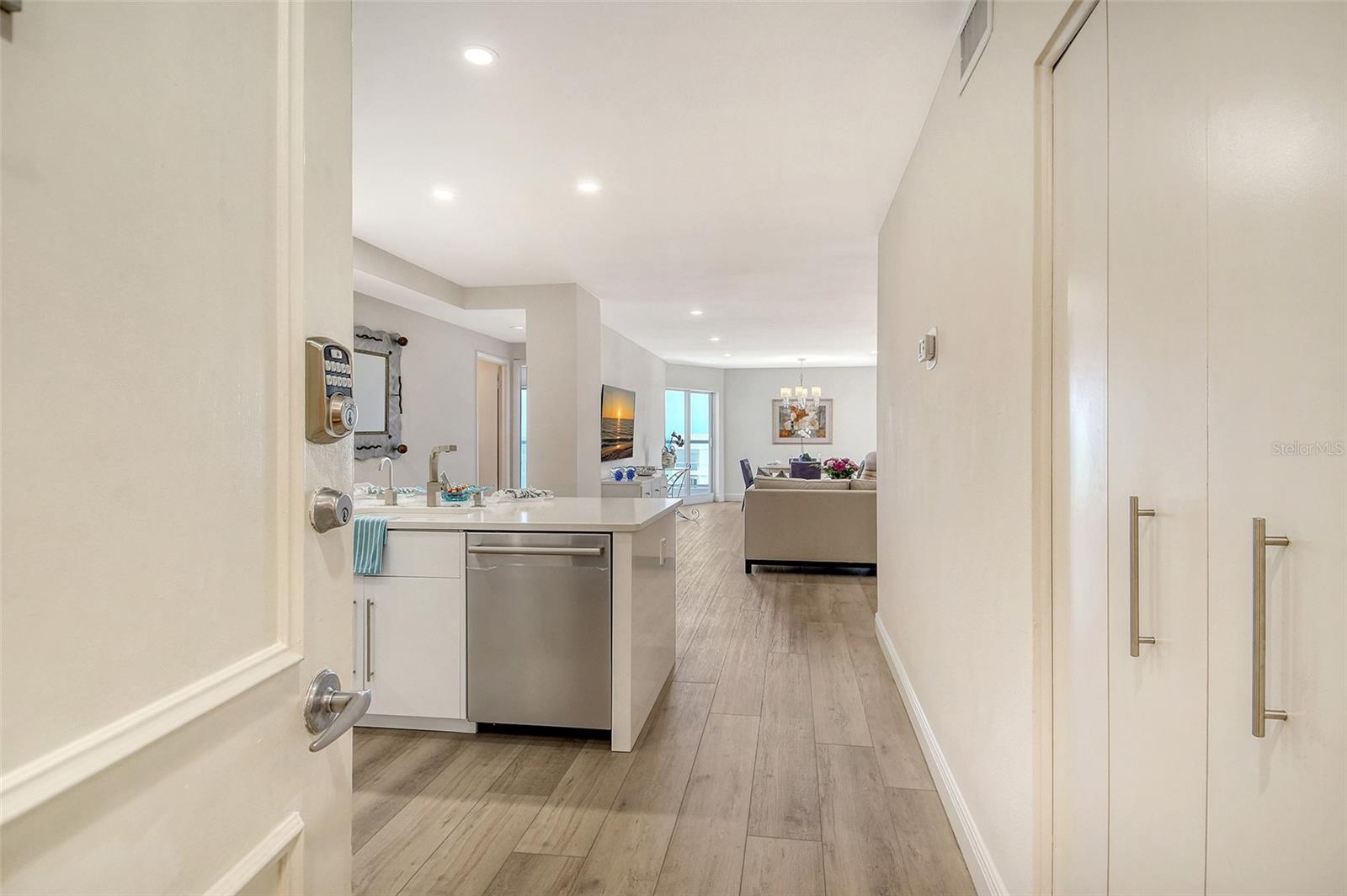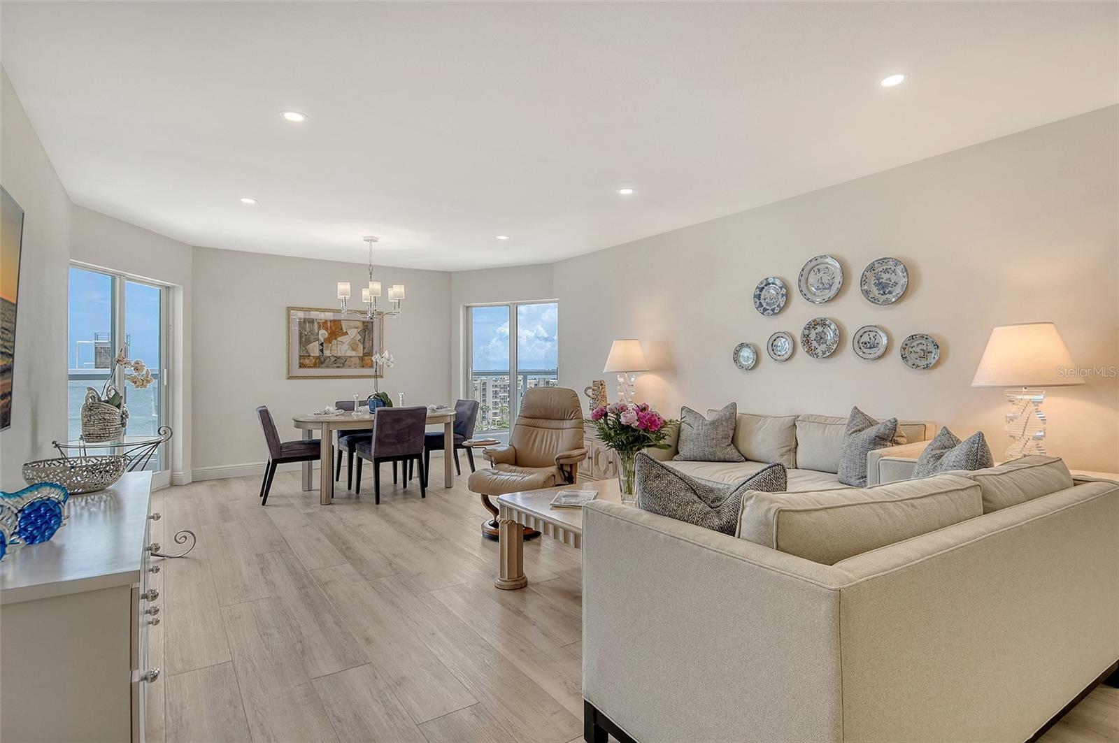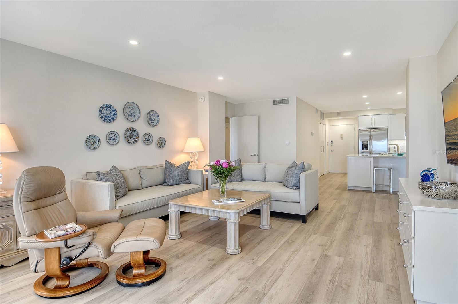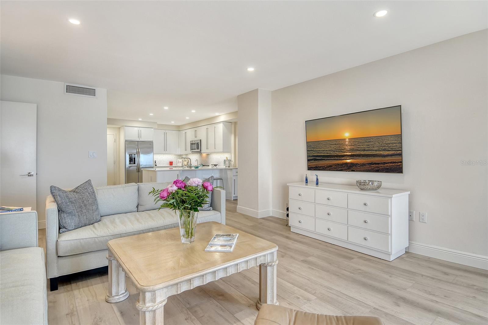 Rarely available and beautifully renovated 11th floor Penthouse with breathtaking Gulf, Sunset and Bay views and ideally situated within a short beach walk between the popular Resort at Longboat Key Club and the luxurious St. Regis Resort. This island gem has brought many years of joy to the Seller based on its perfect South LBK beachside location and all it's resort style amenities. The sleek European style interior boasts carefree luxury vinyl plank flooring, along with new carpeting in both bedrooms, LED lighting, dazzling designer tile in both bathrooms, and the color scheme throughout mirrors its direct seaside setting. The open-concept kitchen makes entertaining a breeze and offers gorgeous quartz counter tops, custom backsplash, stylish GE appliances, sparkling hardware, and a customized breakfast bar. Both the primary and guest bedroom each lead to a separate balcony where you can soak up the sun while enjoying the peaceful surroundings and endless water and beach views. Residents enjoy the convenience of on-site management, an updated guest suite & additional guest quarters for your overflow visitors, a secure lobby, tennis and pickle ball, heated pool and spa, a great gym, and a refurbished lobby, hallways, social room, community bathrooms, and the landscaping create an even more exceptional experience in this world-class beach location. A membership to Longboat Key Club’s exceptional offerings will provide many hours of outdoor fun and golf & tennis enthusiasts will appreciate the two championship courses & tennis gardens. These facilities, along with professional instruction and well-appointed pro shops, cater to athletes of all levels. Outside the gates, Longboat Key offers fine & casual dining, deep water boating & fishing, 10 miles of sugar sand beaches, and a great variety of local treasures to explore. The Sarasota Opera & Ballet, Van Wezel Performing Arts, and all of Sarasota's cultural offerings including boutique shopping and popular restaurants are just minutes away, creating the perfect balance of relaxation and activity in this sought-after island paradise.