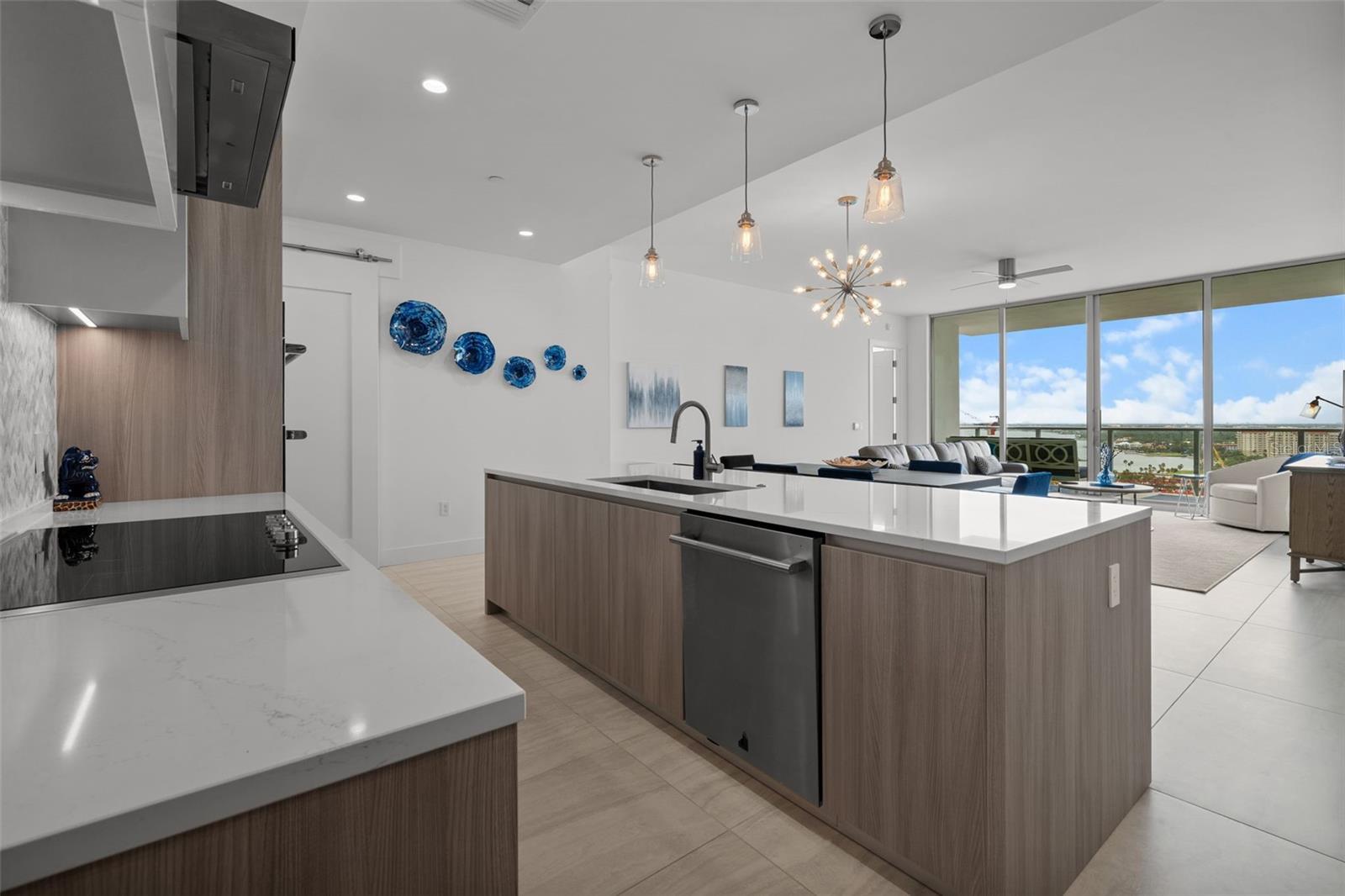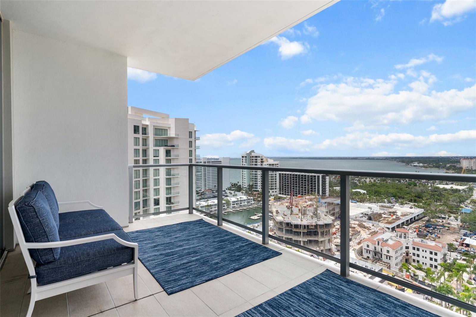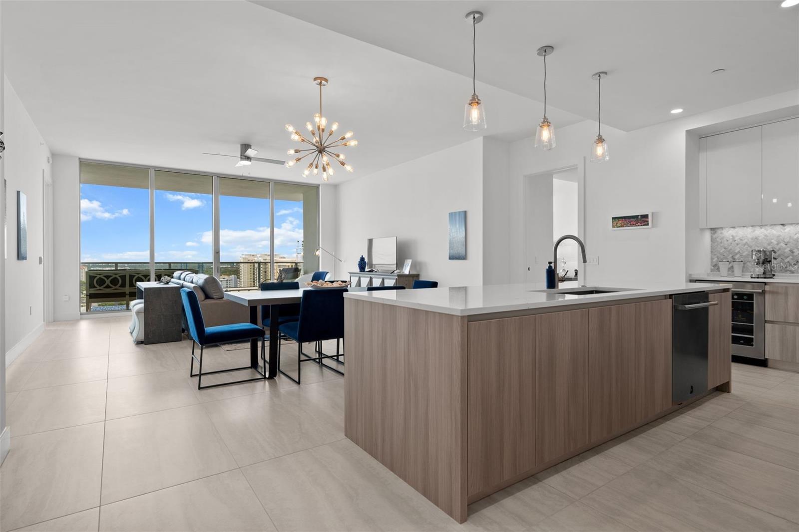 Welcome to sky-high living in Downtown Sarasota’s vibrant Waterfront District. Perched on the 17th floor of one of the area's newest luxury residential towers, this two-bedroom + den, three-bathroom residence offers an exceptional opportunity to live above it all—with peek-a-boo views of Sarasota Bay, the Gulf of Mexico, the Quay Yacht Harbor, and the lush greenery of the Quay Park, all from your private terrace. Spanning 1,828 square feet of interior living space, this residence blends sleek modern design with coastal elegance. From the moment you enter through a formal foyer, the 10-foot ceilings and expansive open-concept layout create the feel of a single-family home in the sky—complete with soaring views and abundant natural light. Designed with both style and function in mind, the den is ideally located near the entrance and just across from the third full bathroom. This flexible space makes a perfect home office or private guest room, offering added versatility and privacy. The chef’s kitchen is an entertainer’s dream, featuring European cabinetry by Italkraft, quartz countertops, and premium stainless steel JennAir appliances. A neutral-tone herringbone backsplash cascades up the wall, creating a beautiful focal point that adds both warmth and texture to the space. A dry bar with a wine refrigerator provides the perfect place to serve guests or enjoy your favorite latte in the morning. The primary suite is a peaceful retreat, with floor-to-ceiling windows framing city and water views. The ensuite bathroom is spa-inspired, with a double vanity, coastal wood grain cabinetry, and a clean, modern aesthetic. The secondary bedroom also features its own ensuite bath, making it perfect for hosting overnight guests in style. As one of the first owners in this exciting new development completed in 2023, you'll be at the heart of Sarasota’s next great destination. The Quay Sarasota is fast becoming the city's epicenter for luxury living, fine dining, boutique shopping, and waterfront leisure. Residents enjoy access to resort-style amenities, along with proximity to cultural venues, marinas, and the world-famous quartz sand beaches of the Gulf Coast. Located just 15 minutes from Sarasota-Bradenton International Airport and minutes from the barrier islands, downtown arts district, and St. Armands Circle, this residence offers a highly desirable combination of location, lifestyle, and long-term value. This luxury condominium is move-in ready and waiting for its new owner. Furnishings are available for purchase separately, making this a turnkey opportunity for the discerning buyer seeking both elegance and convenience in one of Sarasota’s most exciting new neighborhoods.