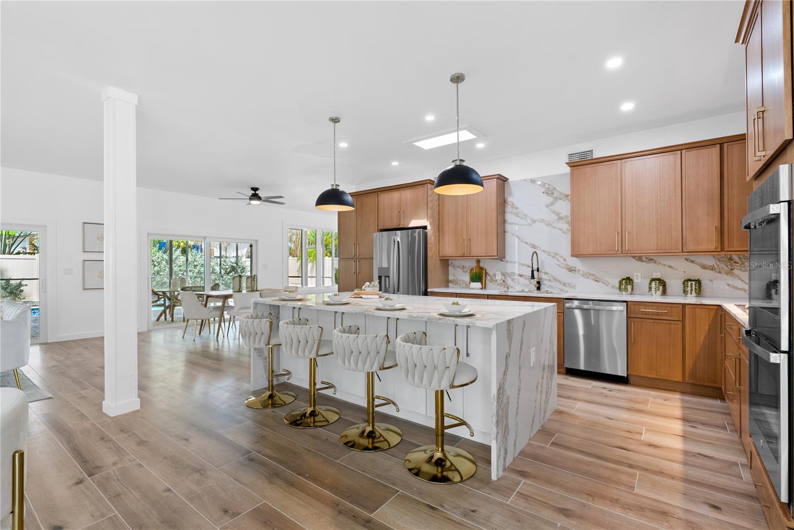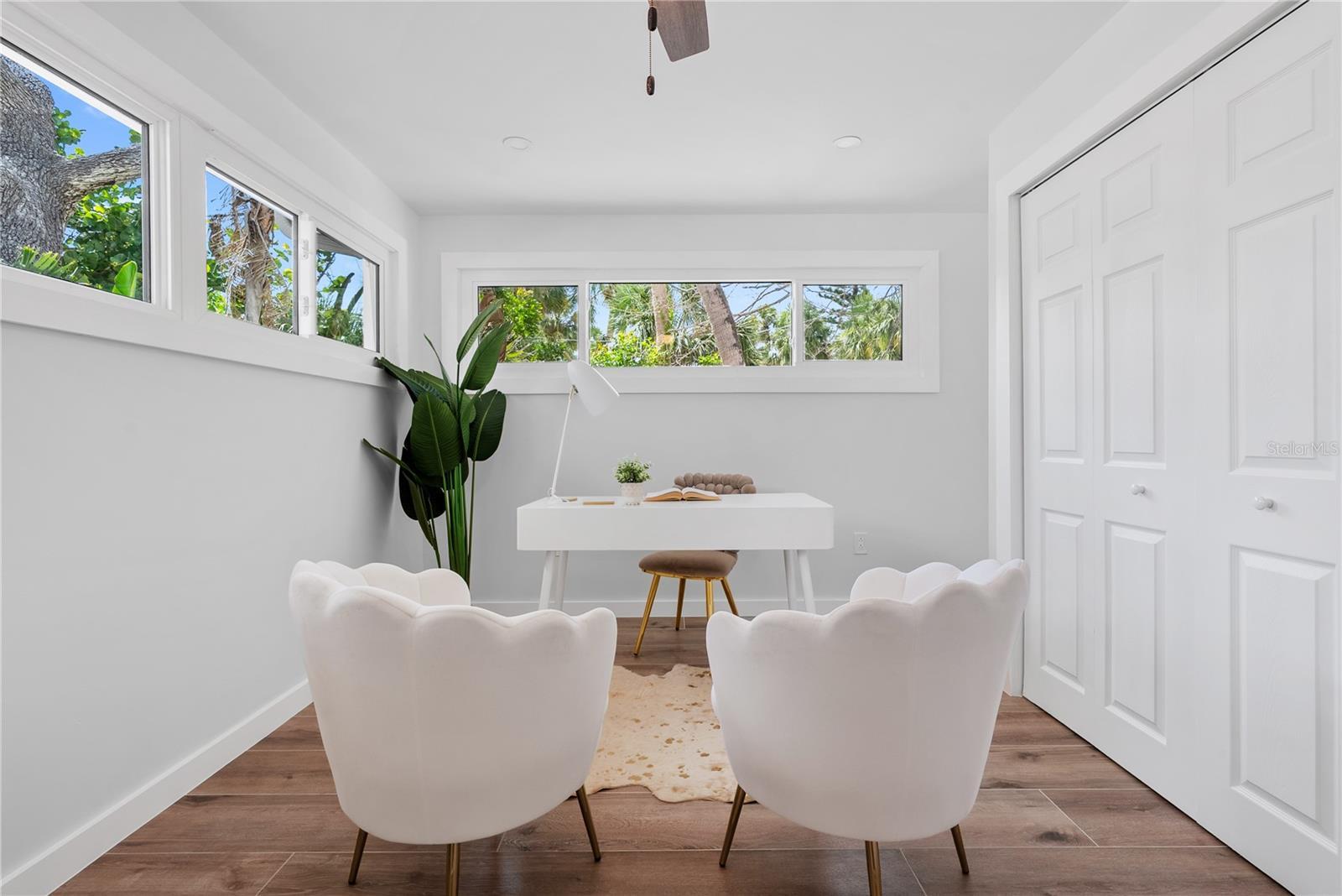Lease a Rare Piece of Sarasota's Architectural History on Siesta Key! Step into timeless design and architectural significance with this rare mid-century modern masterpiece, situated on a private double lot in the heart of Siesta Key. Originally crafted in 1957 by Frank Coleman and Tollen Twitchell, two influential figures in the Original Sarasota School of Architecture, this home seamlessly blends historical character with modern luxury. Boasting 2,500 square feet of light-filled living space, this 4-bedroom, 3-bathroom residence has been meticulously renovated while preserving its original architectural integrity. Clean lines, expansive impact windows, and an open floor plan define the home’s iconic style, inviting the outdoors in and creating a sense of calm sophistication throughout. Inside, the split floor plan provides distinct zones for privacy and connection. The primary suite is a sanctuary of its own, complete with private access to the outdoors, a luxurious bath featuring a freestanding soaking tub, and a marble-lined walk-in shower. On the opposite side of the home, three additional guest bedrooms provide comfort and style—including a junior suite with its own private bath, full marble detailing, and oversized picture window with views of the pool and deck area. High-end renovations include: New commercial-grade roof (30-year lifespan); High-impact windows and doors throughout the home; Durable wood-grain tile flooring; Quartz waterfall countertops & custom wood cabinetry in the kitchen; Floor to ceiling marble tile in all bathrooms; All new major appliances including HVAC, pool equipment and water heater; Spray foam insulation throughout the home for an extra layer of protection; and designer finishes and curated lighting throughout. Step outside to your personal paradise: a heated saltwater pool with screened enclosure, surrounded by lush tropical foliage for complete privacy and serenity. The home is ideally located just blocks from Roberts Bay and less than a mile from the award-winning crystal sands of Siesta Key Beach. A true retreat, the lushly landscaped double lot offers unmatched privacy and space—perfect for entertaining or simply relaxing beneath the tropical canopy. Whether you're a collector of architectural homes, a beach lover, or simply someone looking for the rare blend of heritage, location, and luxury, this one-of-a-kind property is your opportunity to own an iconic piece of Sarasota’s rich design legacy.