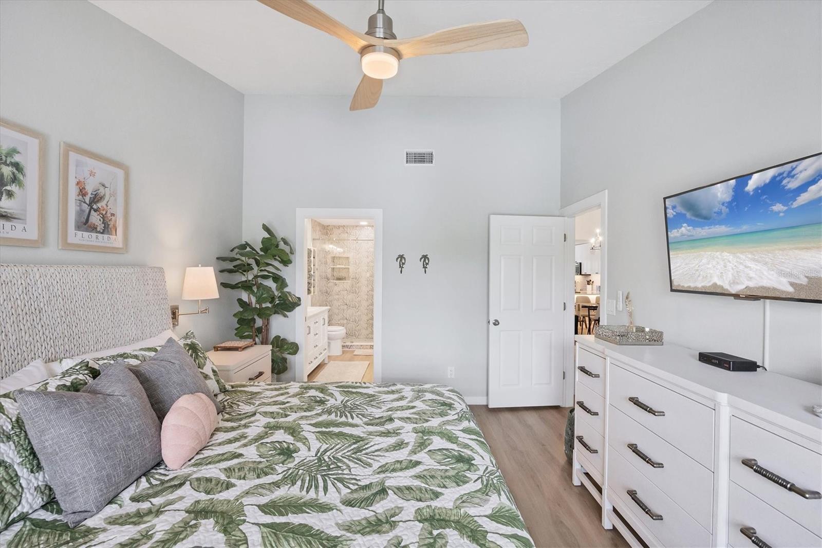 - Cathedral Ceiling(s), Ceiling Fans(s), Primary Bedroom Main Floor, Stone Counters, Thermostat, Window Treatments