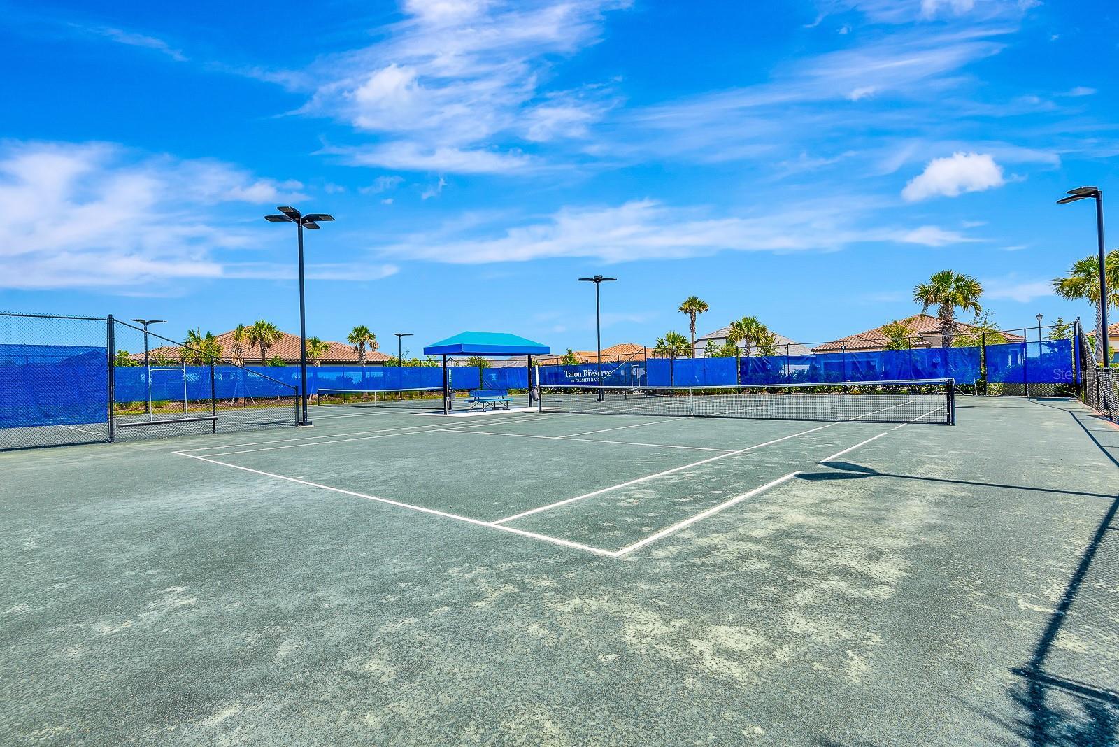 - Hurricane Shutters, Lighting, Rain Gutters, Sidewalk, Tennis Court(s)
