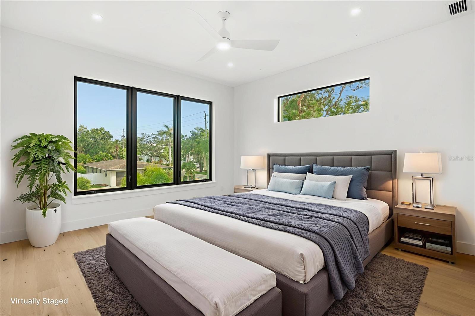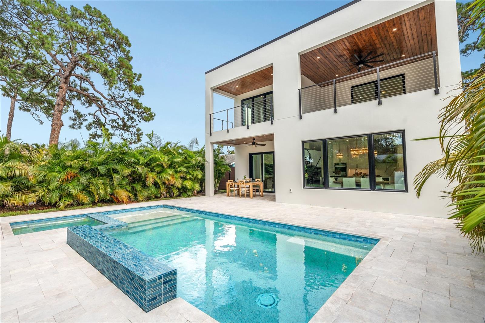 One or more photo(s) has been virtually staged. Move in Ready New Construction Contemporary Gem is now available with a fantastic location just minutes to Downtown Sarasota, Southside Village, the Barrier Islands and more! Step into refined contemporary living with this brand-new, custom-built MAKO Home. Designed for both style and comfort, this exceptional residence features four generously sized bedrooms, each with a private en-suite bath and walk-in closet with built-ins, along with two powder baths for added convenience (one on each floor). The 3 guest rooms are located upstairs with the primary suite located on the first floor and thoughtfully designed with an expansive walk-in closet that includes built-in cabinetry and shelving, a soaking tub, walk-in shower and his and hers vanity! The open-concept layout flows effortlessly into a sleek, light-filled kitchen at the rear of the home. The beautifully designed kitchen is outfitted with two-tone solid wood cabinetry, SS Appliances (Cafe/GE), soft close drawers and doors, Quartz Countertops and an oversized centerpiece island with waterfall edge! Step outside through the hurricane impact sliders and enjoy a private, resort-style setting with views of the inviting saltwater heated pool/spa and fenced in lush backyard. Upstairs, a flexible secondary living area/loft opens onto a spacious covered terrace—perfect for quiet mornings, evening gatherings, or simply soaking in the peaceful surroundings. Included in the upstairs living is a wet bar with storage and wine fridge. The home includes hurricane impact glass throughout with natural light pouring in, an epoxy finished 2-car garage and Dual laundry rooms, one on each level for added convenience. Located just East of Tamiami Trail, this home puts you in the center of it all—walkable to medical facilities, minutes from Downtown Sarasota, and just a short drive to Siesta Key’s world-renowned beaches! A remarkable residence that is well-built for your use as a primary residence, vacation home or amazing investment opportunity as the City of Sarasota allows 7-Day rentals! Every detail of this home was crafted with purpose—offering an unmatched combination of luxury, location, and livability. Reach out today to schedule a tour to see for yourself!