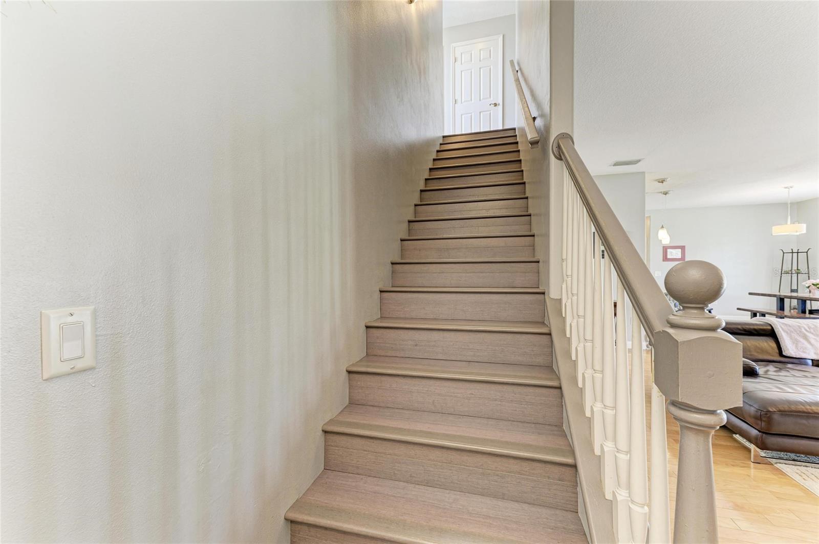 - Built-in Features, Ceiling Fans(s), Eat-in Kitchen, High Ceilings, Kitchen/Family Room Combo, Primary Bedroom Main Floor, Solid Surface Counters, Split Bedroom, Stone Counters, Thermostat, Window Treatments