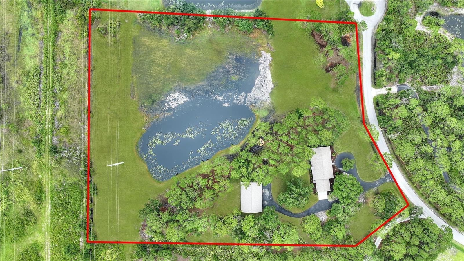 FULLY RENOVATED & UPGRADED PRIMARY RESIDENCE & IN-LAWS QUARTERS WITH GARAGE SPACE FOR UP TO 6 VEHICLES ON A 6.5 ACRE LOT! Welcome to Pine Valley Ranches, where the convenience of location meets country comfort living. Discover your private retreat in the exclusive Pine Valley community, where over 6.5 acres of natural park-like serenity await at the end of a quiet cul-de-sac. Surrounded by mature trees and tranquil views, this estate features a peaceful pond, fire pit, and expansive outdoor space ideal for entertaining, relaxing, or creating the lifestyle you've always dreamed of. This rare property includes two fully remodeled residences totaling over 5,000 sqft, both with brand-new roofs and extensive upgrades throughout. The main residence boasts 4 spacious bedrooms, 2 completely renovated bathrooms, and a brand-new gourmet eat-in kitchen with quartz countertops, a large island that seats four, brand-new designer appliances by Café, and brand-new custom cabinetry. The open-concept layout seamlessly connects to a cozy family room with a wood-burning fireplace, plus formal living and dining areas—perfect for gatherings. Enjoy all-new luxury vinyl plank (LVP) flooring, a brand-new A/C system, a brand-new tankless water heater, and a full interior renovation throughout. The attached 2-car garage and dedicated laundry room—complete with a brand new washer and dryer—add everyday convenience. Step onto the newly screened-in back porch for morning coffee, outdoor dining, or peaceful evenings under the stars. The guest house/in-law suite offers nearly 1,000 sq ft of beautifully updated space, complete with 1 bedroom, 1 full bathroom, a brand-new full kitchen with brand-new appliances, and brand-new LVP flooring—ideal for extended family, guests, or rental income. For hobbyists or car collectors, the detached 6-car garage and workshop is a dream come true, featuring brand-new epoxy flooring and plenty of space to pursue your passions. This in-laws' quarters is equipped with hurricane-rated windows and thoughtful upgrades throughout. Just minutes from a Publix grocery store, Cooper's Hawk restaurant, or Big Top Brewery, Lakewood Ranch, top-rated schools, fine dining, entertainment, Gulf Coast beaches, and I-75, it offers the best of both peaceful rural charm and modern convenience. Whether you're seeking a multi-generational property, private compound, or car enthusiast's paradise, this one-of-a-kind estate checks every box!