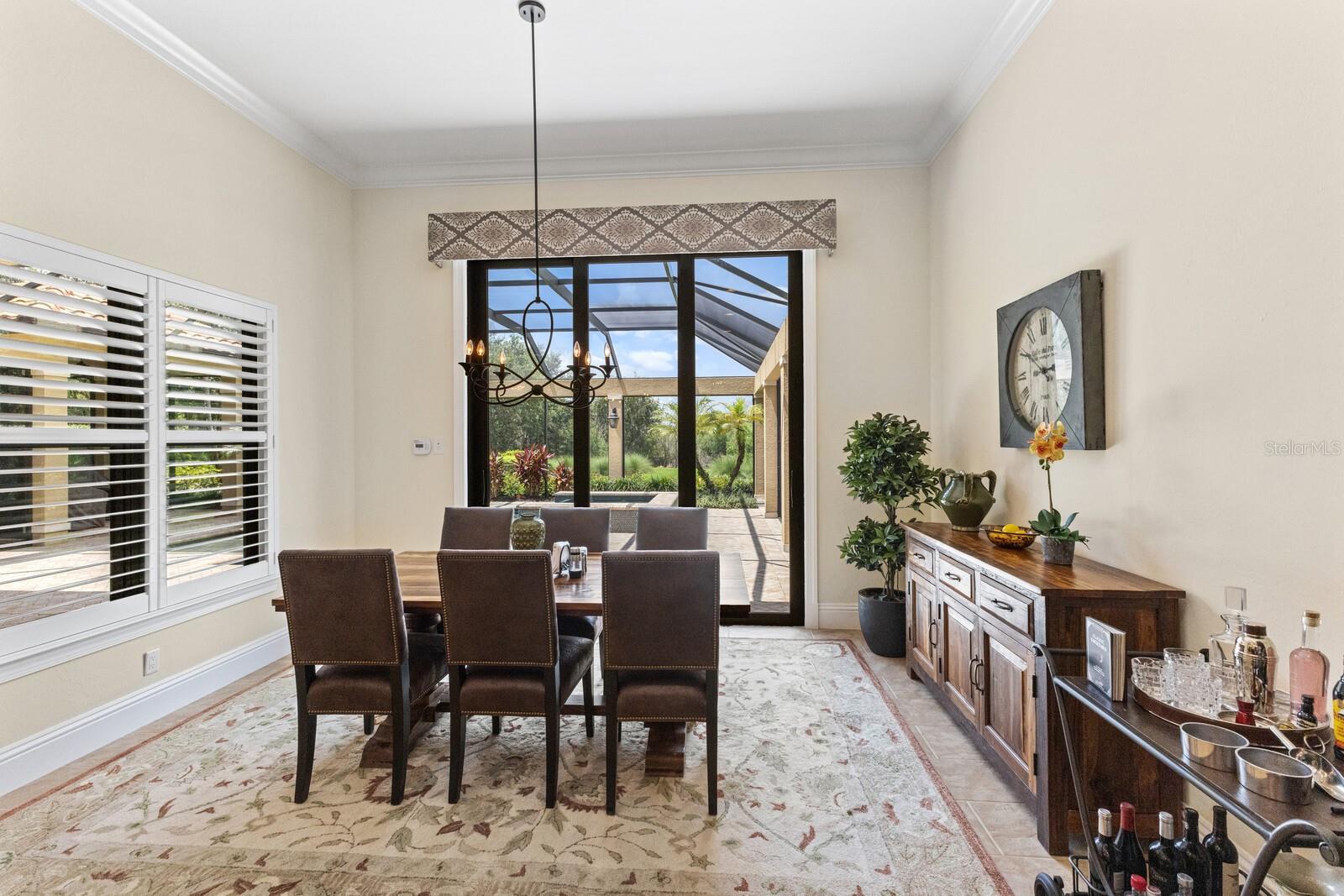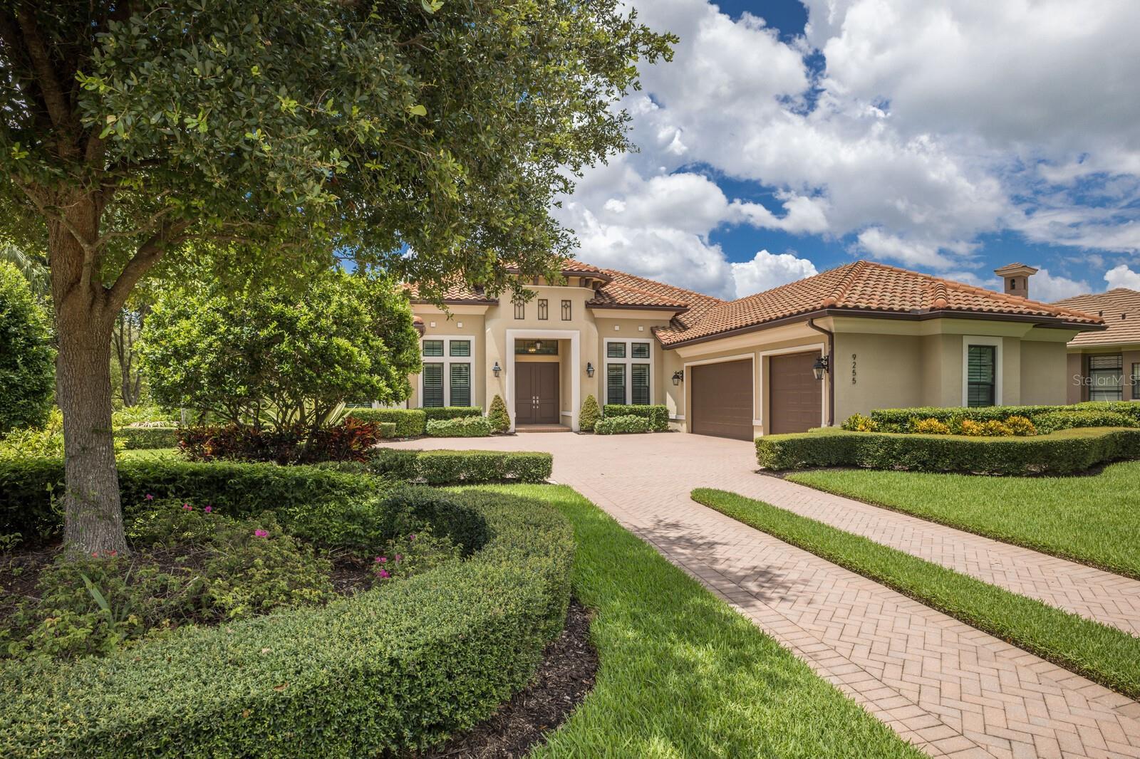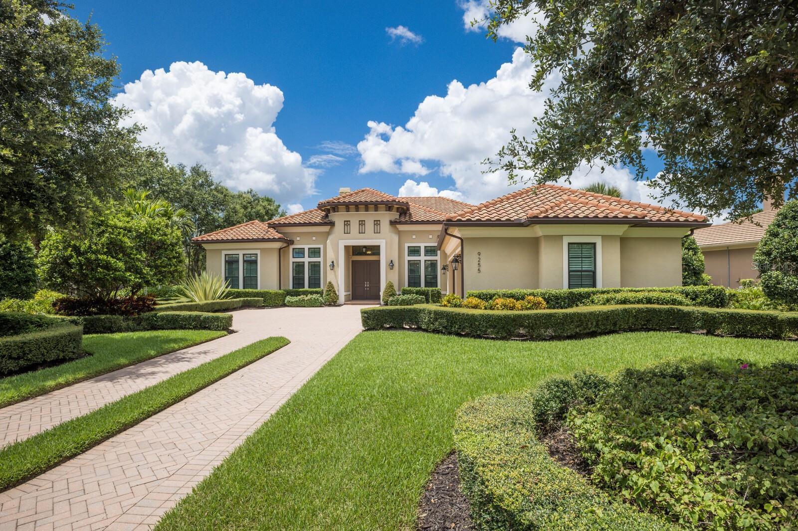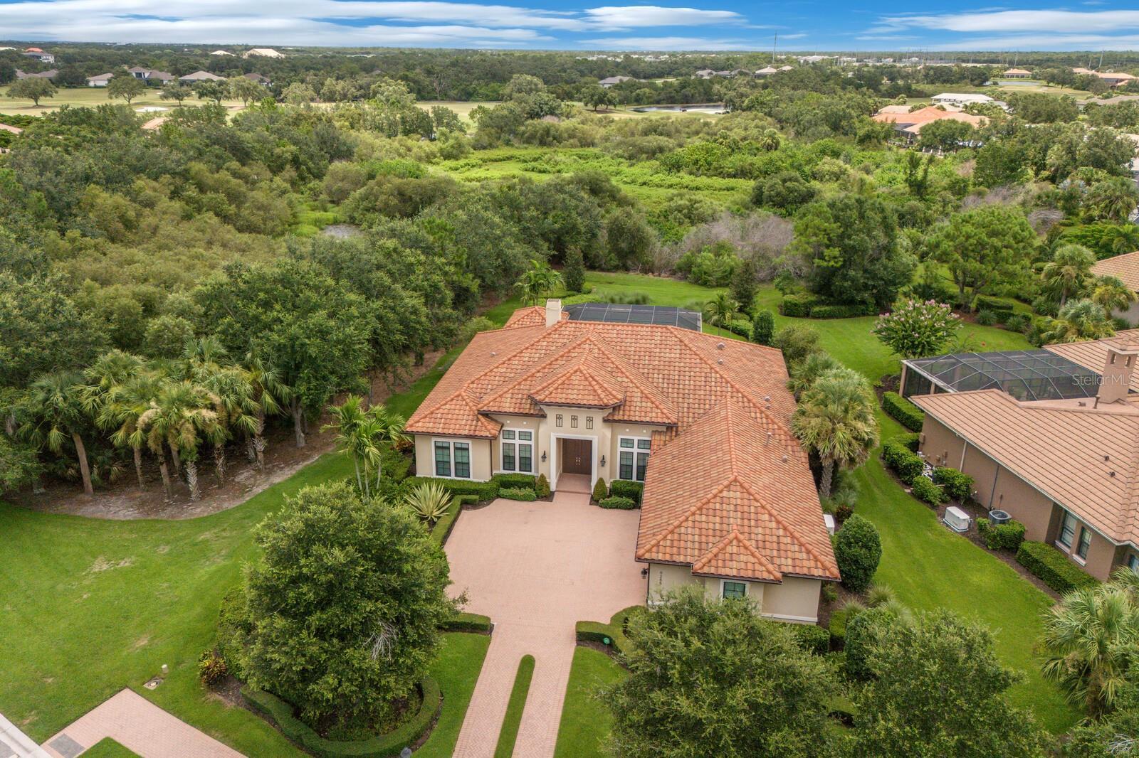 Nestled gracefully on a cul-de-sac within the prestigious Founders Club, this exceptional London Bay custom home offers a harmonious blend of sophistication and comfort. With three spacious bedrooms and three well-appointed bathrooms, the residence caters gracefully to both family and guests. Every element of this home, from its spacious rooms to its elegant finishes, was crafted by its current owner with care and attention to detail. Thoughtfully designed for those who appreciate versatility, the home boasts an inviting open floor plan. The main living area flows seamlessly into a large kitchen with high-end appliances and an adjoining eating space, perfect for gatherings and everyday living, while a separate yet inclusive dining room promises memorable evenings and special celebrations. Natural light floods the interiors through tall windows, illuminating the tasteful architectural details and accentuating the tall ceilings. Ceramic tile floors guide you through the main living spaces, while custom cabinetry and designer fixtures add a layer of sophistication. The generous primary suite features hardwood floors, dual walk-in closets and a spa-inspired bathroom with a soaking tub, walk-in shower, and twin sinks framing a makeup station providing luxurious comfort for all. Two additional guest suites are thoughtfully separated from the main suite, and from each other, ensuring a restful haven for visitors. A dedicated media room awaits for immersive entertainment experiences, and a tranquil study provides a private retreat for work or reflection. Step outside to the enclosed pool area, where a pleasant backyard unfolds beyond, offering serene views and complete privacy. The poolside is complimented by a summer kitchen as well as a separate cabana (currently boasting a firepit and comfortable couches), ideal for alfresco evenings and quiet conversations under the stars. Modern conveniences abound, including smart home features, wireless motorized window blinds and semi-sheer shades for privacy on sliding doors and large window openings, a whole-house generator for complete peace of mind, an air-conditioned garage (incorporating a Tesla charging station), and finally a rare “Florida basement” offering additional storage options. The community has just 262 home sites set around the Robert Trent Jones Jr. golf course and features a clubhouse, tennis courts, a recreation center and children’s playground, and offers an active year-round social calendar. It lies just three miles from Interstate 75, and perhaps two more to the delights of University Town Center, while downtown Sarasota and its famed beaches are only a short distance further. Experience refined living and unparalleled tranquility in The Founders Club—your extraordinary opportunity awaits.