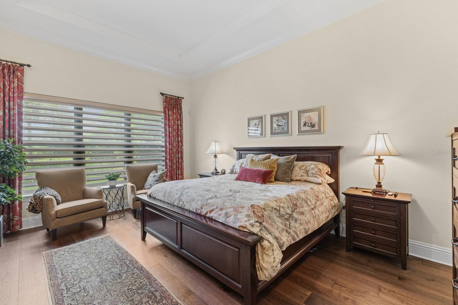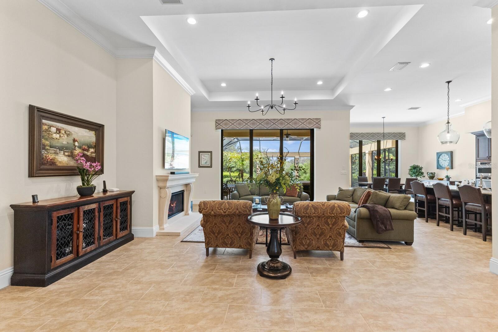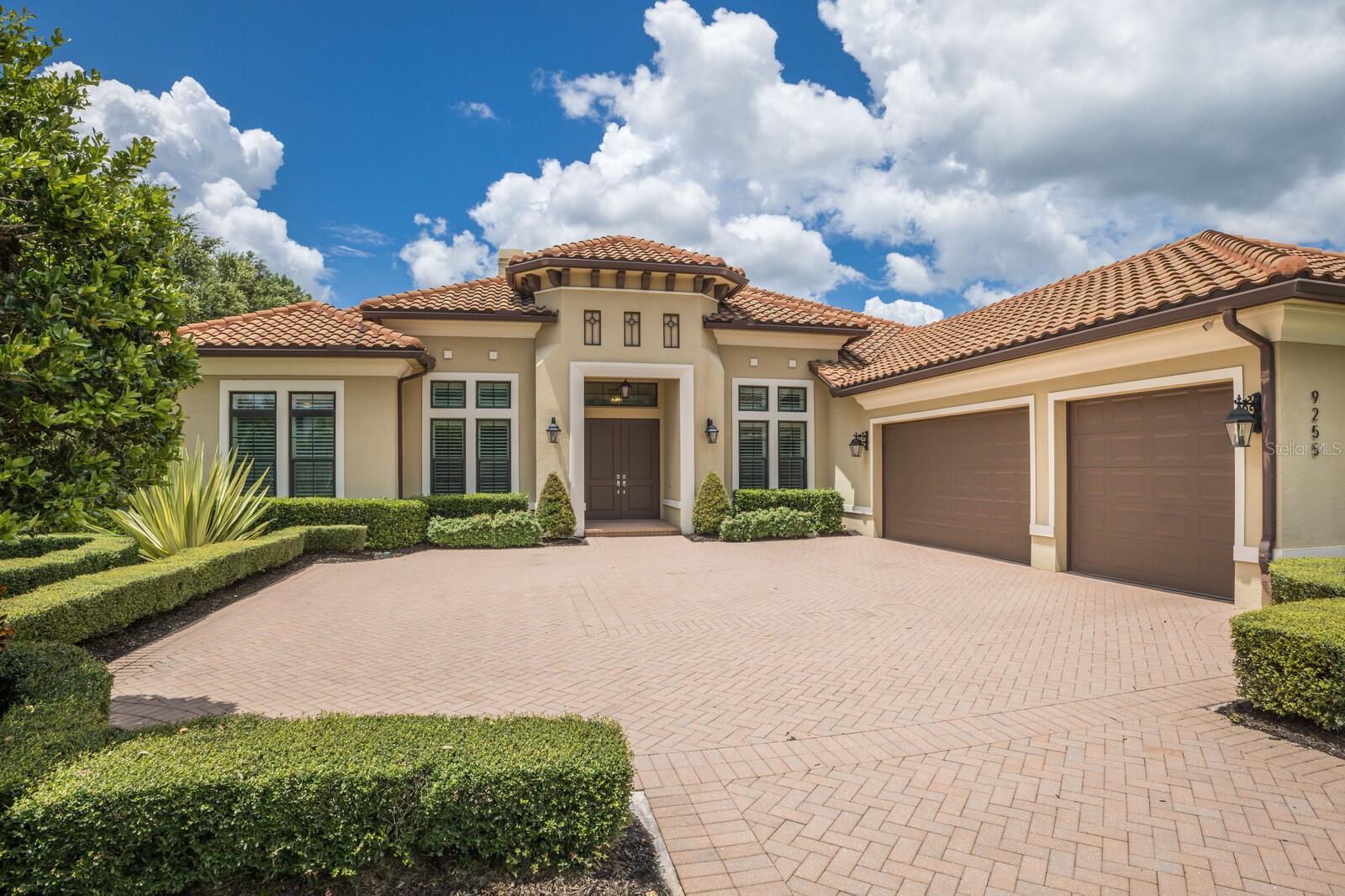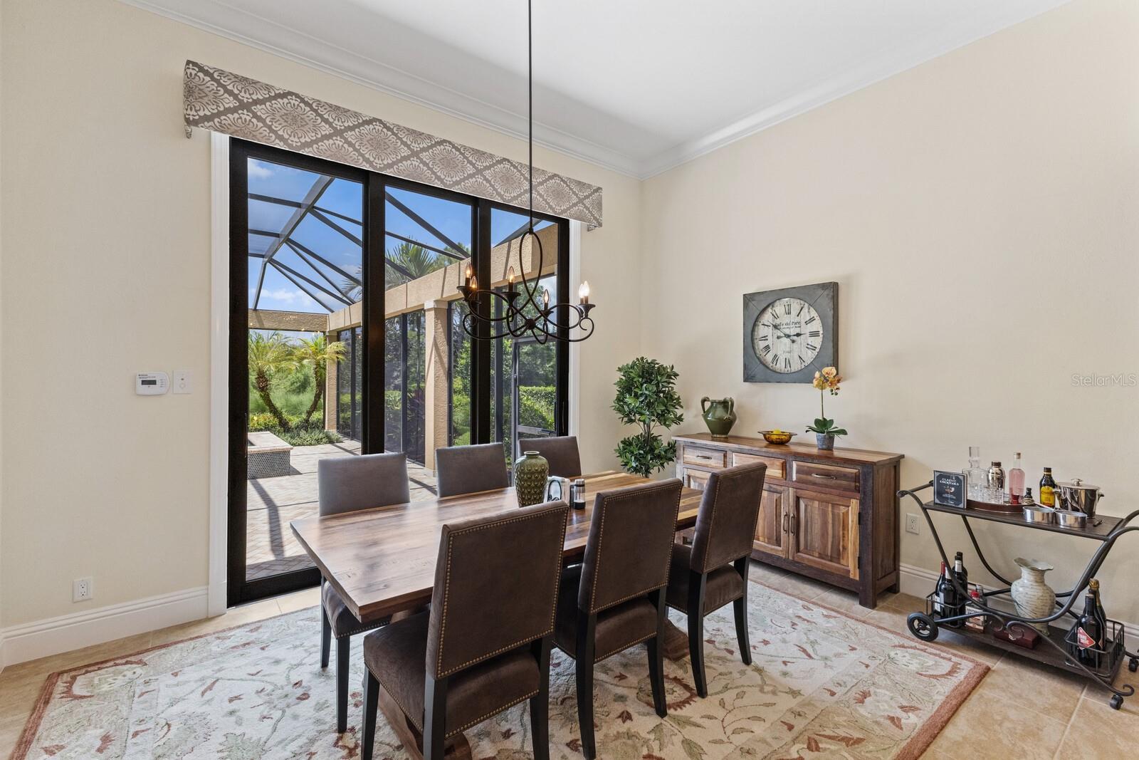 Nestled gracefully on a cul-de-sac within the prestigious Founders Club, this exceptional London Bay custom home offers a harmonious blend of sophistication and comfort. With three spacious bedrooms and three well-appointed bathrooms, the residence caters gracefully to both family and guests. Every element of this home, from its spacious rooms to its elegant finishes, was crafted by its current owner with care and attention to detail. Thoughtfully designed for those who appreciate versatility, the home boasts an inviting open floor plan. The main living area flows seamlessly into a large kitchen with high-end appliances and an adjoining eating space, perfect for gatherings and everyday living, while a separate yet inclusive dining room promises memorable evenings and special celebrations. Natural light floods the interiors through tall windows, illuminating the tasteful architectural details and accentuating the tall ceilings. Ceramic tile floors guide you through the main living spaces, while custom cabinetry and designer fixtures add a layer of sophistication. The generous primary suite features hardwood floors, dual walk-in closets and a spa-inspired bathroom with a soaking tub, walk-in shower, and twin sinks framing a makeup station providing luxurious comfort for all. Two additional guest suites are thoughtfully separated from the main suite, and from each other, ensuring a restful haven for visitors. A dedicated media room awaits for immersive entertainment experiences, and a tranquil study provides a private retreat for work or reflection. Step outside to the enclosed pool area, where a pleasant backyard unfolds beyond, offering serene views and complete privacy. The poolside is complimented by a summer kitchen as well as a separate cabana (currently boasting a firepit and comfortable couches), ideal for alfresco evenings and quiet conversations under the stars. Modern conveniences abound, including smart home features, wireless motorized window blinds and semi-sheer shades for privacy on sliding doors and large window openings, a whole-house generator for complete peace of mind, an air-conditioned garage (incorporating a Tesla charging station), and finally a rare “Florida basement” offering additional storage options. The community has just 262 home sites set around the Robert Trent Jones Jr. golf course and features a clubhouse, tennis courts, a recreation center and children’s playground, and offers an active year-round social calendar. It lies just three miles from Interstate 75, and perhaps two more to the delights of University Town Center, while downtown Sarasota and its famed beaches are only a short distance further. Experience refined living and unparalleled tranquility in The Founders Club—your extraordinary opportunity awaits.