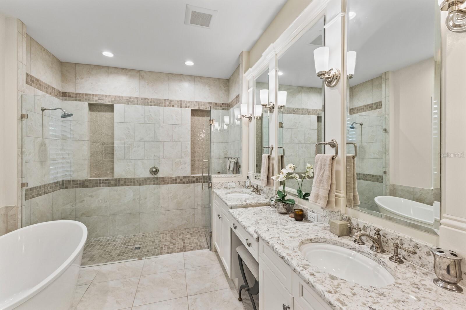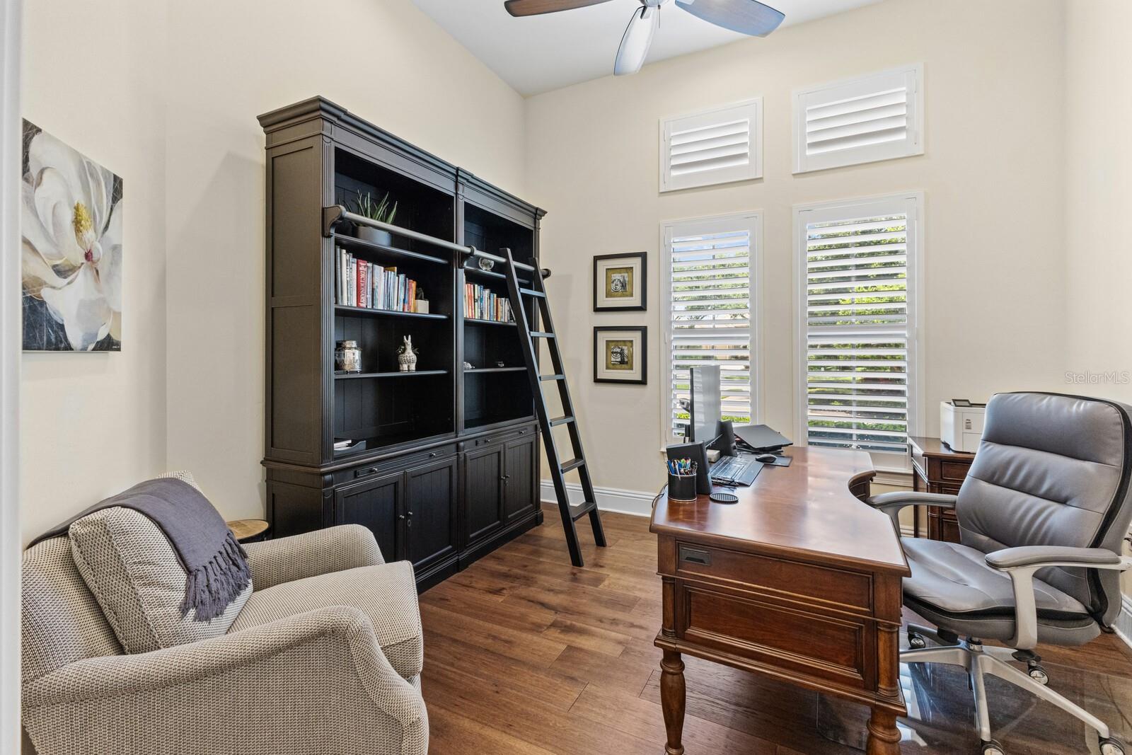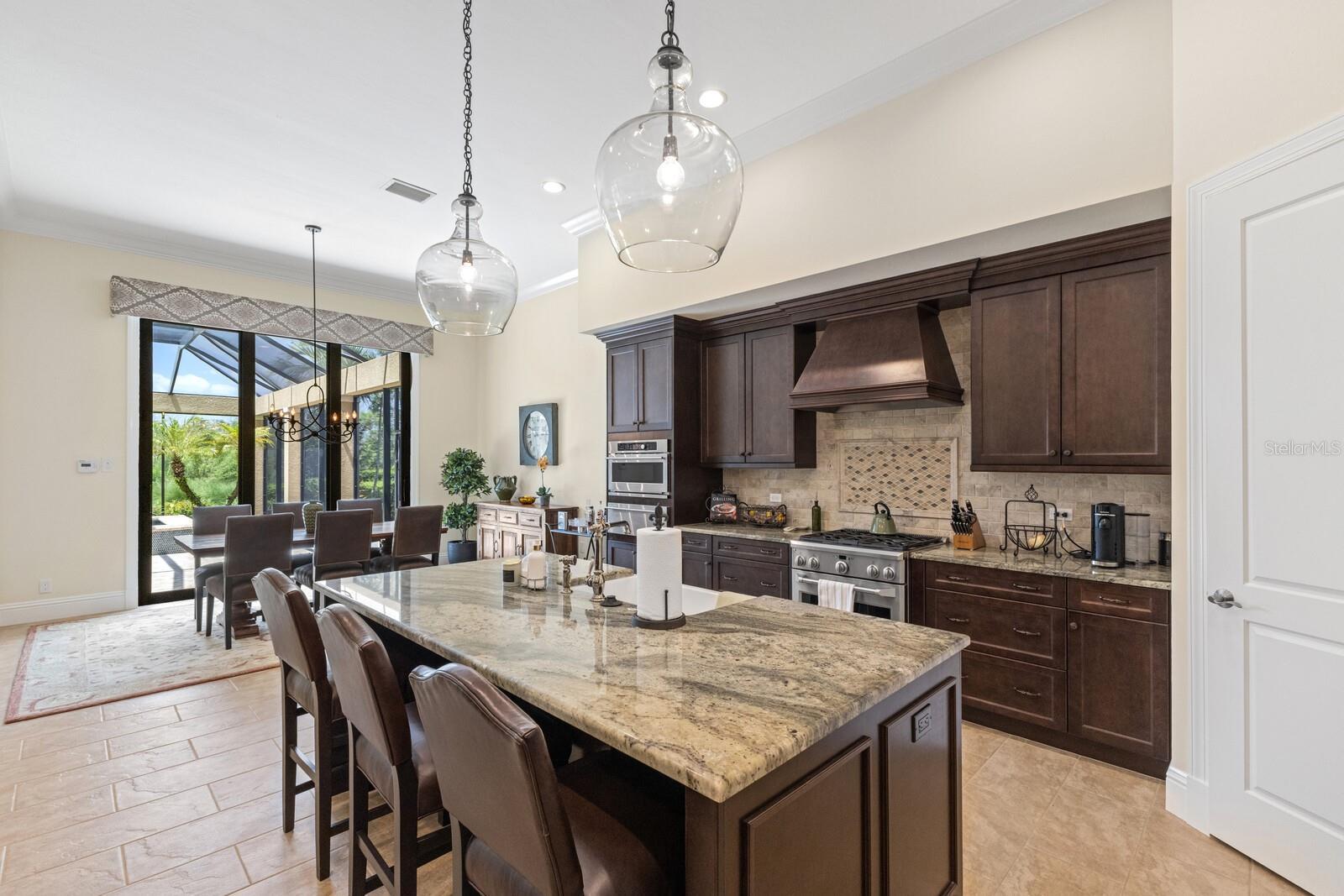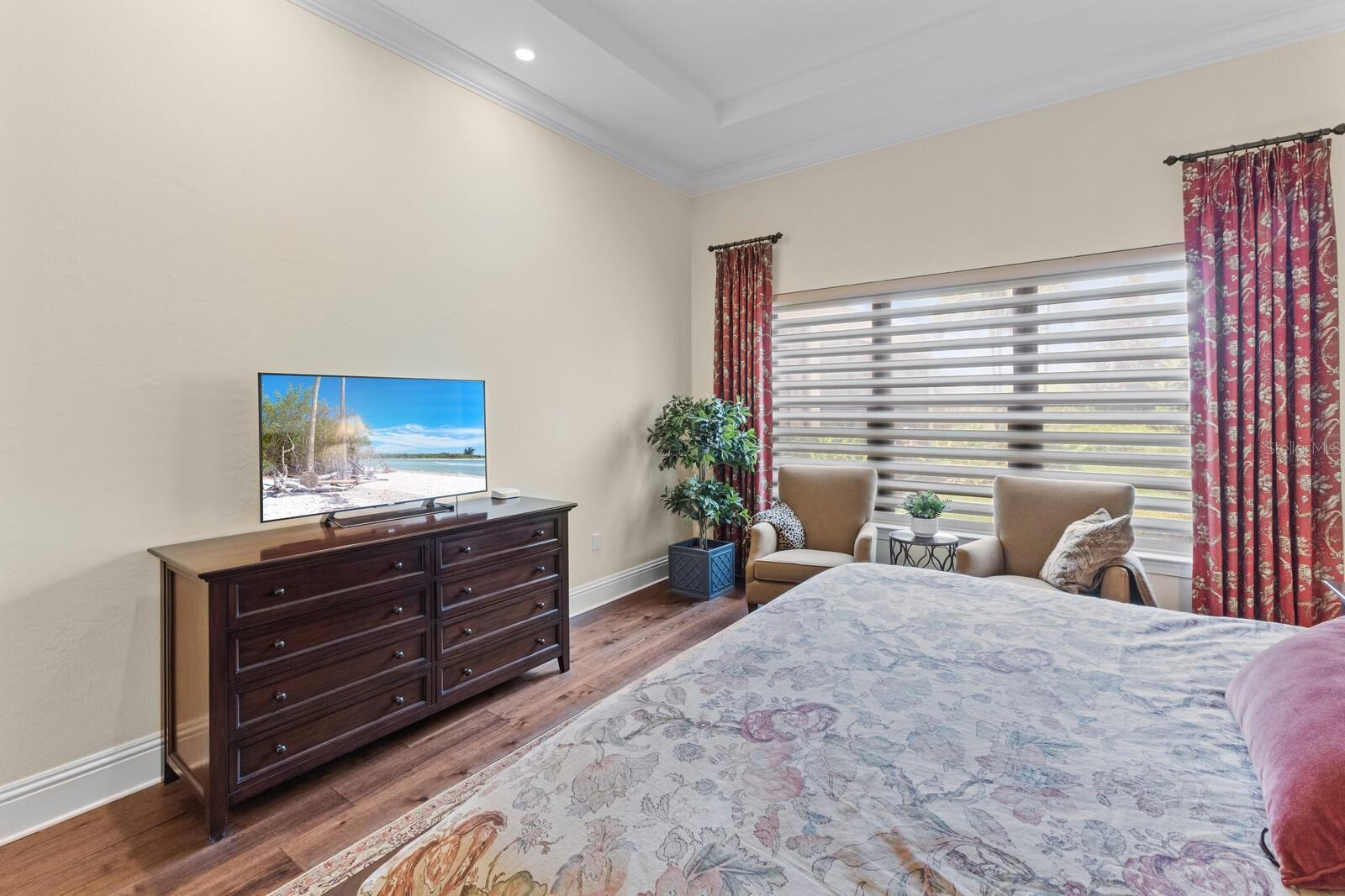 Nestled gracefully on a cul-de-sac within the prestigious Founders Club, this exceptional London Bay custom home offers a harmonious blend of sophistication and comfort. With three spacious bedrooms and three well-appointed bathrooms, the residence caters gracefully to both family and guests. Every element of this home, from its spacious rooms to its elegant finishes, was crafted by its current owner with care and attention to detail. Thoughtfully designed for those who appreciate versatility, the home boasts an inviting open floor plan. The main living area flows seamlessly into a large kitchen with high-end appliances and an adjoining eating space, perfect for gatherings and everyday living, while a separate yet inclusive dining room promises memorable evenings and special celebrations. Natural light floods the interiors through tall windows, illuminating the tasteful architectural details and accentuating the tall ceilings. Ceramic tile floors guide you through the main living spaces, while custom cabinetry and designer fixtures add a layer of sophistication. The generous primary suite features hardwood floors, dual walk-in closets and a spa-inspired bathroom with a soaking tub, walk-in shower, and twin sinks framing a makeup station providing luxurious comfort for all. Two additional guest suites are thoughtfully separated from the main suite, and from each other, ensuring a restful haven for visitors. A dedicated media room awaits for immersive entertainment experiences, and a tranquil study provides a private retreat for work or reflection. Step outside to the enclosed pool area, where a pleasant backyard unfolds beyond, offering serene views and complete privacy. The poolside is complimented by a summer kitchen as well as a separate cabana (currently boasting a firepit and comfortable couches), ideal for alfresco evenings and quiet conversations under the stars. Modern conveniences abound, including smart home features, wireless motorized window blinds and semi-sheer shades for privacy on sliding doors and large window openings, a whole-house generator for complete peace of mind, an air-conditioned garage (incorporating a Tesla charging station), and finally a rare “Florida basement” offering additional storage options. The community has just 262 home sites set around the Robert Trent Jones Jr. golf course and features a clubhouse, tennis courts, a recreation center and children’s playground, and offers an active year-round social calendar. It lies just three miles from Interstate 75, and perhaps two more to the delights of University Town Center, while downtown Sarasota and its famed beaches are only a short distance further. Experience refined living and unparalleled tranquility in The Founders Club—your extraordinary opportunity awaits.