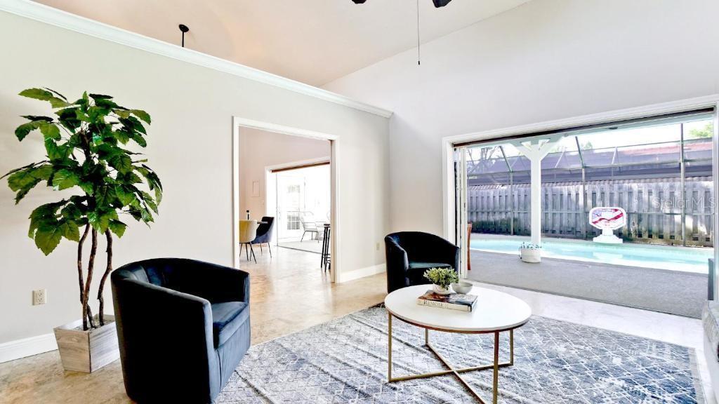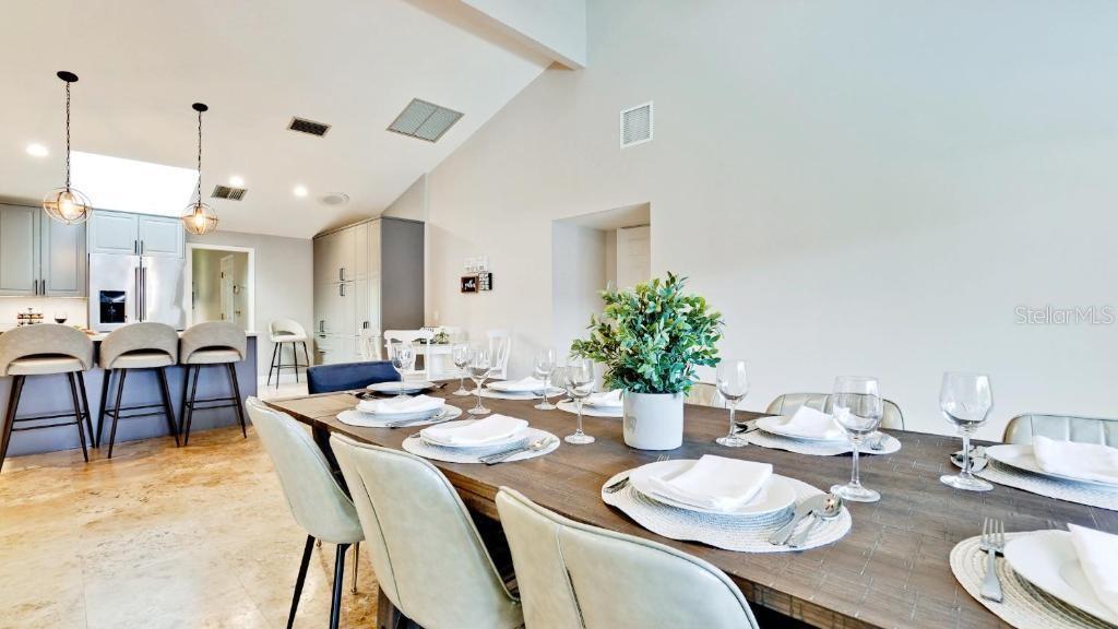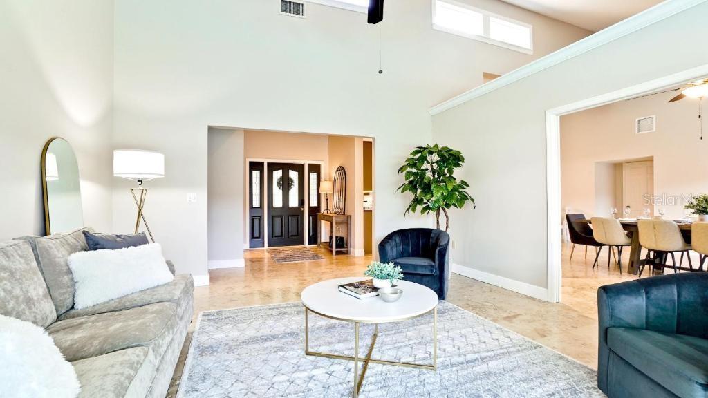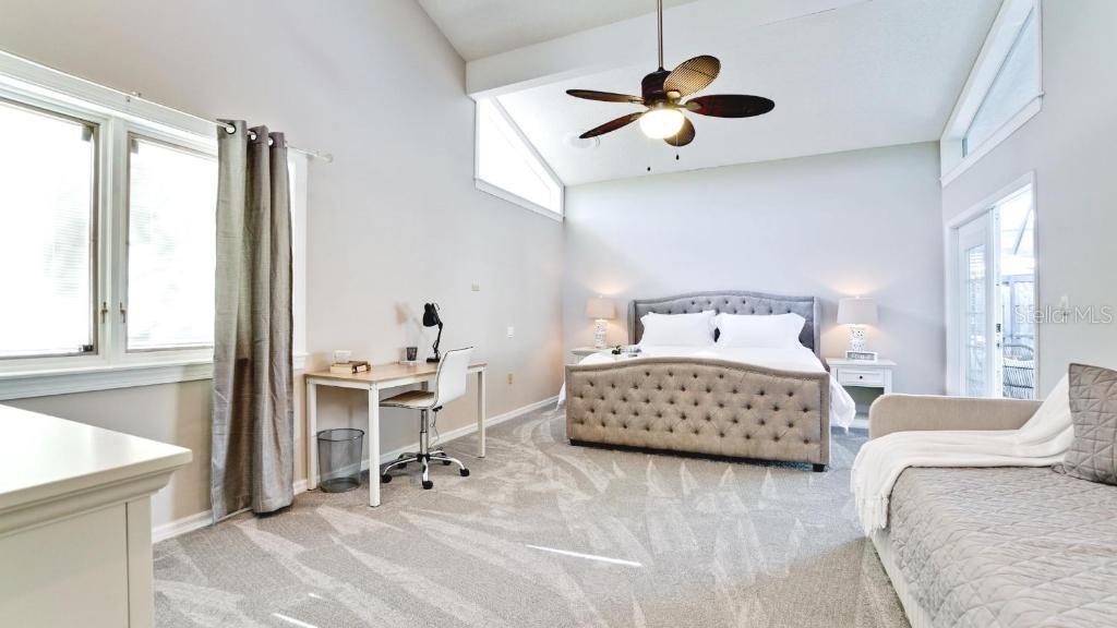 - Built-in Features, Ceiling Fans(s), Dry Bar, Eat-in Kitchen, High Ceilings, Open Floorplan, Primary Bedroom Main Floor, Solid Surface Counters, Split Bedroom, Vaulted Ceiling(s), Walk-In Closet(s), Window Treatments