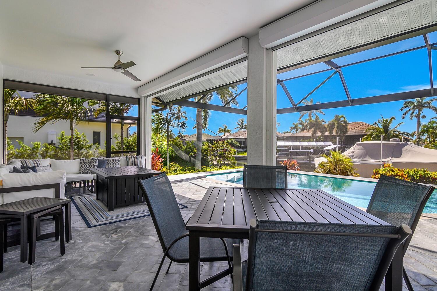 "UNIQUE OPPORTUNITY" This is more than just a home, it's an invitation to experience the ultimate island lifestyle in a thriving, upscale neighborhood. This water front home located on an oversized lot in the impressive Tigertail neighborhood on Marco Island is deep water direct that allows for a larger vessel. Where you can walk, bike or boat to one of our fine shops and restaurants. This elegant home offers a neutral pallet with 3 bedroom 2 baths including an office. Enjoy spacious open split floor plan with high ceilings, large rooms including a family room, sitting room, dining room, breakfast nook, large stone island, fully equipped kitchen, and bahama shutters. The primary suite offers tray ceilings, large stone shower, two closets and two vanities. The back of the house is a wall of windows that overlook the salt water lap pool with panoramic screen. The spacious pool deck is ready for entertaining with a firepit table, sectional and dining table. You can lounge on the deck below alongside the dock with two boat slips. Very well maintained property. The flat tile roof and stylish pavers adorn the driveway that take you to the large garage with ample storage, high ceilings, 3 bays with an epoxy floor. Professionally decorated, lush landscape, hurricane roll downs, generator on a transfer switch, security system and offered turn key. A fantastic opportunity! A ready made island lifestyle in a neighborhood with new elegant modern estate homes. Marco Island is an active lifestyle. Famous for our crescent beach with sugar sand, easy boating, great golf, tennis, cuisine from around the world and the best sunsets on the planet. This truly is the "ULTIMATE PACKAGE".