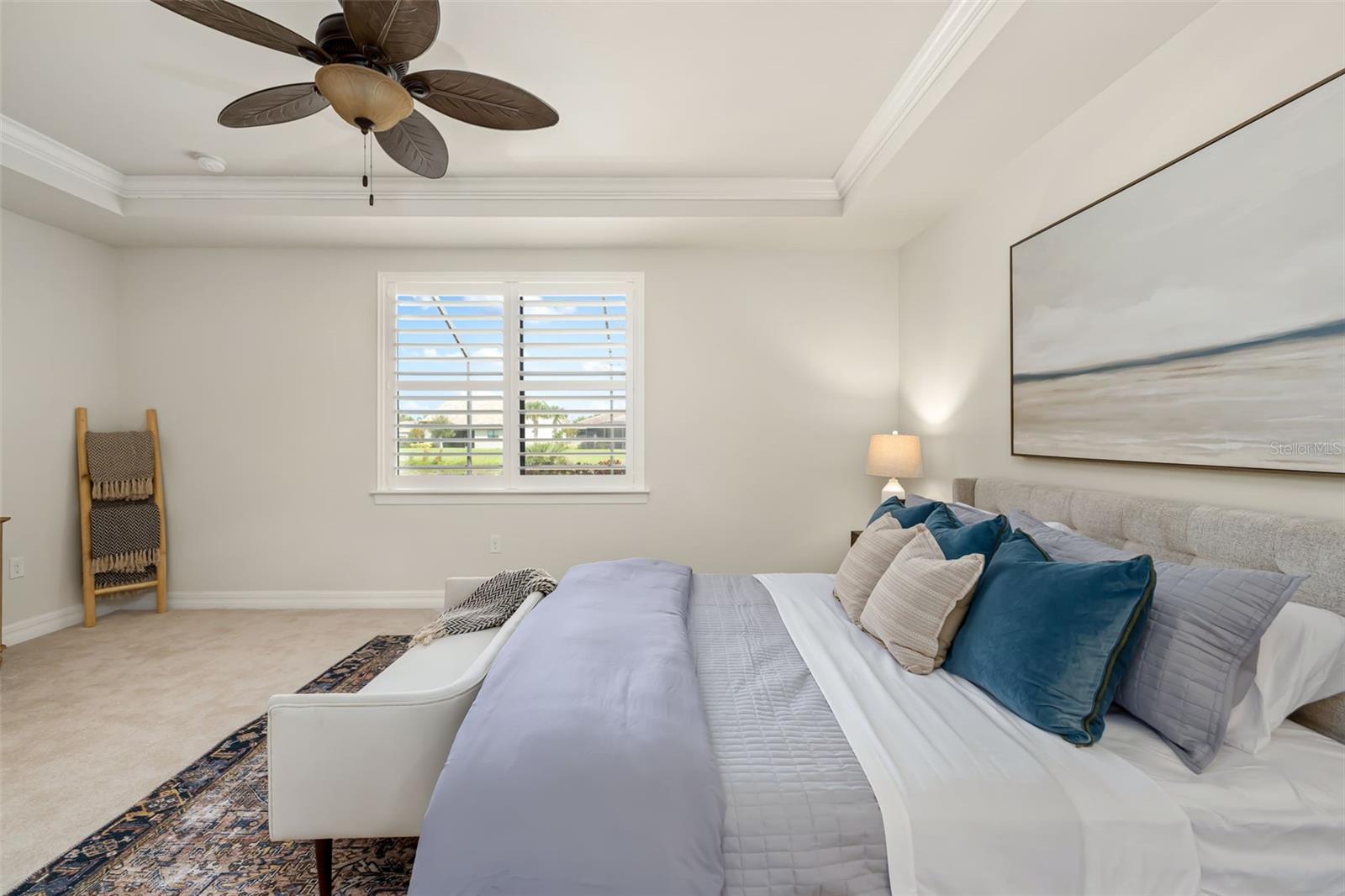 - Ceiling Fans(s), Coffered Ceiling(s), High Ceilings, Kitchen/Family Room Combo, Open Floorplan, Primary Bedroom Main Floor, Solid Surface Counters, Split Bedroom, Tray Ceiling(s), Walk-In Closet(s), Window Treatments