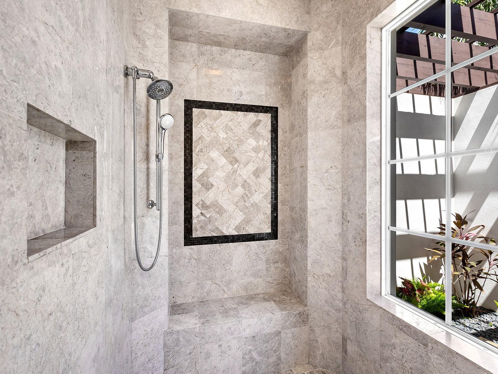 - Courtyard, French Doors, Lighting, Outdoor Grill, Outdoor Kitchen, Private Mailbox, Rain Gutters, Shade Shutter(s), Sidewalk, Sliding Doors