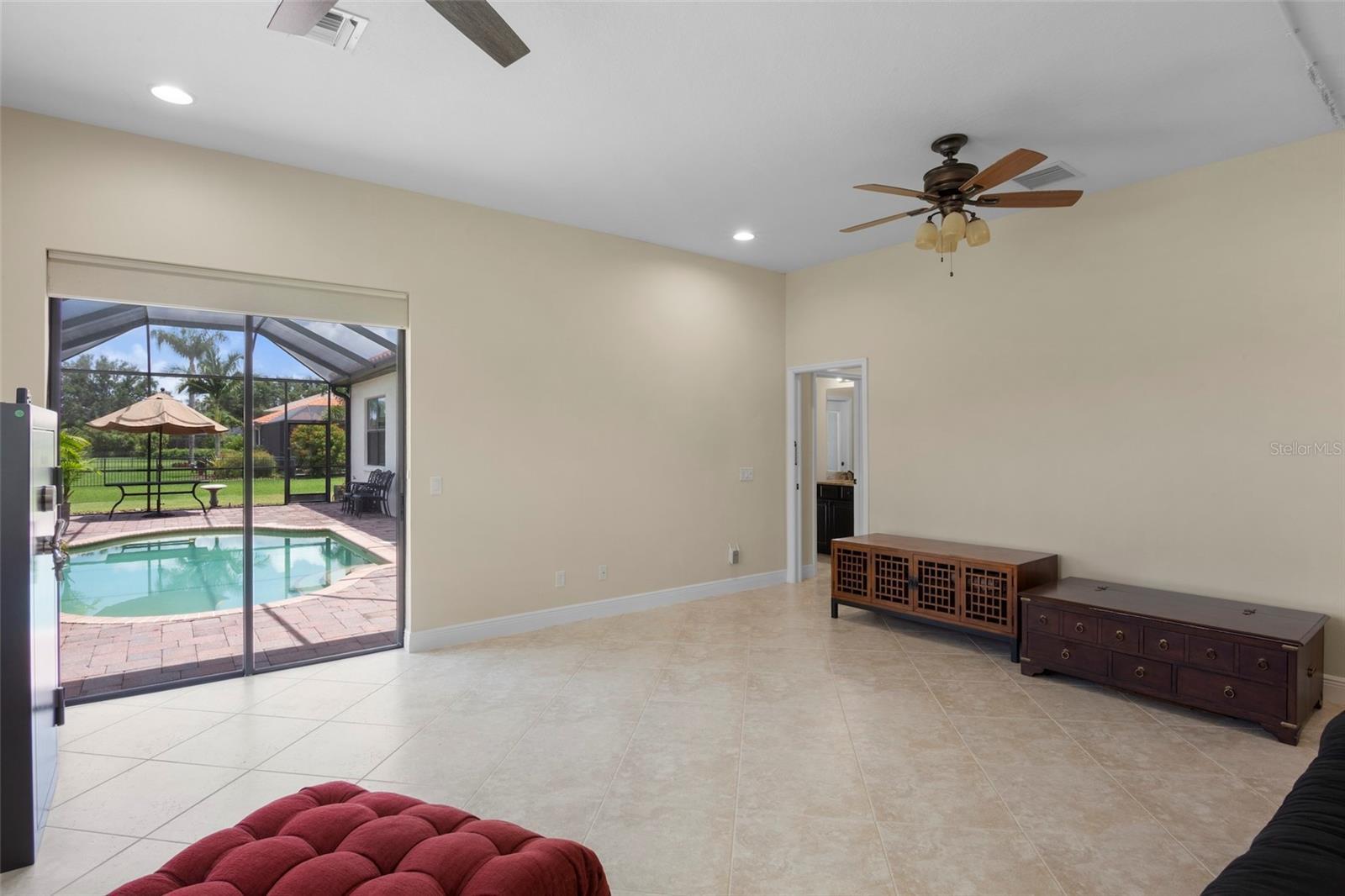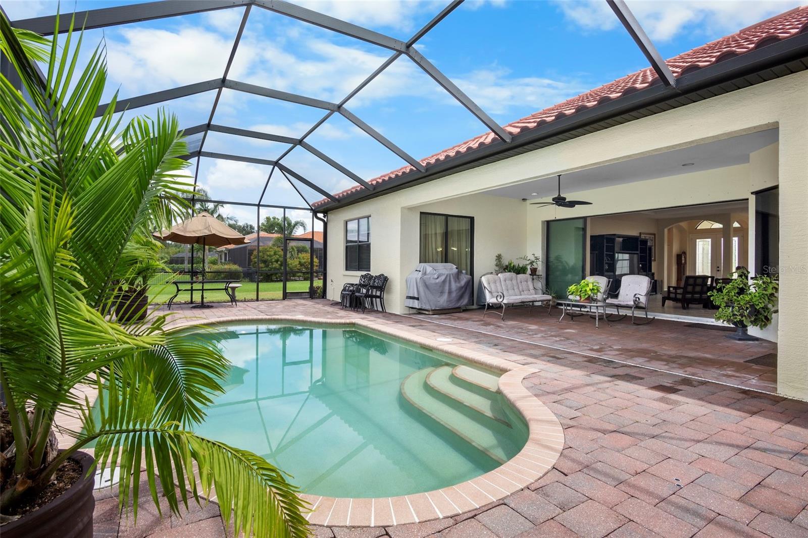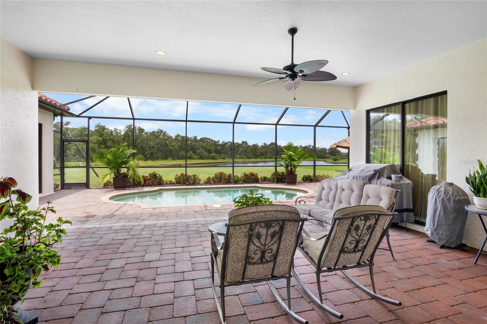 Beautiful home located in the highly sought after neighborhood of Twin Rivers. If you are looking for a large home with plenty of greenspace, look no further. This home has over 3400 square feet and sits on an acre of land. This is a rare find in Parrish. This home has 3 bedrooms, 3 baths with an office, playroom, AND a 19x17 bonus room. The playroom/bonus room area could be used as an in-law suite, place for all of your kids toys or for entertaining large get togethers. The uses are endless! The moment you walk through the front door, you will be amazed by the 11-foot ceilings in the great room and the view out the triple pocket slider. The gourmet kitchen overlooks the great room, which leads to the patio and pool area. The large patio has brick pavers and a saltwater pool with an electric heater. The views on the patio overlook the beautiful pond and preserve area. The large preserve offers complete privacy and there will never be any future development. At night, the sunsets over the pond are breathtaking! This homesite is large enough to accommodate a dream workshop or in-law suite. This home also has a 4-car garage, tile roof and a brick paver driveway. Twin Rivers has a boat ramp that you can launch a small boat or kayak from and docks for fishing. You will not want to miss this home and the lovely amenities that Twin Rivers has to offer!