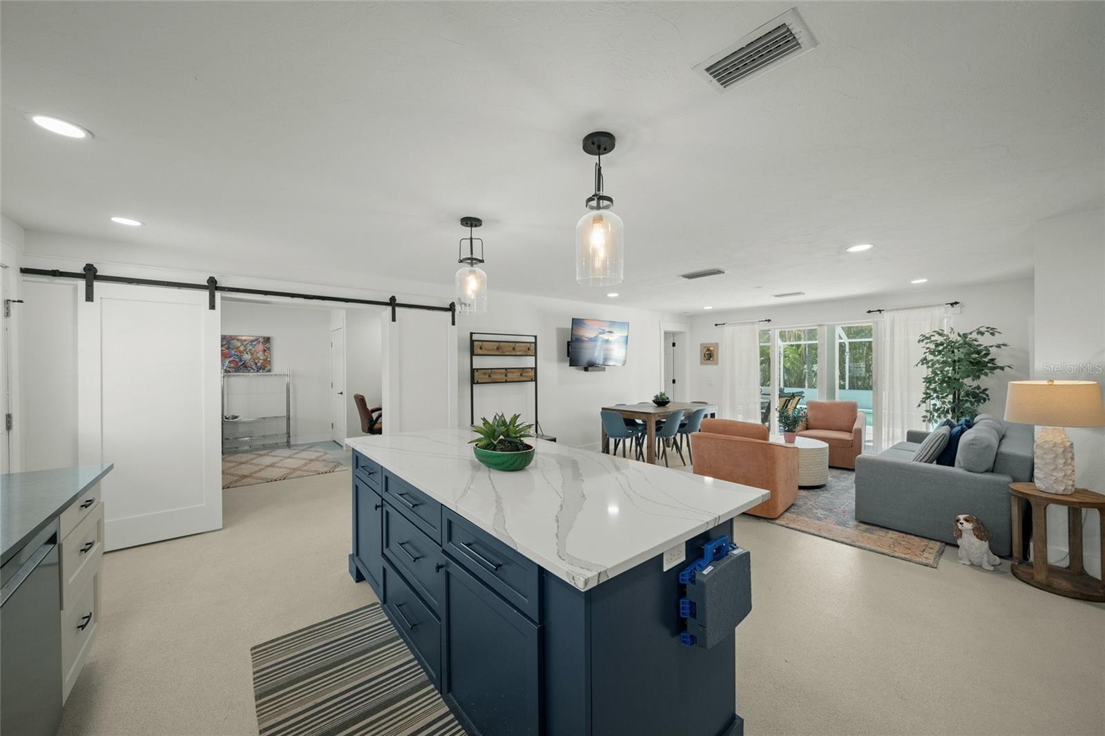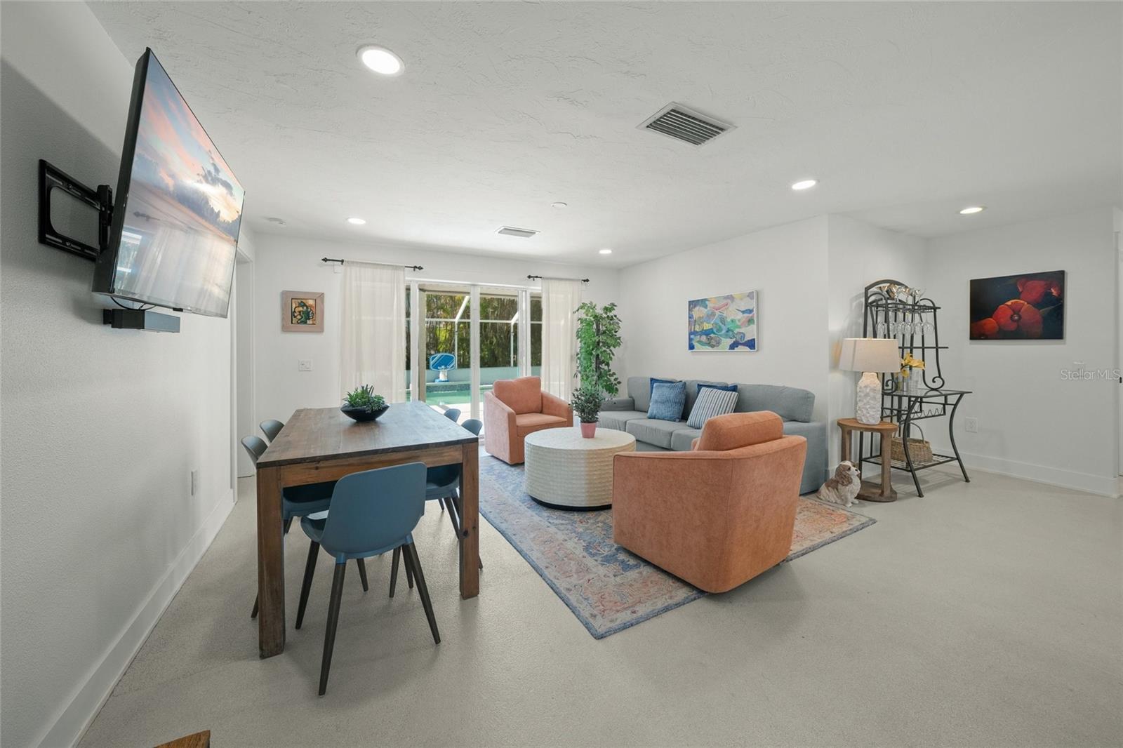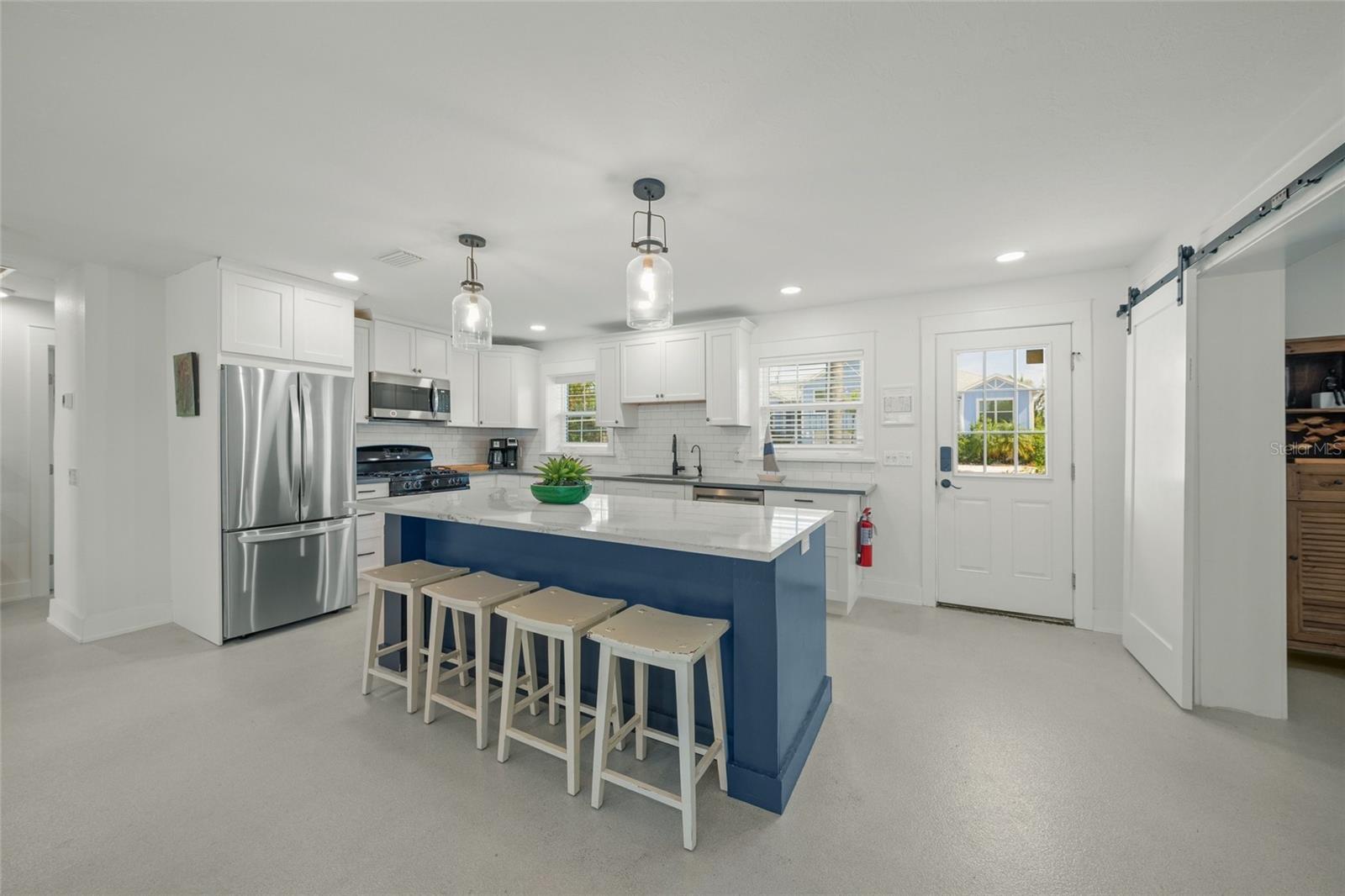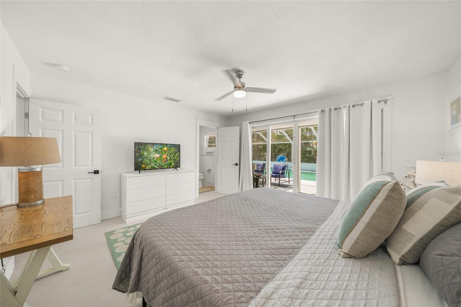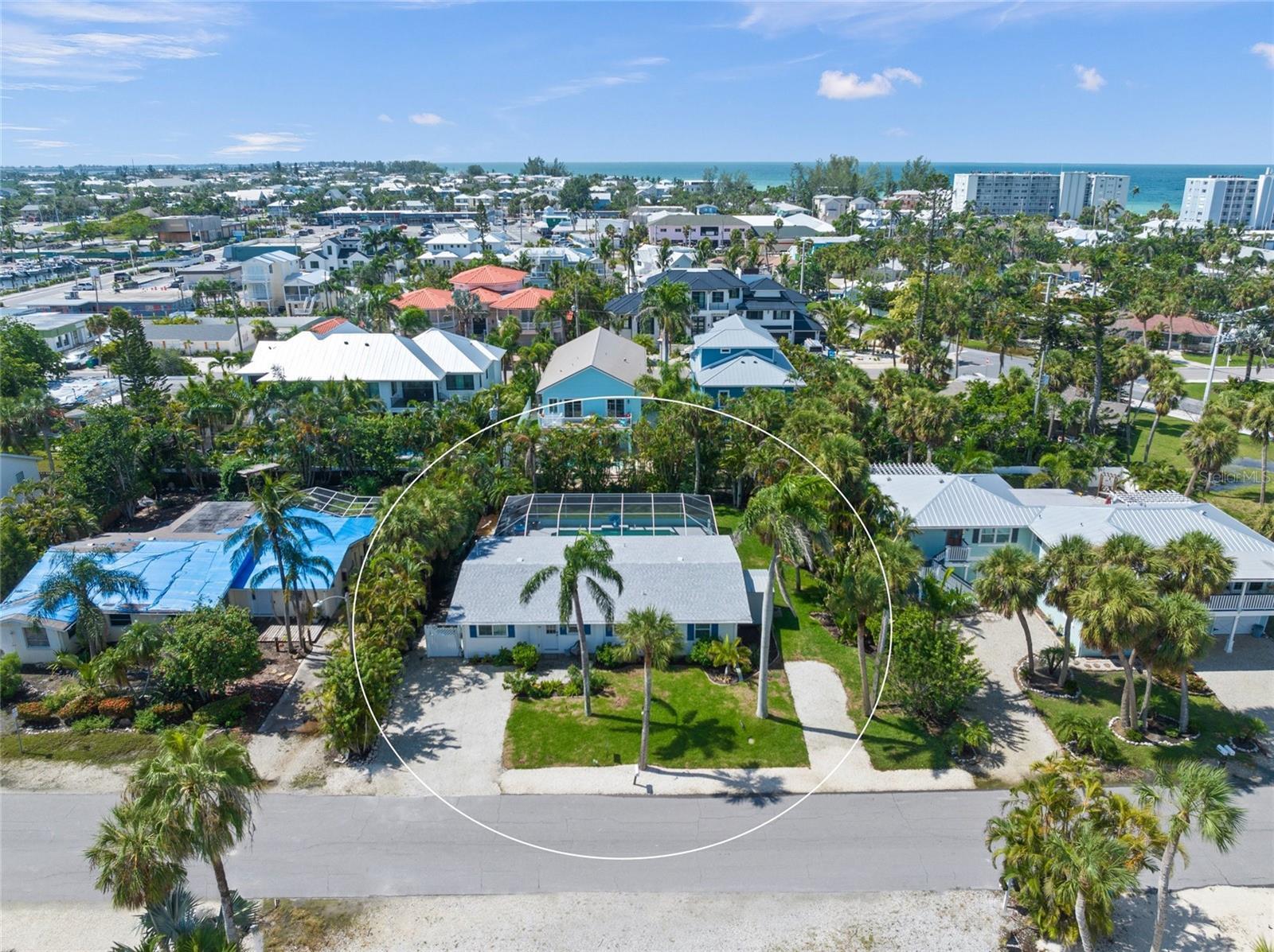 Coastal elegance meets modern living in this beautifully updated Holmes Beach retreat located on the peaceful stretch of 57th Street—one of the narrowest parts of Anna Maria Island. This prime location offers the least crowded beach access on the island, just steps from the shoreline. The home features sun-drenched interiors, thoughtfully designed living spaces, and a lush backyard ideal for both entertaining and relaxing. Recent upgrades include a refurbished large, heated pool completed in 2024 with a new pool heater, plus pool and AC equipment elevated seven feet above sea level for added peace of mind. Saltwater-resistant terrazzo flooring and moisture-proof six-inch plastic baseboards are tailored to beachside living. A secure eight-by-ten shed with keyless entry adds convenient outdoor storage. Smart home features include Wi-Fi control of the thermostat, sprinkler system, pool pump and temperature monitor, and security cameras, including one with 360-degree remote view. A 5G wireless router keeps the home connected for just $30 per month, eliminating the need for cable. Additional property highlights include a whole-home water softener, reverse osmosis water filtration for the kitchen spigot and ice maker, three TVs, a sound bar with subwoofer and Bluetooth connectivity, and all-new furniture and appliances purchased in 2024, including the washer, refrigerator, and stove. Beach essentials such as a bike, buggy cooler, eight beach chairs, and several umbrellas are included. Outdoor amenities include a weatherproof aluminum ping pong table, screened lanai (new in 2022), and stylish lanai furniture. The property also includes reinforced door panels designed to make the home watertight up to 32 inches above ground level (5.5 feet above sea level). Located within walking distance to restaurants, boutiques, a seafood and specialty grocery market, clothing shops, hardware stores, and multiple ice cream shops. This home also offers nearby access to lighted tennis courts, pickleball, basketball, baseball fields, and two dog parks. This meticulously maintained property offers exceptional versatility and comfort in one of the most coveted locations on Anna Maria Island.