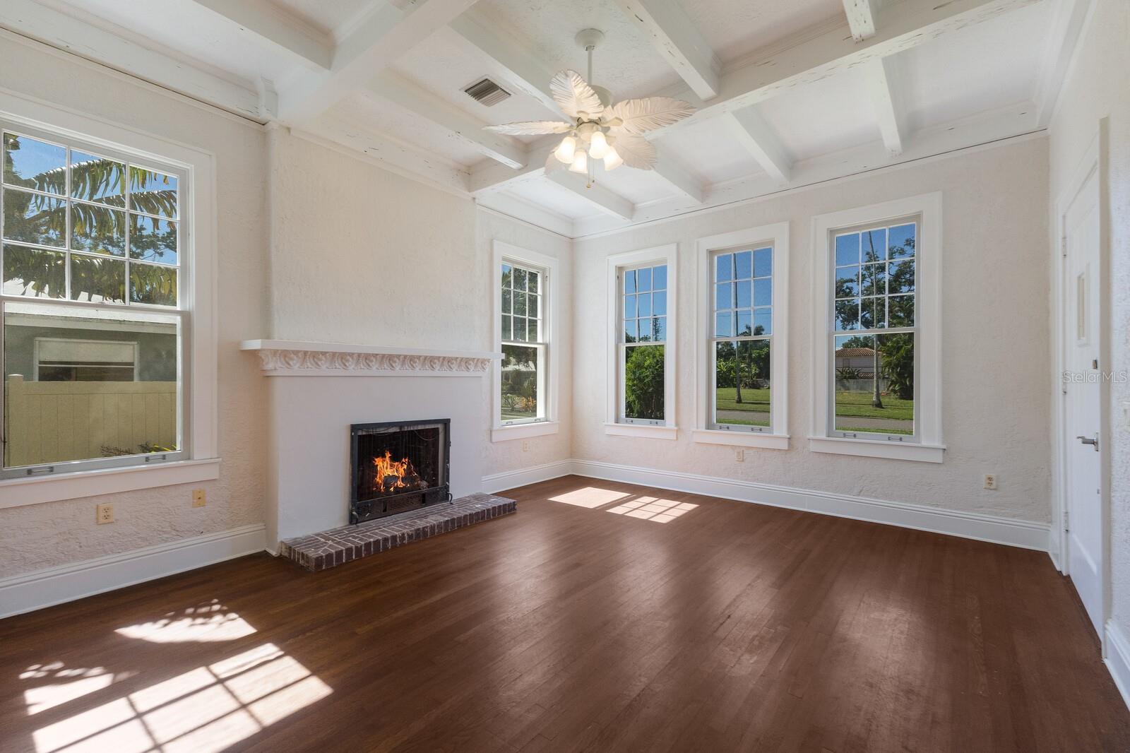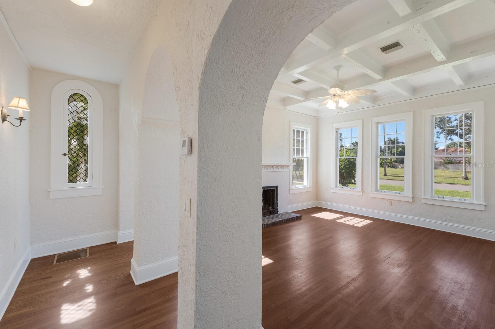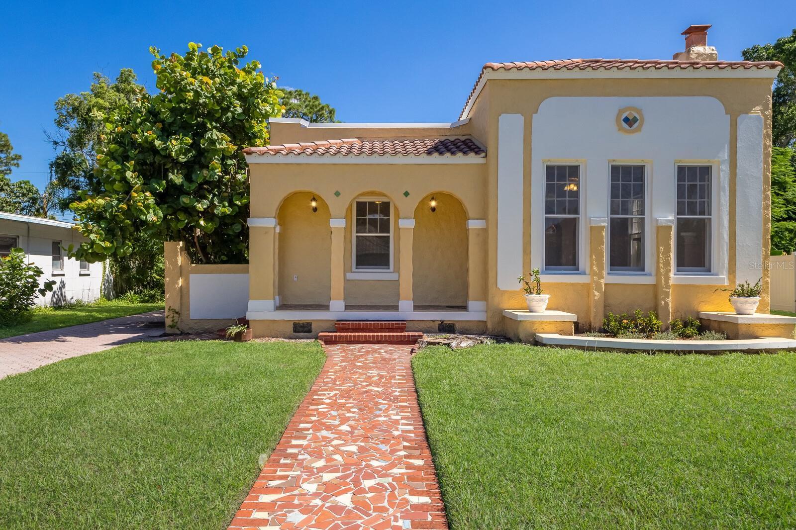 Step into timeless elegance with this stunning 3-bedroom, 2-bath Spanish Eclectic bungalow nestled in the heart of sought after Sapphire Shores. Rich in character and historic detail, this residence showcases dramatic architectural elements including beamed and coffered ceilings, gleaming oak floors throughout, and expansive windows that bathe every room in natural light. The spacious “sunken” living room centers around a show-stopping, decoratively carved mantelpiece, perfectly blending artistry with old-world charm. Each space offers a unique sense of craftmanship, from graceful arches to finely detailed trim, evoking romance and warmth of classic Mediterranean design. The current owner has elevated this home with a seamless addition: a stunning primary suite with a vaulted ceiling, French doors leading to a private back yard and a walk-in closet. Other “modern” updates include a spacious kitchen with and island and adjacent dinette, interior laundry and a 2-car garage accessed by a covered walkway; a loggia in keeping with the traditional nature of this architecture. Located just steps away from Sun Circle Park, Sarasota Bay, the Ringling Museum and the vibrant arts scene, this home is ideal for those seeking history, charm and convenience in one of Sarasota’s most beloved neighborhoods. Sapphire Shores in an eclectic waterfront neighborhood dating back to the Ringling Era and is now a combination of historic Mediterranean mansions, classic ranches and new construction. Live here amidst Sarasota's most significant cultural & educational institutions and you're only 2 miles north of downtown Sarasota, a 12-minute drive to St. Armands Circle and the beaches of Lido and Longboat Key and an equal distance to University Parkway anchored on the west by SRQ International Airport and UTC Mall and I75 on the east.