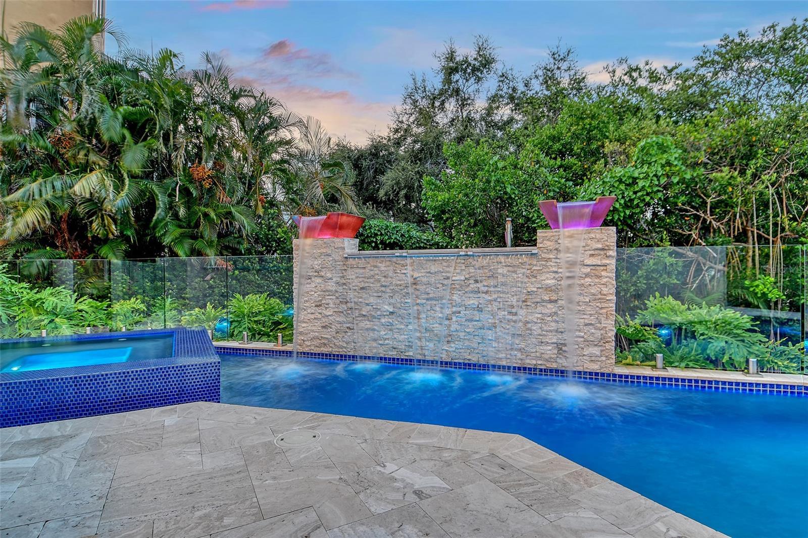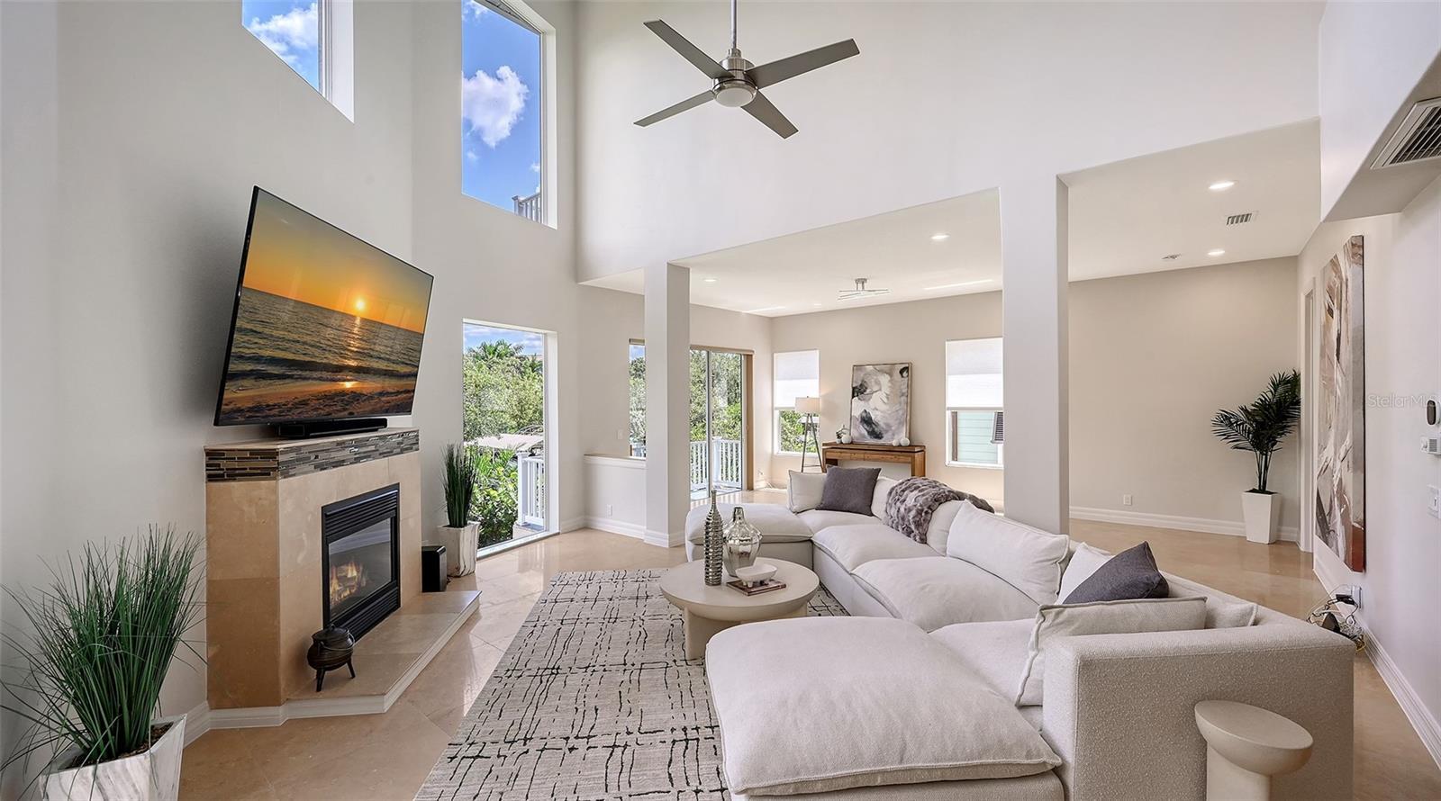 Welcome to an exceptional canal-front coastal residence blending luxury, functionality, and direct boating access. This custom single-family home features 3 bedrooms, all with ensuite baths and walk-in closets, a dedicated office, and a loft ideal for a second office or flex space. Outdoor living is elevated with a heated saltwater pool and spa, and METAL ROOF, and a 7,000 lb boat lift (max 26 ft capacity) with direct access to the Gulf of Mexico. All living spaces and HVAC systems begin on the second level, enhancing comfort and protection in a coastal setting. An interior elevator provides ease of access for daily living and furnishings. A rare 5-car air-conditioned garage offers ample space for car enthusiasts, a workshop, gym, or storage. The gourmet kitchen is equipped with Thermador stainless appliances, including two dishwashers, wall-mounted oven and microwave, a 6-burner gas range with second oven, prep sink, walk-in pantry, granite countertops, aquarium glass window, glass open-frame cabinetry, island with storage, breakfast bar, and under/upper cabinet lighting. Interior highlights include travertine and engineered hardwood flooring, a custom wine room with display window and built-in ladder, floor-to-ceiling windows, elevated ceilings, fireplace, wet bar, built-ins, upgraded LED lighting, and a 4th-floor observation room with panoramic views of Sarasota Bay and downtown Sarasota. Exterior features include a heated saltwater pool with spa, waterfall stone accent wall, iridescent glass mosaic tiles, sandblasted marble decking, glass pool fencing, landscape lighting, sprinkler system, and an updated dock with 7,000 lb lift (22–26 ft capacity), new motor, updated electrical, remote control, and dock bench. Additional features include 9 balconies, CB block construction, and concrete stairs. Located in a gated waterfront community, the home is minutes to Anna Maria Island beaches, Longboat Key, St. Armands Circle, downtown Bradenton, and downtown Sarasota. An additional advantage is quick access to Sarasota-Bradenton International Airport (SRQ), making this property well suited for frequent travelers, aviation professionals, and second-home owners seeking convenient travel without sacrificing canal-front living and direct Gulf access.