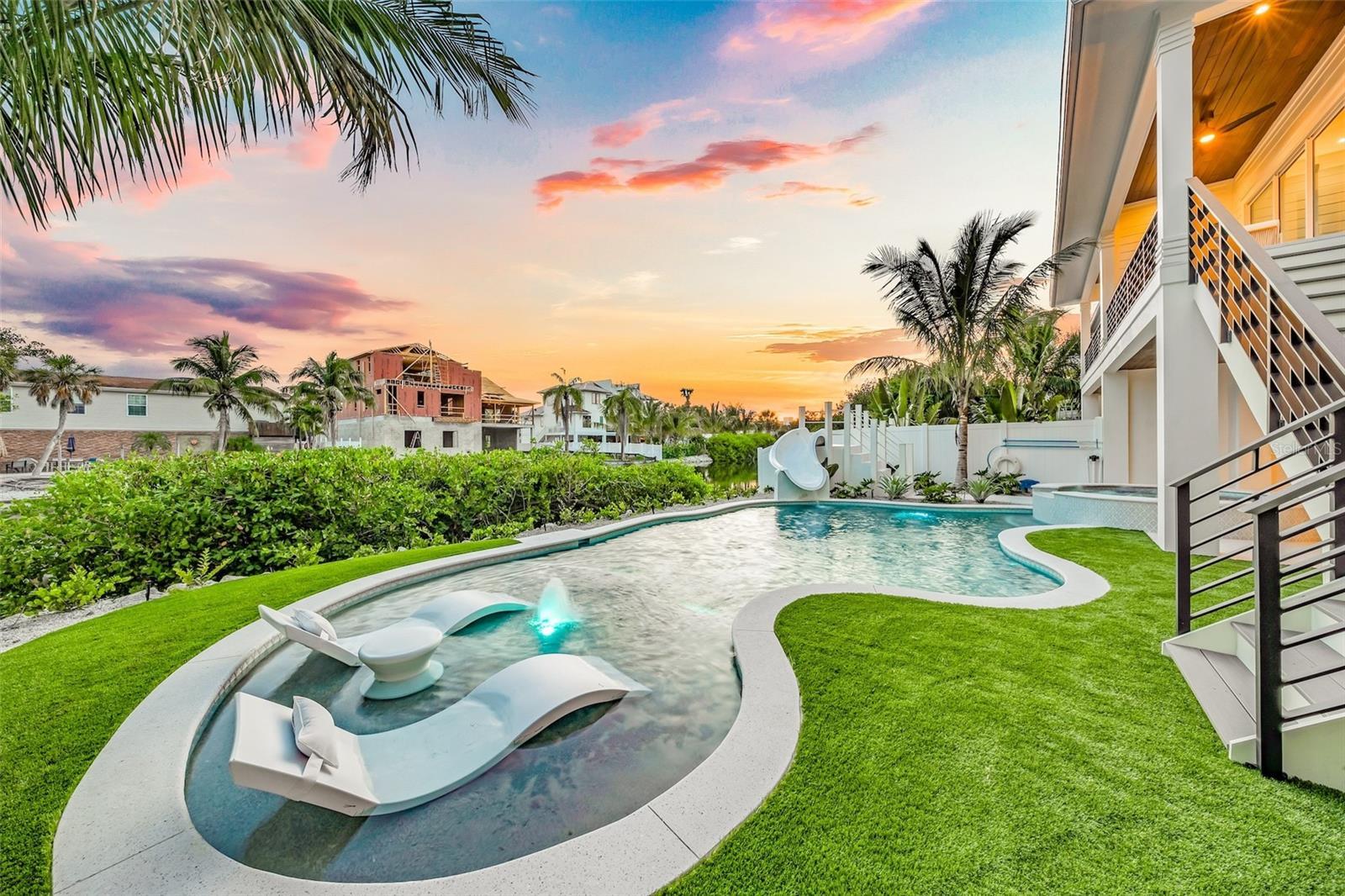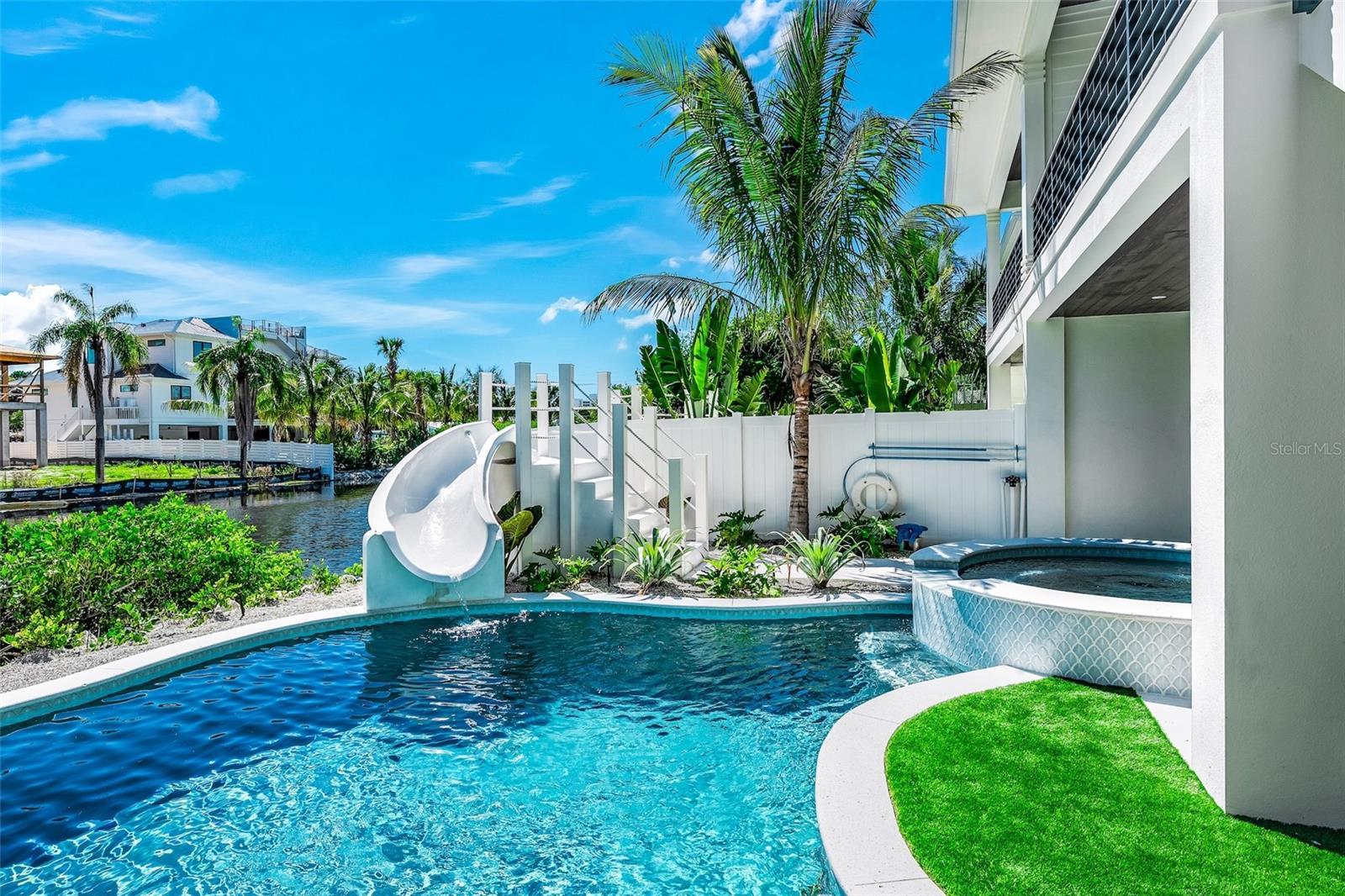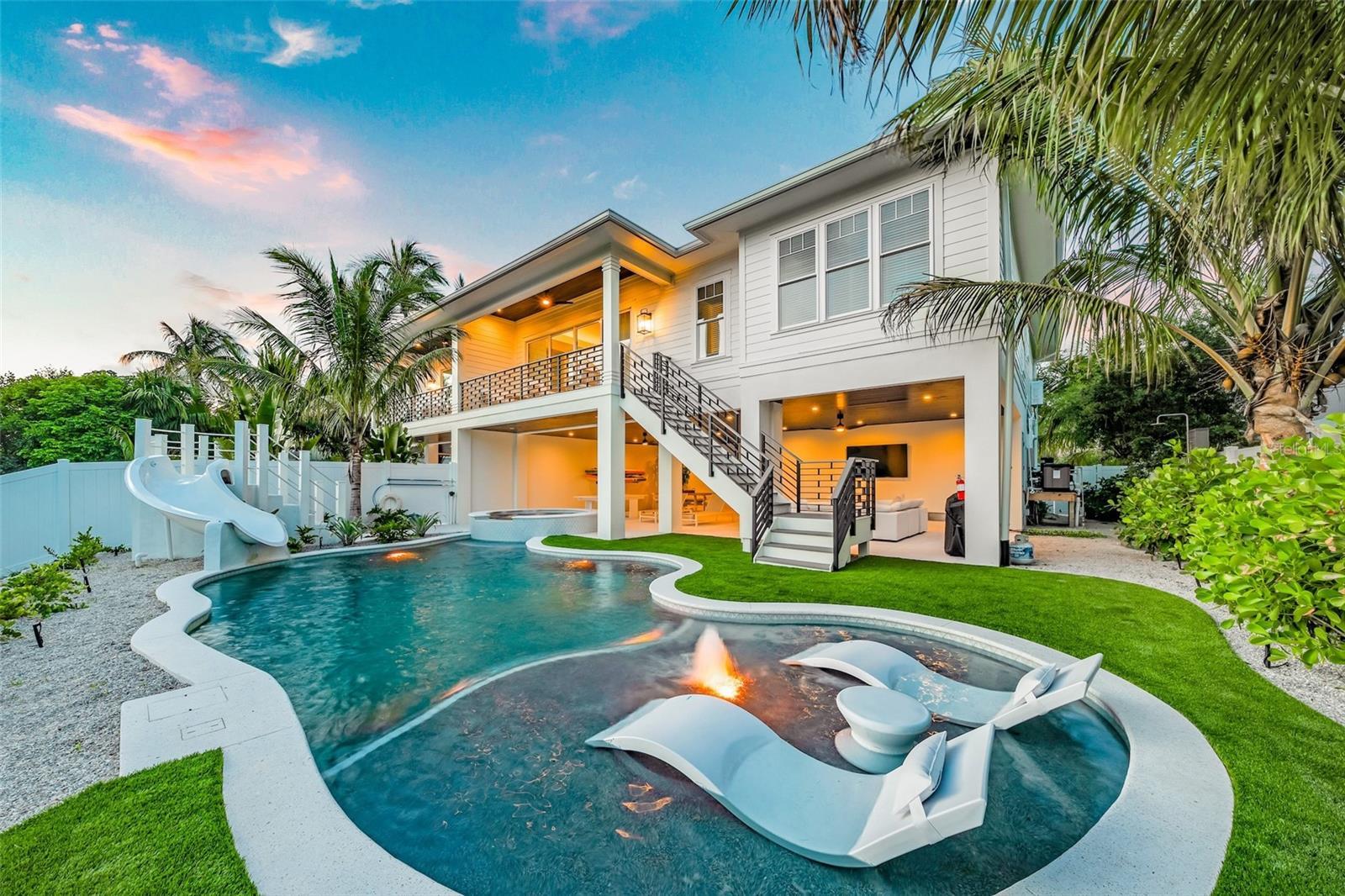 LOCATION, LOCATION, LOCATION ON BEAUTIFUL SIESTA KEY!!! Experience the ultimate in coastal luxury with this stunning new construction home by the renowned Eason Builders Group. Located on the tranquil and exclusive Peacock Road, this four-bedroom, four-and-a-half-bathroom waterfront residence offers a harmonious blend of modern elegance, tropical beauty, and thoughtful design. Be welcomed by sophistication as you enter the great room, where an open floor plan features inviting seating area and expansive sliding doors that bring the tropical breeze inside. The chef-inspired kitchen boasts top-of-the-line appliances, a generous center island, and a bar area with a wine fridge, creating the perfect space for entertaining or preparing gourmet meals. This home’s well-thought-out design includes four spacious bedrooms, each with its own en-suite bathroom adorned with designer finishes, ensuring comfort and privacy for every guest. This property is being offered turnkey furnished, allowing you to move in and start enjoying this exquisite home immediately or continue to use as a successful rental property. Outside, your personal paradise awaits. Surrounded by lush tropical landscaping and breathtaking water views, the outdoor living area features a sparkling pool with a water slide, an in-ground spa, and expansive patios perfect for hosting or relaxing. While part of an architecturally stunning paired estate, this home offers the independence and feel of a standalone residence- perfect for refined coastal living. Located in the heart of Siesta Key, this home offers the ultimate convenience. Just minutes from the renowned Siesta Key Beach—or less than a 10-minute walk—you can enjoy the powdery white sand and turquoise waters with ease. The home is also close to local restaurants, marinas, boutique shopping, and Sarasota’s vibrant arts and culture scene. Whether you’re seeking a serene personal retreat or a lucrative investment property with weekly rentals allowed, this home delivers it all. Don’t miss this rare opportunity to own a piece of paradise where luxury, breathtaking views, and the Siesta Key lifestyle come together to create your perfect coastal haven.