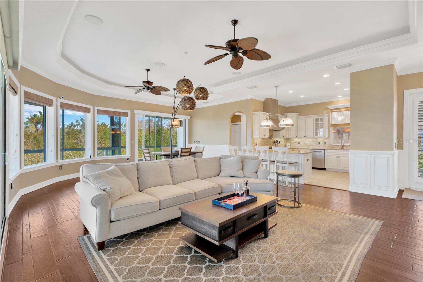 - Accessibility Features, Built-in Features, Ceiling Fans(s), Central Vaccum, Chair Rail, Crown Molding, Dry Bar, Eat-in Kitchen, Elevator, High Ceilings, In Wall Pest System, Kitchen/Family Room Combo, L Dining, Living Room/Dining Room Combo, Open Floorplan, Other, Primary Bedroom Main Floor, Solid Surface Counters, Split Bedroom, Stone Counters, Thermostat, Tray Ceiling(s), Walk-In Closet(s), Window Treatments