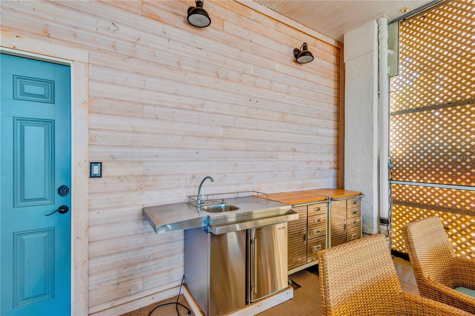 - Awning(s), Balcony, Garden, Hurricane Shutters, Lighting, Outdoor Kitchen, Outdoor Shower, Private Mailbox, Rain Gutters, Shade Shutter(s), Sliding Doors, Sprinkler Metered, Storage