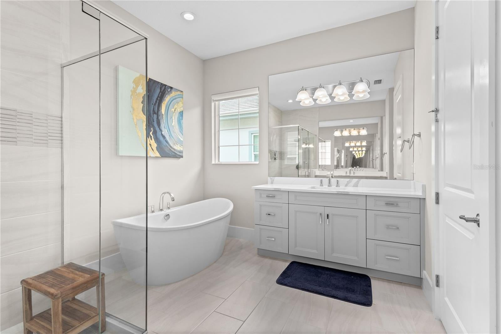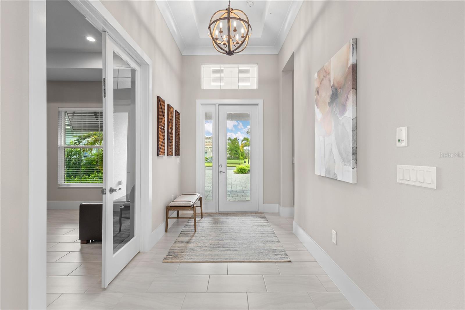 Nestled behind the gates of The Lake Club, this barely-lived-in 2023 built lakefront home is the pinnacle of luxury Florida living. Featuring three bedrooms, three-and-a-half bathrooms and a dedicated home office, this contemporary home was designed with function and beauty in mind. Over 2,600 square feet feel even more expansive with soaring ceilings, crown molding and architectural tray ceilings accentuating nearly every room. The open living space is anchored by the Chef’s kitchen including; Custom Shaker-style cabinetry, oversized quartz island with bar seating for three and built-in, top-of-the-line stainless steel appliances. Seamless indoor-outdoor living is achieved with pocketing, impact-rated sliding doors connecting to an additional 600 square feet of covered lanai and the extended pool area beyond. Encapsulating true Florida living, a custom pool features a sunken, 360-degree edge spa, sun shelf and waterfall feature. After a day in the sun, retreat to an owner’s suite designed for relaxation with freestanding tub, separate walk-in shower, dual, split vanities and two customized walk-in closets. A spacious three-car garage with additional custom storage and epoxy floors provides all the room you need for your toys. The Lake Club redefines luxury living in Lakewood Ranch, presenting residents a 22,000 square foot Grande Clubhouse with a full-service restaurant and bar, two resort-style pools, fully equipped fitness center, spa services and concierge amenities. Residents also have access to several tennis and pickle ball courts, basketball court, two dog parks and social events curated by a dedicated Lifestyle Director. Within America’s top-rated multigenerational community, you’re just minutes from upscale dining and shopping at Waterside Place and University Town Center, world-renowned golf and convenient to Downtown Sarasota, Gulf Beaches and cultural venues like the Van Wezel Performing Arts Hall.