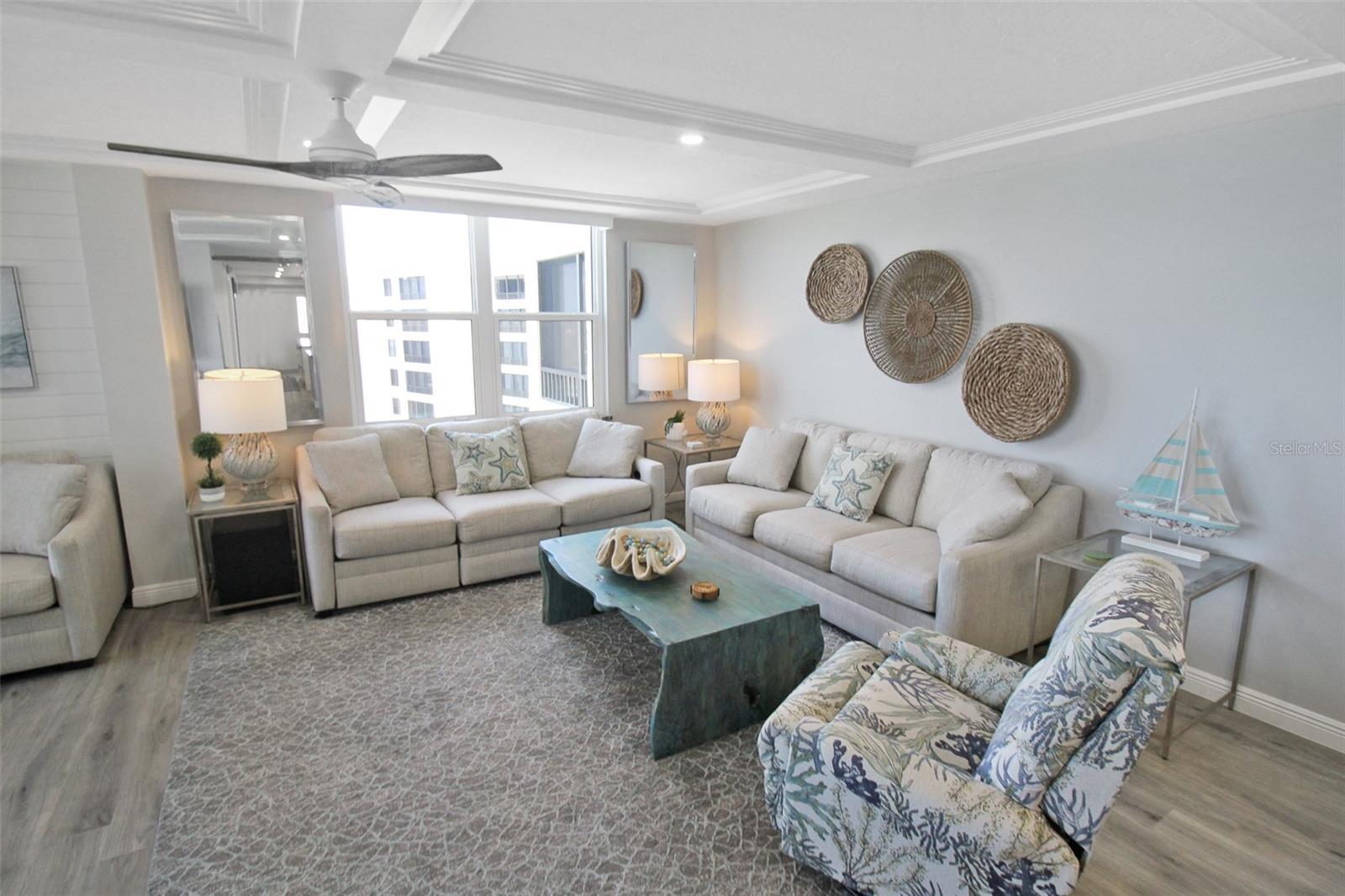 Welcome to Gulf Horizon, your luxurious coastal escape at the Gulf & Bay Club in beautiful Siesta Key. Professionally managed by Gulf Coast Vacations, this stunning 2-bedroom, 2-bathroom sixth-floor gulf-view condo offers the ultimate blend of elegance, comfort, and breathtaking scenery in one of the island’s most exclusive beachfront communities. From the moment you step into the elegant lobby, you’ll be greeted with a sense of serenity and sophistication. The elevators whisk you up to your private slice of paradise, where this coastal chic condo awaits—designed to be your perfect home away from home. Inside, you’ll find a sleek and stylish kitchen complete with stainless steel appliances and beautiful hardware that complements the refined decor. The spacious living room is the ideal place to unwind after a sun-soaked day, with plush seating and serene ambiance. Adjacent, the dining area offers picturesque views of the Gulf as well as the sparkling lakes and fountains within the community—creating a truly tranquil setting for your meals. The primary bedroom is a peaceful retreat featuring a king-size bed and an ensuite, spa-inspired bathroom with a large vanity and a breathtaking walk-in shower. The second bedroom offers two queen-size beds and ample closet space, perfect for guests or family. The second bathroom also features a large vanity and a gorgeous walk-in shower, continuing the home’s spa-like aesthetic. For those working remotely or simply wanting a quiet space, the den has been thoughtfully converted into an office and storage area, complete with a large desk—ideal for setting up your remote office in paradise. As a guest of Gulf & Bay Club, you’ll enjoy unmatched amenities including: Private beach access to world-famous Siesta Key Beach Three heated swimming pools Tennis, pickleball, and racquetball courts State-of-the-art fitness center Lakes, fountains, and tropical walking paths Clubhouse and social activities Saunas and hot tubs 24-hour gated security Whether you're soaking up the sun on the private beach, enjoying the Gulf breeze from your balcony, or exploring the vibrant local shops and restaurants of Siesta Key Village just minutes away, this condo offers everything you need for an unforgettable beachside getaway. House Rule: No smoking. No burning candles inside of lodging. No parties. No Pets.