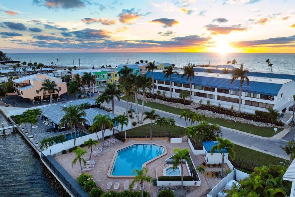PRICE REDUCTION!!! This is your sign to get out of the cold and come to Florida NOW! New, new, new.... Just Listed! Beachfront Condo with STUNNING GULF VIEWS! Experience the ultimate in coastal living with this beautifully updated kitchen with quartz countertops, NEW half bath, NEW roof, NEW elevator, and a refreshed pool (all new pool heaters, pumps, etc.), spa, deck and bathhouse. Every detail has been updated for comfort, style, and peace of mind. From the moment you enter this freshly painted condo you will be captivated by the uninterrupted, direct Gulf views and the sparkling waters of the Gulf of Mexico which are front and center. Enjoy breathtaking sunsets from your open-concept great room and kitchen, and start your mornings with peaceful sunrises from the bayfront heated pool, hot tub, or fishing/boat dock. This elevated BEACH-TO-BAY community is a hidden gem, known for its quiet ambiance and friendly, long-term residents. The deeded beachfront property, owned by the association, ensures your panoramic views will never be obstructed. Even better, this 3rd story unit remained high and dry through the most recent hurricanes, offering extra peace of mind. Inside, the condo features vaulted ceilings, new luxury vinyl plank flooring, and an enclosed lanai that opens to the soothing sound of waves. The two spacious bedrooms provide flexibility as one currently serves as an office and workout space. Safety, maintenance and financial stability are a hallmark of this community. Summer Sands reserves are fully funded and the building easily passed the Florida Milestone Inspection required by the State to verify structural integrity. Located just a short walk from Bridge Street's shopping, dining, and nightlife, and steps from the free Island Trolley, this home includes two under-building parking spaces with secure elevator and stairwell access. The pool complex also has a patio with a grill and picnic table as well as new kayak/paddleboard storage. The all-new landscaping of the entire property has been professionally designed, including the lush and peaceful atrium. This is your chance to own a condo with the very best of Anna Maria island living.