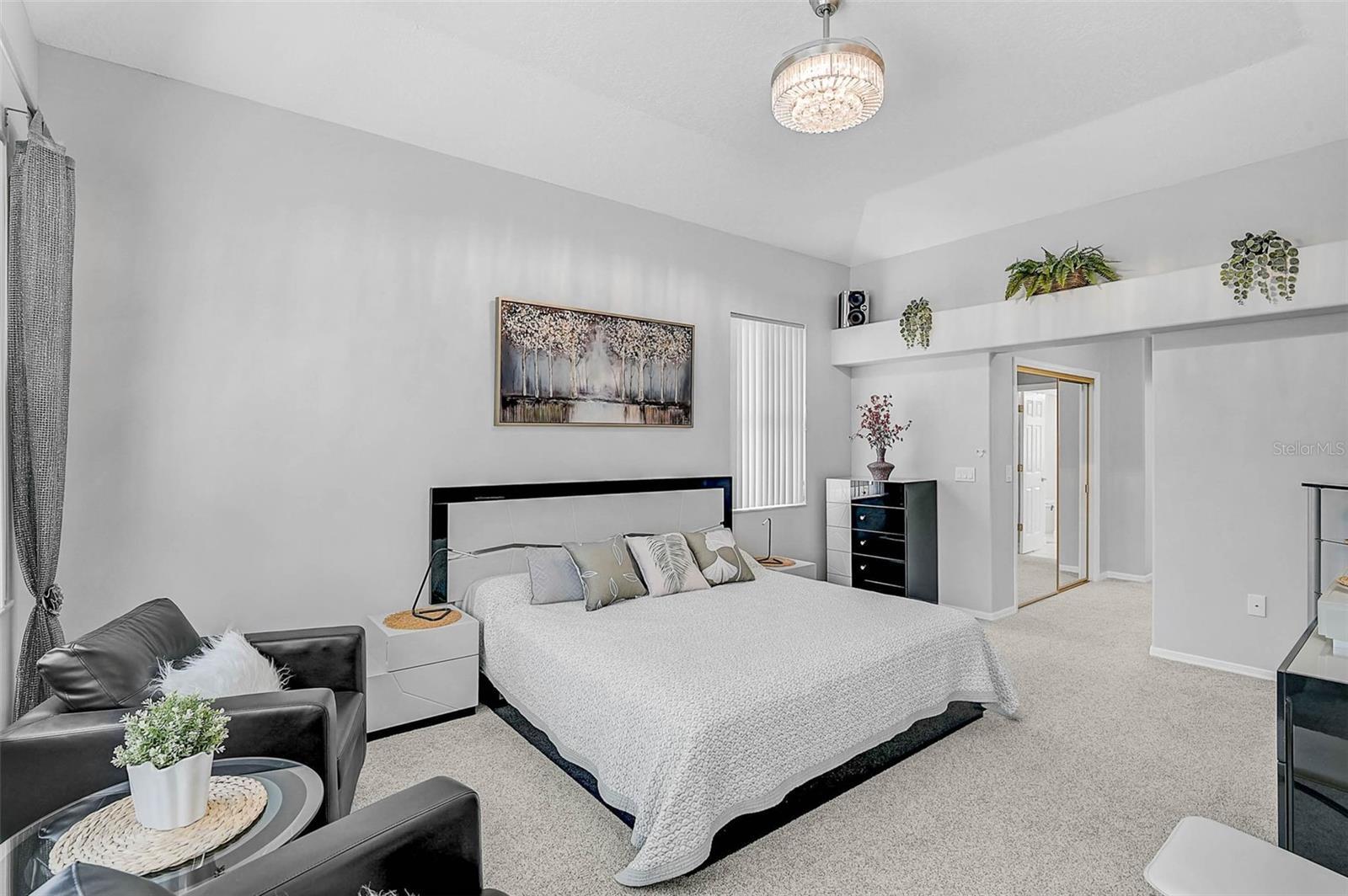 - Built-in Features, Ceiling Fans(s), High Ceilings, Open Floorplan, Primary Bedroom Main Floor, Split Bedroom, Stone Counters, Thermostat, Walk-In Closet(s), Window Treatments