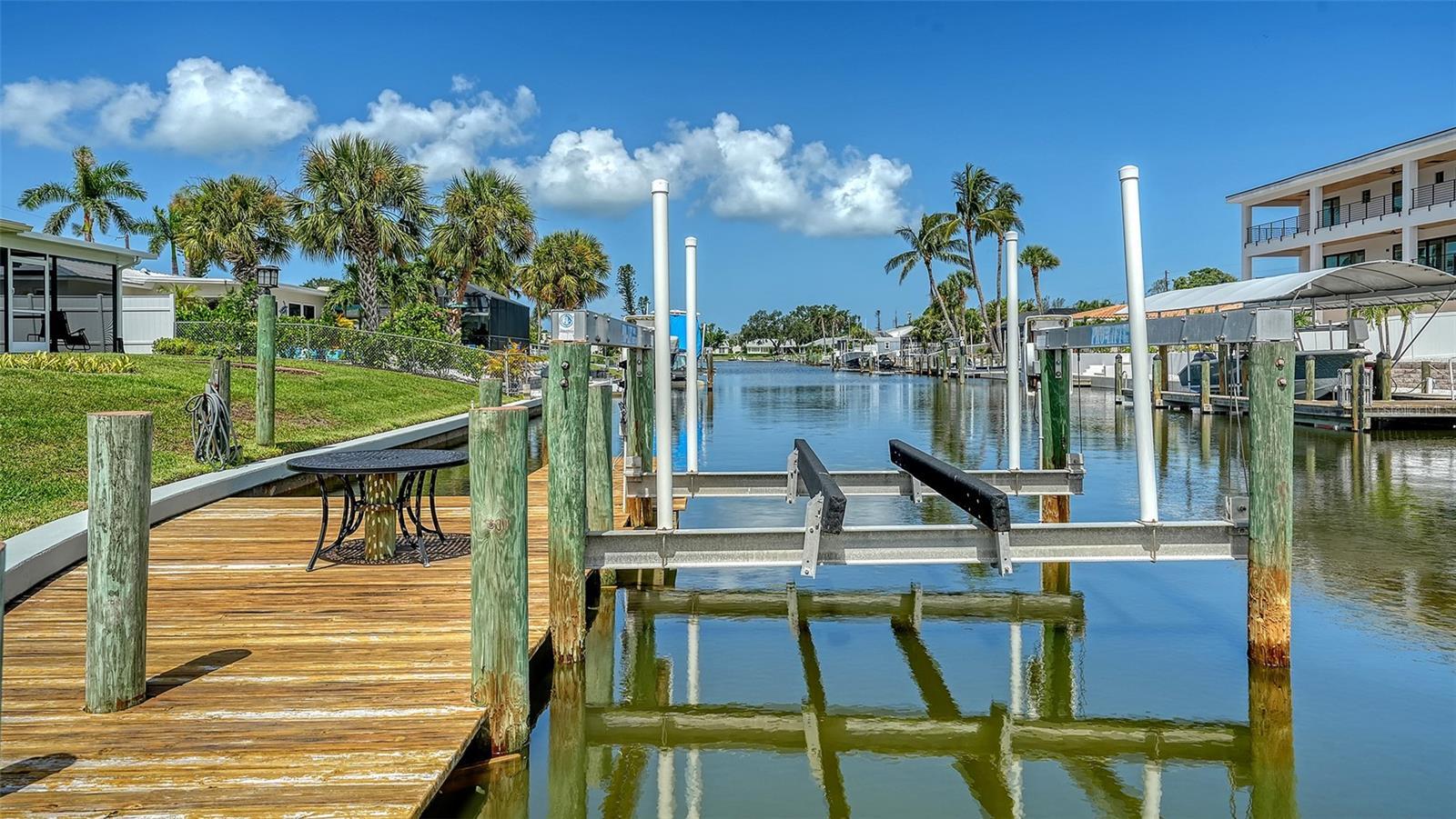 This beautifully maintained 2-bedroom, 2-bath canal-front home in Coral Shores offers the perfect blend of coastal charm, modern convenience, and investment potential—just 3 miles from the white-sand beaches of Anna Maria Island. Boaters will love the private dock with 10,000lb lift, equipped with electric and water, offering direct, bridge-free access to the Intracoastal Waterway and the Gulf. The home features beautiful porcelain tile floors, impact windows and doors, a durable metal roof, and an open layout that supports easy, breezy Florida living. Step out to the screened-in porch and enjoy peaceful mornings by the water, spend your afternoons fishing or cruising the coast, and fire up the grill in the evening to entertain family and friends outdoors. The tranquil backyard setting and canal views invite you to unwind and embrace the relaxed Gulf Coast lifestyle. Whether you're looking for a full-time residence, vacation home, or income-producing property, this one delivers. Short-term rentals are allowed, adding flexibility and value. With a prime location near Anna Maria Island, IMG Academy, shopping, dining, and top boating spots, this home checks all the boxes. Schedule your private showing today.