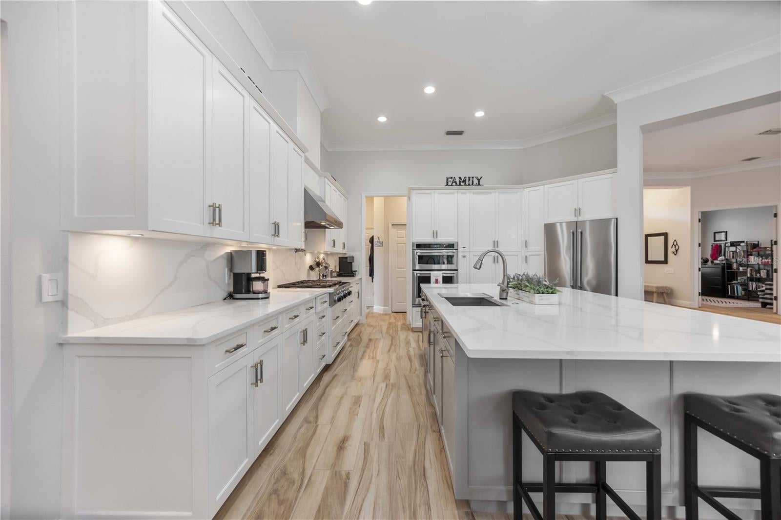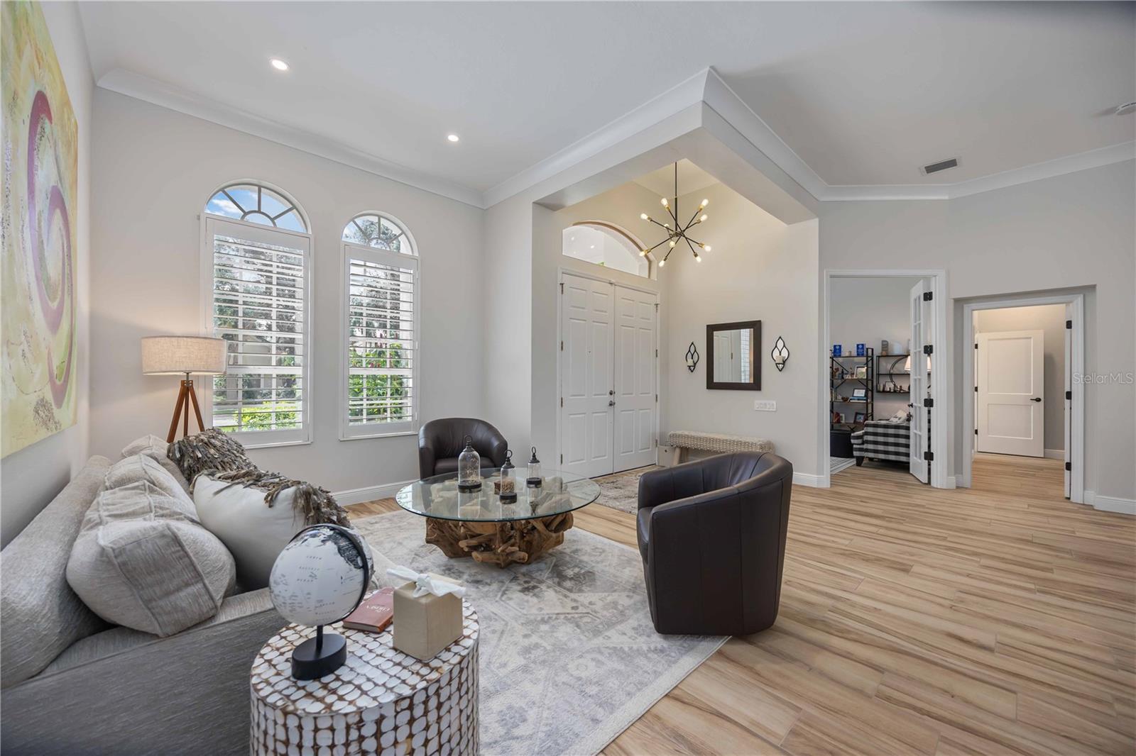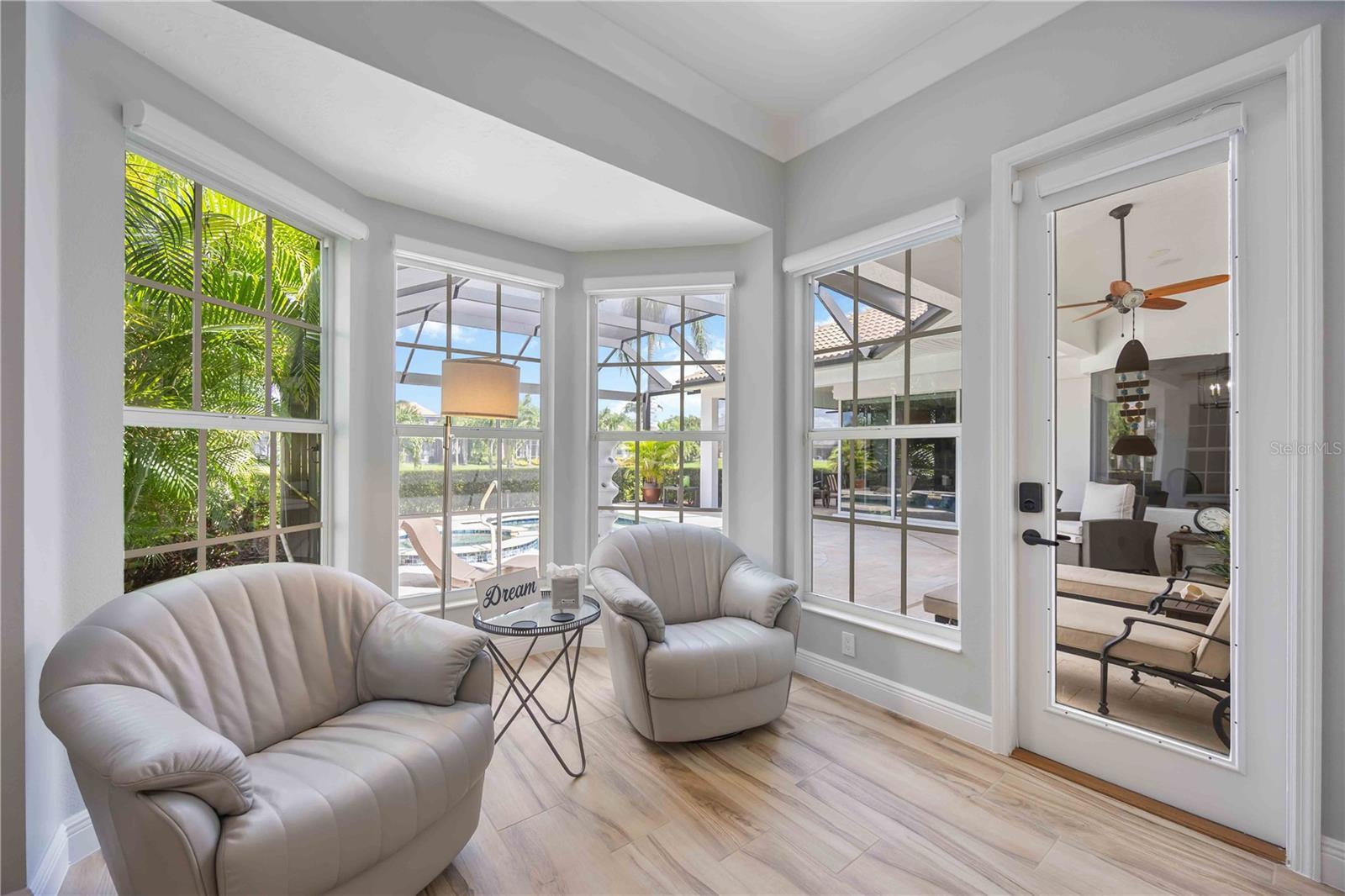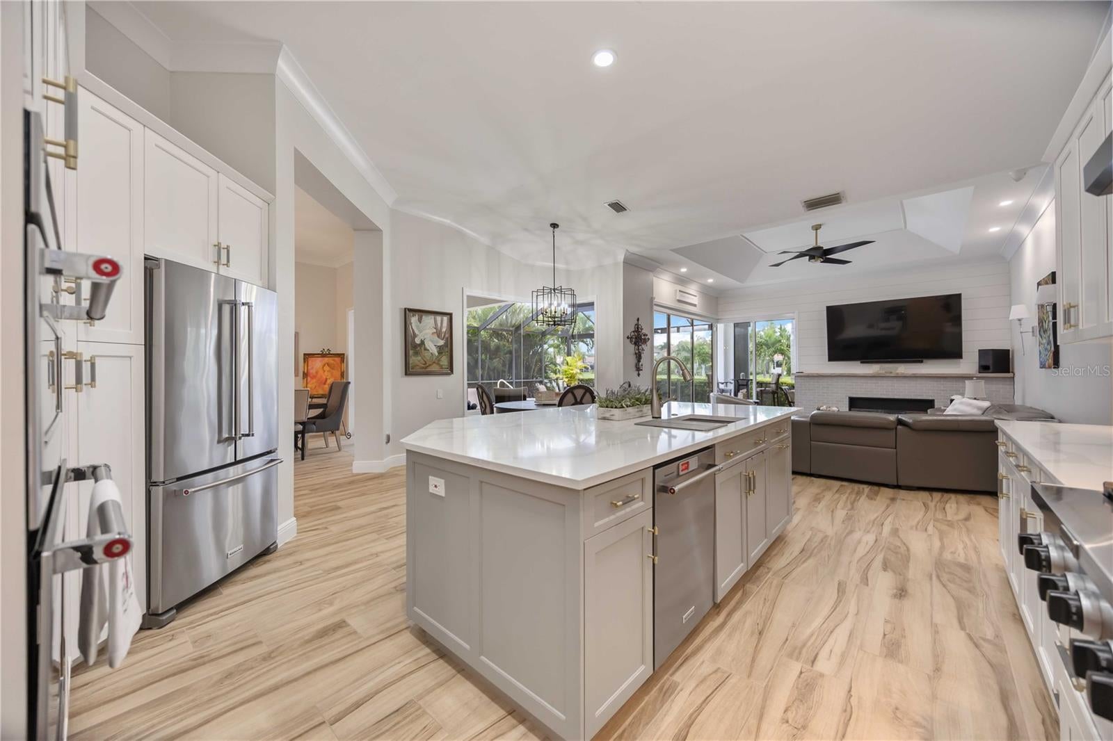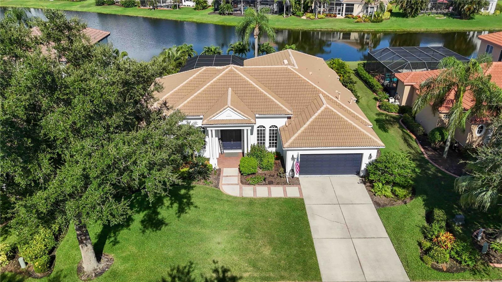 MAJOR PRICE IMPROVEMENT!!! LOWERED $25,000...A MUST SEE! Luxury Lakefront Living Awaits with your dream home in The Sanctuary at River Club, a rare lakefront oasis located in one of Lakewood Ranch’s most desirable communities.Experience the pinnacle of luxury lakefront living at 7555 Tori Way in The Sanctuary at River Club—one of Lakewood Ranch’s most sought-after communities. This stunning custom-built home is your rare opportunity to own a private oasis on a premium 12,981 sq ft lakefront lot. With 3 spacious bedrooms, 3 full bathrooms, and a versatile flex room (perfect as a den or 4th bedroom), this 2,729 sq ft residence offers an elegant blend of style, comfort, and modern convenience. From the moment you arrive, the freshly painted exterior (2023) and striking curb appeal make a powerful first impression. Inside, you'll be captivated by rich porcelain faux wood plank tile floors, elegant crown molding, plantation shutters (2021), and designer lighting throughout. The open-concept living area boasts a custom vaulted ceiling and cozy fireplace, all perfectly positioned to showcase panoramic lake views and your private pool. At the heart of the home, the gourmet kitchen will thrill any chef—with quartz countertops, a full quartz backsplash, a 6-burner gas cooktop with custom pot filler, stainless steel appliances, and a walk-in pantry. Retreat to the luxurious primary suite featuring a floating jetted soaking tub, oversized dual-entry walk-in shower, dual vanities with quartz counters, remote-control blackout blinds, and two walk-in closets with custom shelving. The thoughtful split floor plan ensures privacy for family and guests alike, with a second en-suite bedroom and a third bedroom conveniently located near a full hallway bath. Step outside to your own personal resort: a heated pool (new heater 2025), relaxing spa, and two covered seating areas where you can entertain or unwind while taking in breathtaking lake views and Florida wildlife. This meticulously maintained home also features top-tier upgrades: a Trane 15 SEER AC (2022), Honeywell gas water heater (2020), washer and dryer (2021), and an oversized two-car garage with built-in cabinetry and epoxy flooring (2021). Best of all, enjoy low HOA fees and NO CDD fees, a rare find in such a prestigious neighborhood. Located minutes from top-rated schools, upscale shopping, dining, the River Club Golf Course, and with easy access to I-75, this home offers the perfect balance of luxury, location, and lifestyle. Don’t miss your chance to own one of Lakewood Ranch’s finest lakefront homes—schedule your private tour today and make 7555 Tori Way your new address in paradise!