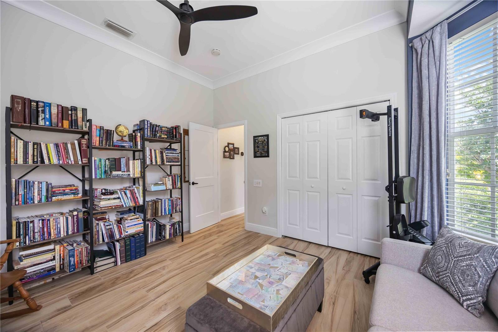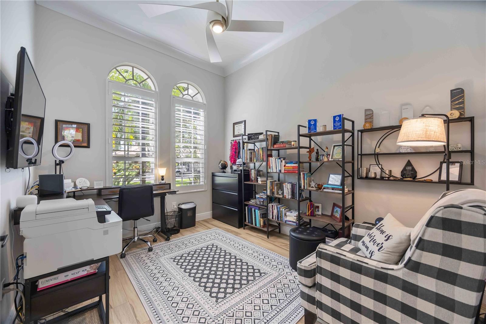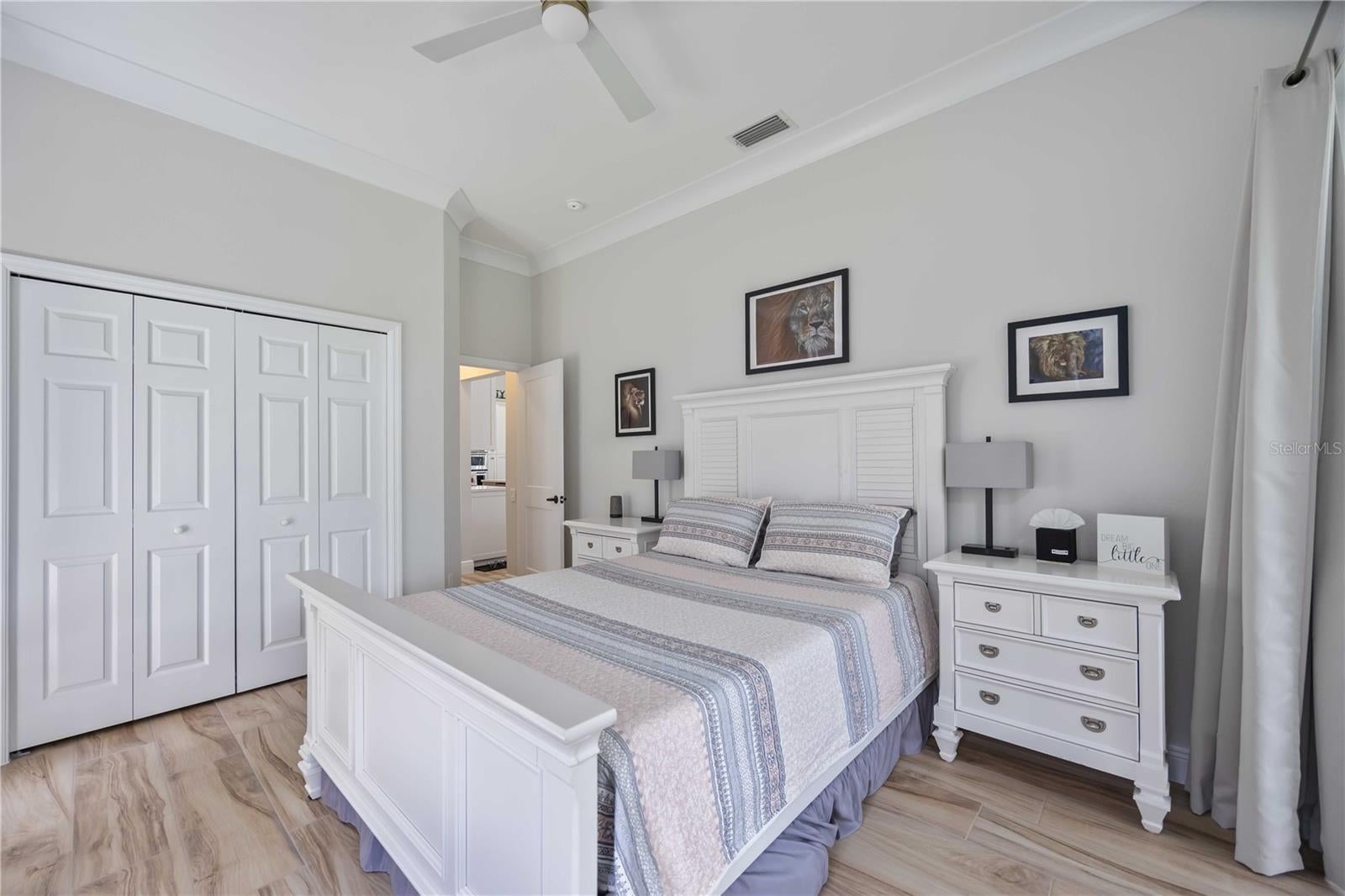 - Ceiling Fans(s), Crown Molding, Eat-in Kitchen, High Ceilings, Open Floorplan, Primary Bedroom Main Floor, Solid Wood Cabinets, Split Bedroom, Stone Counters, Thermostat, Tray Ceiling(s), Walk-In Closet(s), Window Treatments