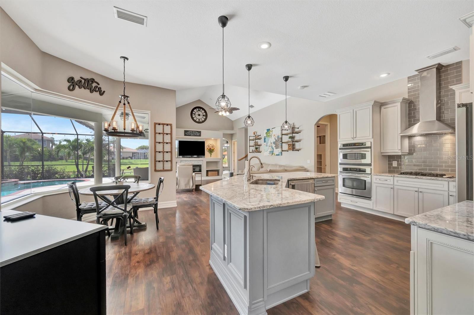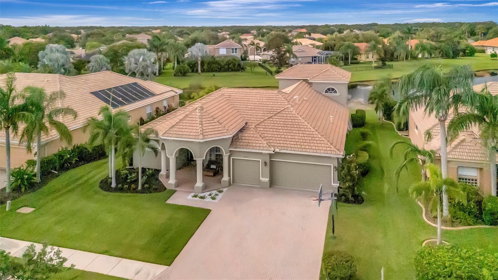 Welcome to 12412 Daisy Place, a beautifully upgraded 3-bedroom, 3.5-bathroom home located on an oversized .27 acre preserve lot in the prestigious gated community of Greyhawk Landing. Boasting 3,146 sq ft of living space and a thoughtfully designed layout, this home offers multiple flex areas that includes a den, office, and upstairs bonus room, stunning updates, and a true indoor-outdoor Florida lifestyle. The curb appeal impresses immediately with an oversized paver driveway, 3 car garage, covered front porch, and lush landscaping. Step inside to soaring ceilings, updated flooring throughout the main floor, and a light-filled interior. Each main-level room enjoys picturesque views of the pool and tranquil preserve backdrop. The heart of the home is the chef’s kitchen, complete with granite countertops, stainless steel appliances, gas range, wood cabinetry, and a large center island overlooking the spacious great room and casual dining nook. Ideal for both entertaining and everyday living. The first-floor primary suite is a luxurious retreat with dual closets, direct lanai access, and a spa-like ensuite featuring a soaking tub, walk-in shower, and dual vanities. Two additional first-floor bedrooms share a private wing separated by a full shower-tub combo bathroom. A third full bathroom is conveniently located just off the lanai—perfect for guests and pool days—and adjacent to the dedicated home office. Upstairs, a large bonus loft with half bath, offers endless possibilities: media room, playroom, home gym, or guest suite. Step outside to your private oasis—an extended screened-in lanai with heated pool and spa, all set against a peaceful preserve view with no rear neighbors. The spacious covered lanai provides the perfect setting for outdoor dining and lounging. Additional highlights include the 3-car garage, formal dining room and separate den, private office, dedicated laundry room with built-ins and utility sink, natural gas connection, and Low HOA fees ($75 Annually). Greyhawk Landing offers 24-hour gated security and resort-style amenities: two community pools, clubhouse, fitness center, tennis courts, basketball, baseball & soccer fields, miles of trails, and top-rated schools nearby. Just minutes from Lakewood Ranch, I-75, shopping, dining, and Gulf Coast beaches.