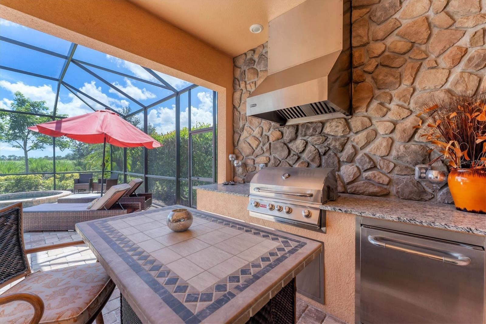 TURNKEY FURNISHED in Country Club East – This 4-bedroom, 3-bath pool home offers 2,700+ sq. ft. of thoughtfully designed living in one of Lakewood Ranch’s premier gated communities. The split-bedroom floor plan features soaring tray ceilings, crown molding, and upgraded tile flooring. The kitchen is a chef’s dream with a gas range, stainless steel appliances, high-end granite, a large walk-in pantry with custom shelving, and an open layout to the living and dining areas. The primary suite includes lanai access, two closets, dual vanities, a walk-in shower, and a soaking tub. The 4th bedroom doubles perfectly as an office. Outdoors, enjoy a screened-in lanai with heated pool and spa, summer kitchen, and enhanced landscaping for privacy—plus views of the Lakewood Ranch Country Club Golf Academy. Extras include a water softener, tankless water heater, remote-control hurricane screen, and full-service maintenance agreements. HOA covers landscaping and irrigation for truly low-maintenance living. Offered fully furnished with tasteful, high-quality décor—just bring your suitcase and your sense of adventure. Residents enjoy “The Retreat” Amenity Center with fitness, clubhouse, and resort pool; optional golf, tennis, and pickleball memberships are available. Conveniently located near A-rated schools, Waterside Place, UTC, beaches, and more.