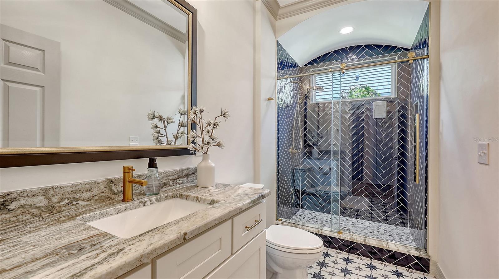 Perfectly poised on one of the most captivating settings in the prestigious Country Club of Lakewood Ranch, this beautifully updated home offers sweeping views of the expansive pond, golf course, and lush nature preserve. From the moment you arrive, sophistication and serenity unfold across 2,246 square feet of exquisitely reimagined living space. Every inch of this home has been thoughtfully updated, beginning with a brand-new tile roof, new HVAC system, and garage mini-split AC, all completed in 2024. Hurricane impact windows, sliders, garage door and iron double-entry doors provide both elegance and peace of mind, while rich finishes and refined upgrades flow throughout the open-concept interior. The heart of the home is a spectacular great room, where soaring volume ceilings and a custom floor-to-ceiling feature wall with gas fireplace. Just beyond, the inviting Florida room is wrapped in large picture windows that flood the space with natural light and frame expansive views of the pond and preserve—a breathtaking backdrop from nearly every angle. This light-filled space flows seamlessly to the outdoors, where impact-rated sliders open to your resort-style escape: a heated saltwater pool with water bowls, travertine deck, granite-clad outdoor kitchen with fridge, and motorized awning for effortless shade. The lanai is a private oasis with lush preserve and sweeping views of the pond, offering an abundance of tranquility and privacy. The fully redesigned gourmet kitchen showcases exotic granite countertops, new soft-close cabinetry, LG Smart appliances (2022), designer tile backsplash, and a breakfast nook immersed in tranquil water views. The owner’s retreat is a private sanctuary, offering dual custom walk-in closets and a spa-inspired ensuite bath with dual vanities, frameless glass shower, freestanding soaking tub, and designer tile finishes. A separate guest wing ensures privacy and comfort, with two beautifully appointed bedrooms, custom closets, and a fully updated bathroom with floor-to-ceiling tile. Additional enhancements include a whole-house water filtration system, plantation shutters throughout, laundry room with custom cabinetry, LED lighting throughout, lush landscaping with enhanced exterior lighting, and a comprehensive security system with video surveillance and motion/CO2/water detection. Nestled within the maintenance-free enclave of Muirfield, residents enjoy their own community pool and the option to join Lakewood Ranch Golf & Country Club, home to four championship golf courses, a world-class fitness center, tennis, and an elegant clubhouse. All this in Lakewood Ranch, the #1 best-selling master-planned community in the nation, known for its top-rated schools, vibrant dining and shopping scenes, and proximity to the award-winning beaches of Florida’s Gulf Coast.