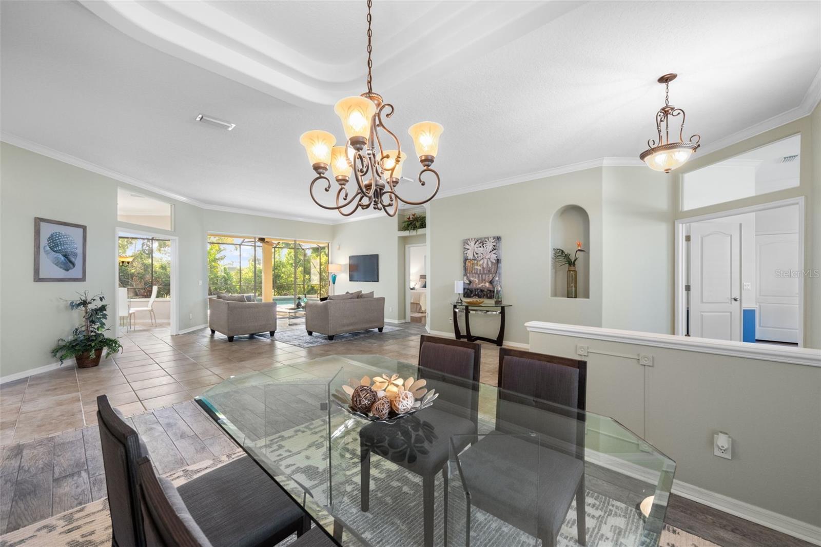 - Ceiling Fans(s), Central Vaccum, Crown Molding, Kitchen/Family Room Combo, Open Floorplan, Solid Surface Counters, Split Bedroom, Tray Ceiling(s), Walk-In Closet(s), Wet Bar