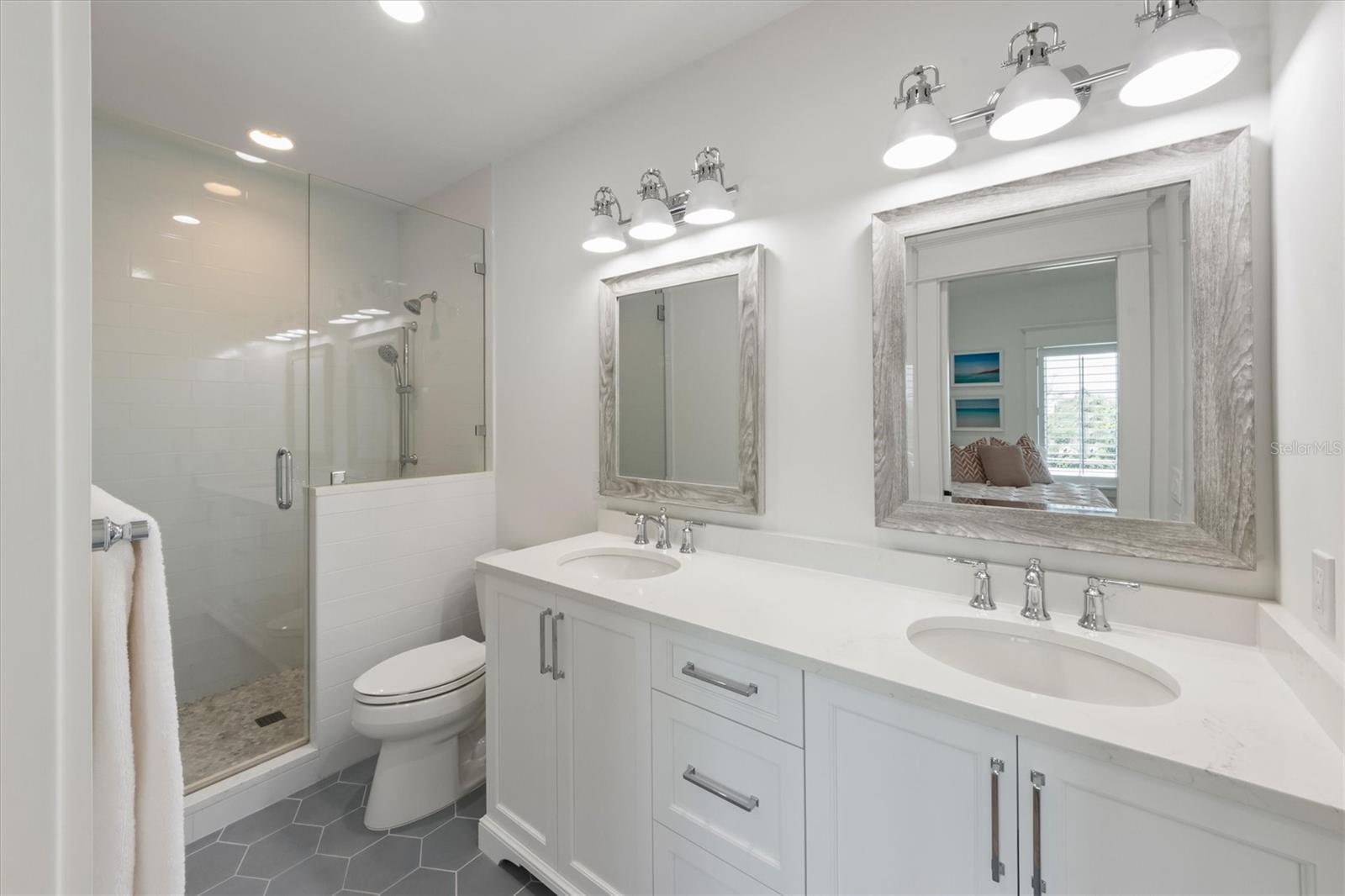 Discover unparalleled elegance in this stunning 3,400 sq. ft. very private residence 5 houses away from the Gulf on the north end of Anna Maria Island! You get to enjoy beach views from many rooms in the house without the beachfront price! Very well taken care of, never rented, and hurricane-rated elevated home that stands at one of the island’s highest elevation points. Built with a robust 25’ deep drilled piling foundation system, this architectural masterpiece combines cutting-edge smart home technology with timeless luxury. Five generously sized bedrooms, each with en-suite full bathrooms, plus two half baths (one conveniently located off the pool area). The master suite boasts a marble-clad bathroom with a luxurious shower, floors, and countertops, while other bathrooms feature sleek quartz countertops. The chef’s kitchen is equipped with Sub-Zero and Wolf appliances, including a 36” refrigerator, 30” freezer, wine refrigerator, under-counter refrigerator, and pantry refrigerator/freezer drawers. The 48” dual-fuel gas/electric stove with four burners and a 24” griddle, paired with a convection/steam oven, ensures culinary excellence. Custom Campbell Cabinetry, dolomite marble countertops with a leathered finish, and an instant hot/cold filtered water system elevate the experience. Control your environment with ease using the Blue Sound eight-zone interior/exterior audio system, Leviton smart lighting, Honeywell alarm system, IC Realtime 9-camera system, and remote keypad door locks and garage door openers with battery backup. Motorized Hunter Douglas roller shades grace the living, dining, and kitchen areas, while a Leon Speaker Framed Art Concealed Television and Sound System adds a touch of modern artistry. Engineered French Oak hardwood flooring flows throughout, complemented by tongue-and-groove wood ceilings, shiplap wall cladding, and natural stone gas fireplaces in the living room and pool area. Hardiboard cement board siding, Azek trim, and a custom six-foot stucco perimeter wall with powder-coated aluminum privacy gates ensure durability and privacy. Talk about a Resort-Style Outdoor Oasis! Dive into the 14’ x 32’ custom saltwater pool for complete relaxation. There is a gas spa to heat up quickly and an electric pool heater. The LED lighting and water features at night is such a fun touch! Completed with turf for very low maintenance clean up. Shower off in the custom outdoor enclosed shower after beaching it then head up to the spacious roof top deck that has panoramic views of the Gulf and even the skyway bridge!! Elevator, climate controlled garage, sunroom are some more bonuses! This home truly has it all! Such a rare opportunity to own a private, high-elevation sanctuary on Anna Maria Island, blending state-of-the-art technology with coastal charm. This luxurious, comfortable, storm-resistant home is ready for you to move right in!