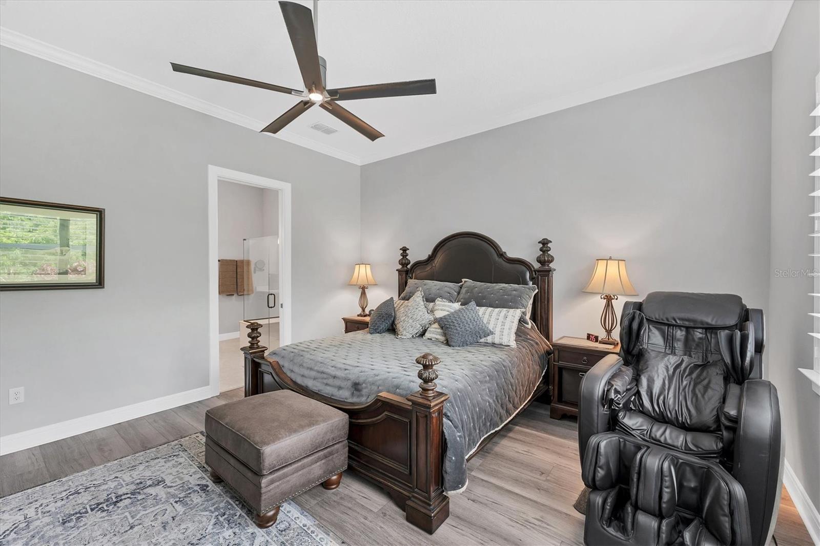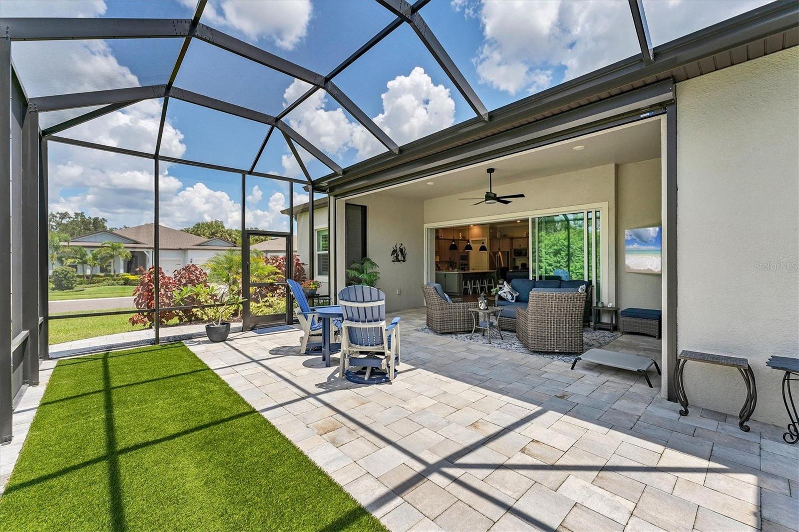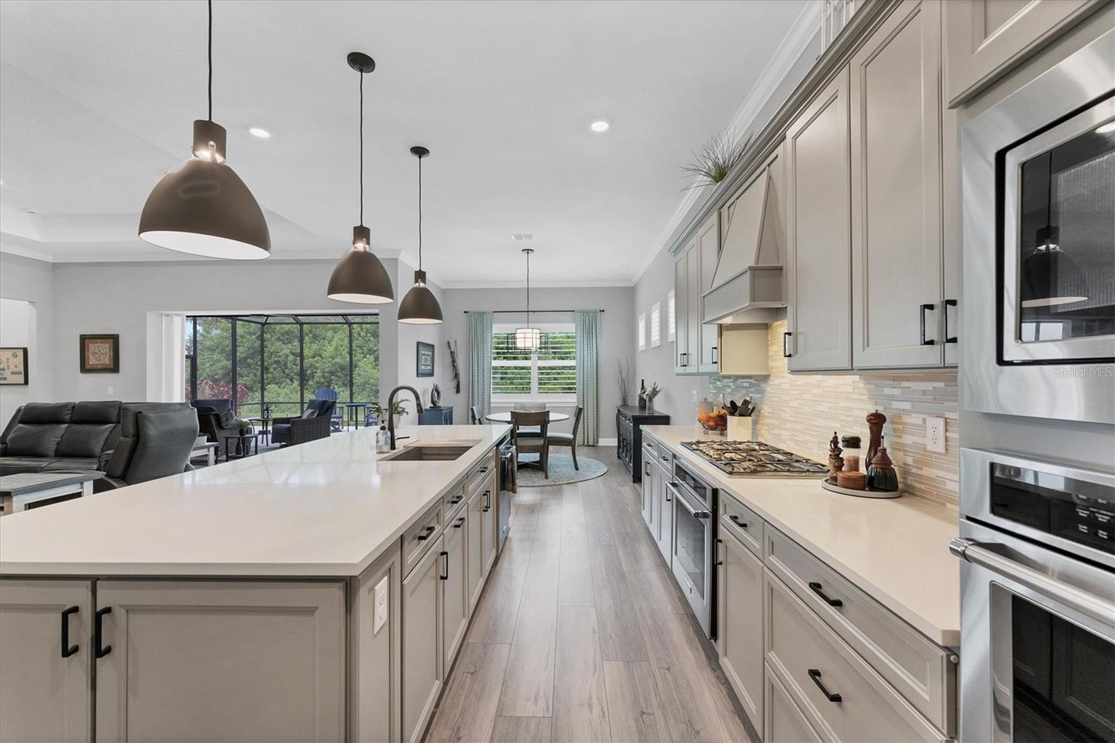 This Stellar floorplan delivers it all. The kitchen boasts TWO KitchenAid ovens, a new Thermador cooktop, and Café series wine and home refrigerators, along with a fully finished walk-in pantry. Sited on a corner lot with private conservation views, the sellers have enhanced the landscaping, widened the front walkway, screened the entry, and extended the paver lanai. The lanai is pre-wired for a pool or hot tub, pre-plumbed for an outdoor kitchen, and features roll-down hurricane screens. Inside, there is no carpeting—only gorgeous luxury vinyl plank flooring. The home includes three bedrooms, three baths, a spacious den with doors, an inside laundry, and a three-car garage. One guest room offers an ensuite for visitors. The primary bath features custom mirrors, a double sink vanity, and pre-wiring for a bidet in the water closet. Conveniently located near the Driftwood Club amenity center, this home offers easy access to a vibrant 55+ lifestyle. With golf cart-friendly streets, an on-site restaurant, and close proximity to I-75 and 275, you will enjoy the best of Florida living with cultural, music, and beach attractions nearby. Now vacant, easy to show, and available for a quick close! Please note the 2025 taxes are only the CDD and Fire/ Rescue as the owner is a fully disabled veteran. Pay no mind to days on market- this home is truly move in ready and looking for its new owners!