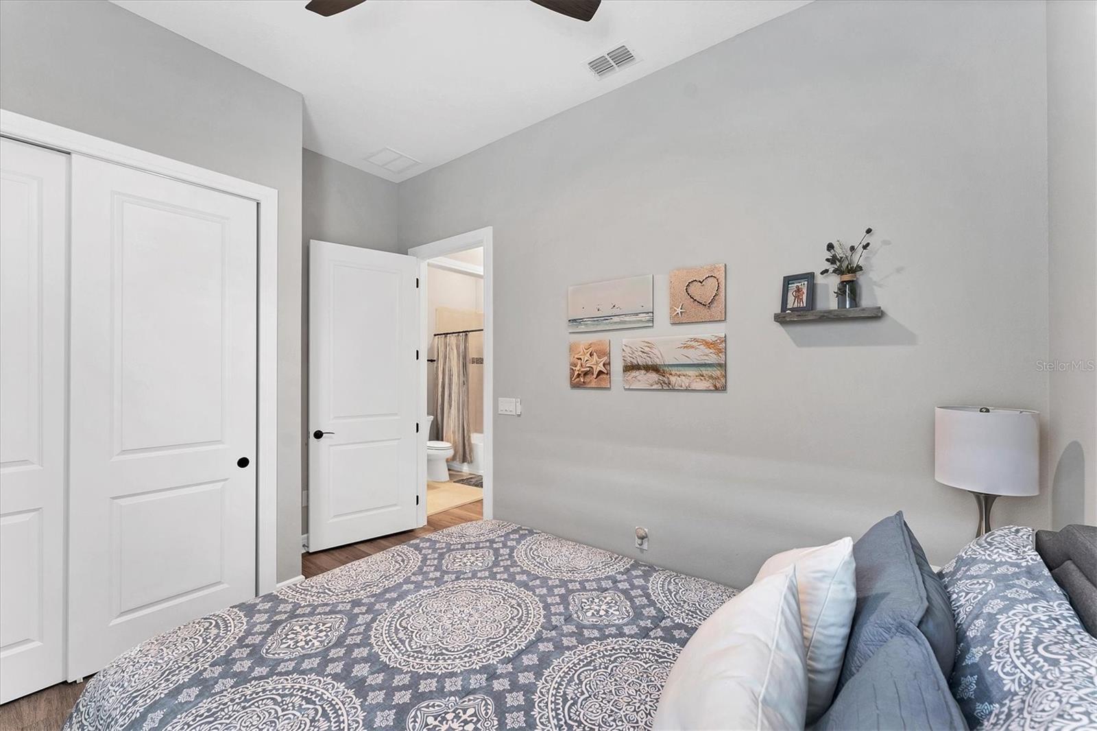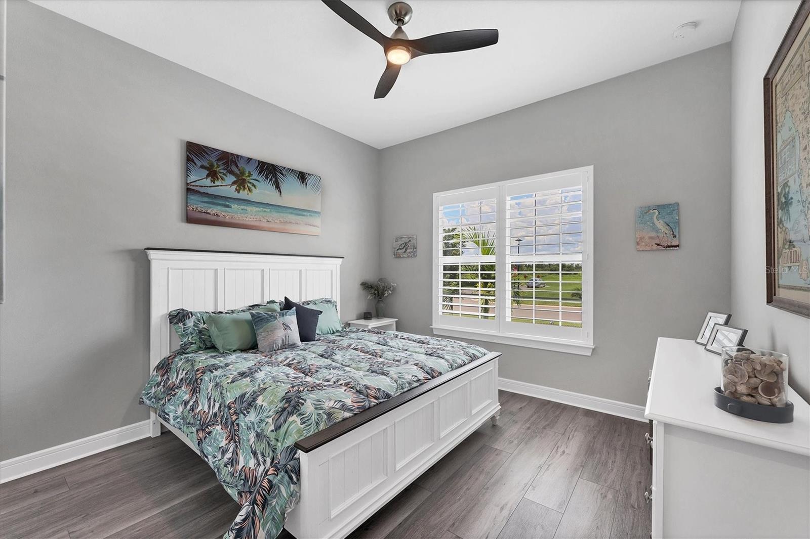 - Ceiling Fans(s), High Ceilings, In Wall Pest System, Open Floorplan, Primary Bedroom Main Floor, Solid Surface Counters, Solid Wood Cabinets, Split Bedroom, Thermostat, Walk-In Closet(s), Window Treatments